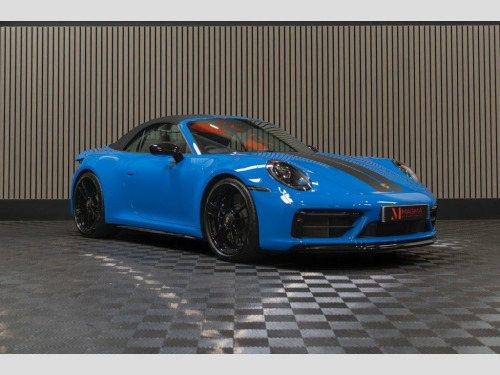 Introducing our stunning 2022 Porsche 911 992 Carrera 4 GTS Convertible finished in Shark Blue. This particular example has a full Porsche Centre service history with the most recent service completed in September 2025 and benefits from a comprehensive 12 month warranty. Specified with a fantastic specification including: Brake Calipers Painted in Black (High-Gloss), Power Steering Plus, Heated Multifunction GT Sports Steering Wheel Race-Tex with Steering Wheel Panel in Matt Carbon, Exterior Package Painted in Black (High-Gloss), Extended Interior Package in Matt Carbon, Interior Trim Package with Decorative Stitching in Contrasting Colour, Electric Folding Exterior Mirrors, Lane Change Assist, BOSE Surround Sound, Stripes on Roof and Bonnet, Automatically Dimming Interior and Exterior Mirrors with Integrated Rain Sensors and Porsche Logo LED Door Courtesy Lights. Shark Blue, Brake Calipers - Painted in Black, Lane Change Assist, Heated Multifunction GT Sports Steering , Extended Interior Package in Matt Carbon, Porsche Logo LED Door Courtesy Lights, Exterior Package in Black High Gloss, Electrically Folding Exterior Mirrors, 2 USB-C Ports in Centre Console Main Sto, 20in Front 21in Rear Alloy Wheels - Turb, Ascending Centre Console with Storage Co, Auto-Deployed Rear Spoiler, Auto-Deploying Roll-Over Protection Syst, Automatic Headlight Activation including, Black Interior with Selected Items in Bl, Convertible Top Colour - Black, Cruise Control, Dashboard Trim Strip - Centre Console Tr, Digital Display for Selected Gear in Rev, Digital Radio, Door M