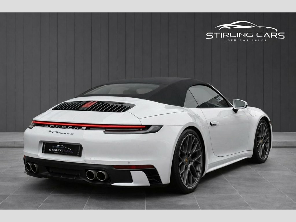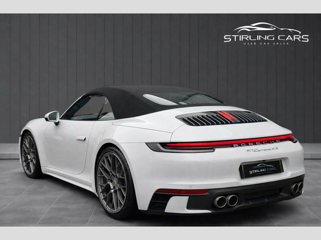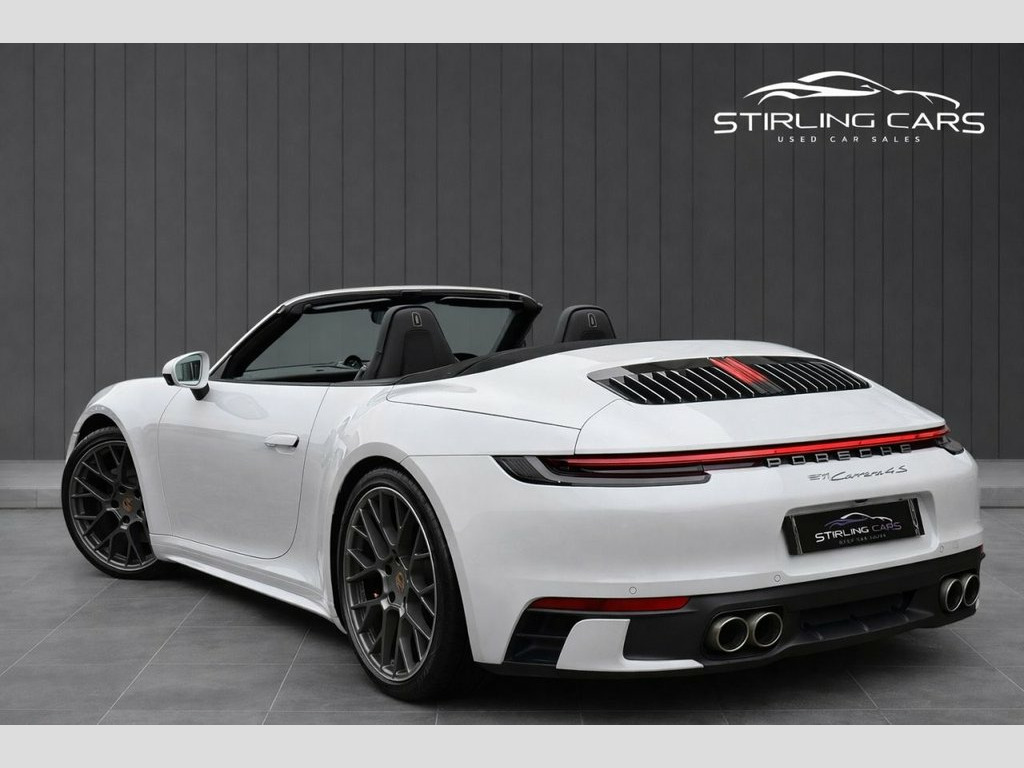 This 2019 Porsche 911 3.0T 992 Carrera 4S Convertible offers exceptional performance, luxury and style, finished with an outstanding specification and just one owner from new. Powered by a 450 ps twin-turbo flat-six paired with the renowned PDK gearbox and Porsche's intelligent 4WD system, it delivers a truly engaging driving experience supported by drive select sport modes, PASM sports suspension and a rear electric spoiler. Presented with MOT and warranty included, this example also comes with two keys and has been kept in excellent condition. The cabin offers heated and cooled leather seats, electric seat adjustment, a GT heated steering wheel, a digital clock, folding mirrors, navigation, a 360-degree camera system, cup holders and the premium Bose sound system. The exterior features the sought-after Sports Design package, twin exhausts and xenon headlights, giving the car an unmistakably sharp and modern appearance. A full specification list is available in the photos, and low-rate finance options can be arranged. This is a superb opportunity to own a beautifully specified and meticulously maintained Carrera 4S Convertible. PASM - Porsche Active Suspension Managem, GT Sport Steering Wheel in Leather - Hea, Steering Wheel - Heated, GT Sport Steering Wheel in Leather, 20in Front 21in Rear Alloy Wheels - RS S, Electrically Folding Exterior Mirrors, 10.9in Centre Display, 12-Volt Socket in Passenger Footwell, 20in Front 21in Rear Alloy Wheels - Carr, Auto-Deployed Rear Spoiler, Auto-Deploying Roll-Over Protection Syst, Automatic Headlight Activation including, Brake Calipers with Red Finish, Clothes Hooks on Seat Backrests and on B, Connect Plus, Convertible Top Colour - Black, Convertible Top Colour - Blue, Convertible Top Colour - Brown, Convertible Top Colour - Red, Cruise Control with Speed Limiter, DAB Digital