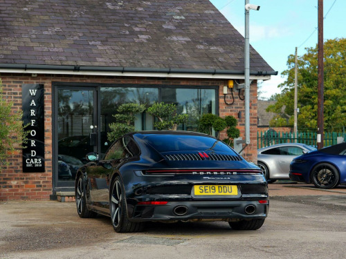 Warford Cars are proud to present this Porsche 911 3.0T 992 Carrera 4S finished in Jet Black Metallic with Houndstooth Interior in Black/Crayon. Factory Options include; Houndstooth Interior, Sports Exhaust System in Black, Sport Chrono Package including Mode Switch, (PDLS) LED Main Headlights including Porsche Dynamic Light System, Electric Glass Slide and Tilt Sunroof, ParkAssist Front and Rear with Reversing Camera, BOSE Surround Sound System, 20 Front 21 Rear Carrera Exclusive Design Alloy Wheels, 4 way Electric Sports Seats, Heated GT Sport Steering Wheel in Leather, SportDesign Package, SportDesign Side Skirts, Power Steering Plus, Privacy Glass, Interior Package with Carbon Matt, Porsche Crest on Head Restraints & Carbon Illuminated Door Sill Guards. The car has been a full Service History with Porsche Main Dealers having been done 08/07/2021 at 3321 miles, 20/06/2023 at 7205 miles and 15/09/2025 at 10378 miles. Viewings by appointment. Competitive Finance Options Available. Warranty Available. Professional GTechniq Accredited Detailing Available.