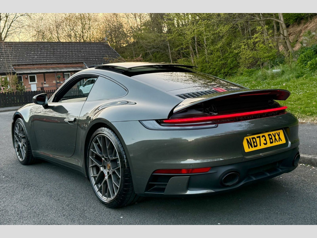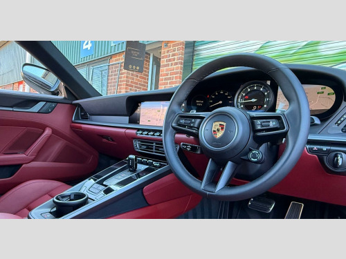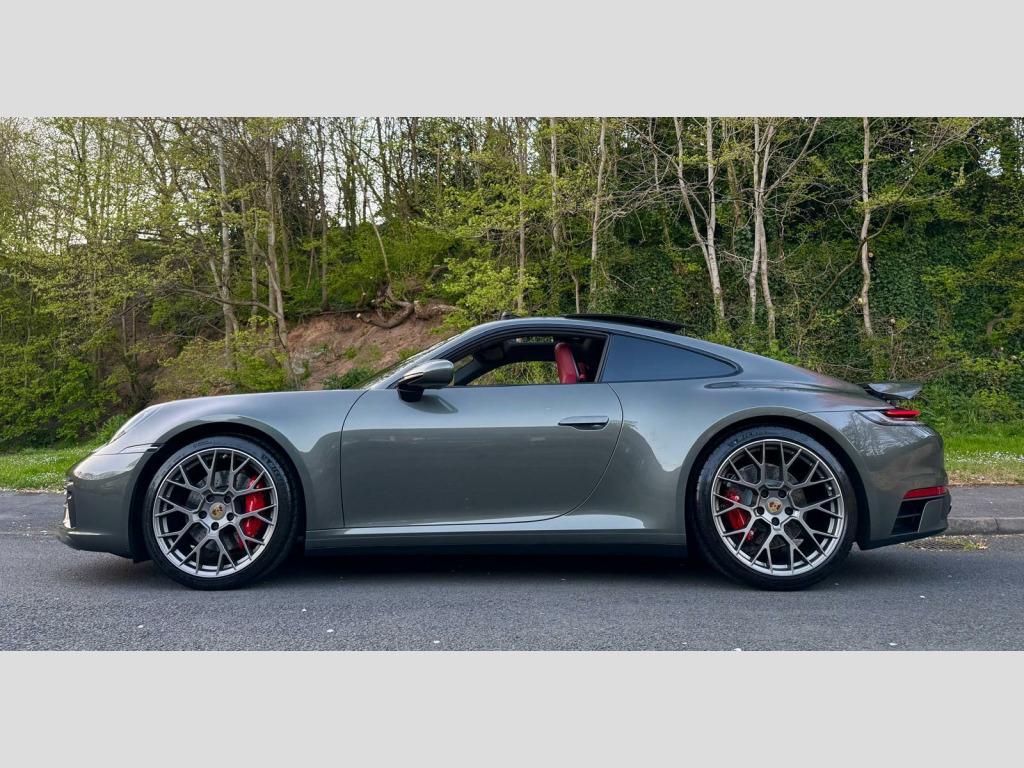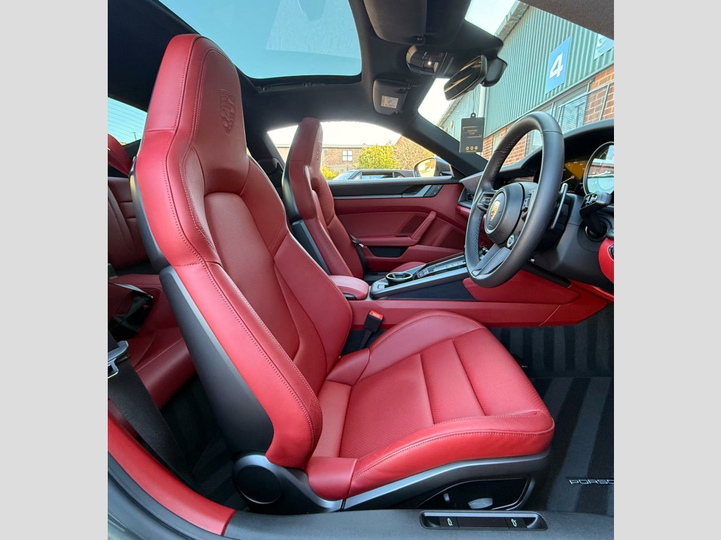 Cost Circa £135k new Very carefully sourced stunning 73 Reg Porsche 911 Carrera S Coupe1 Retired Owner from newNever seen the rain kept inside heated garage PPF Applied to the car from newCeramic coat applied Aventurine is a muted medium green metallic with a touch of blue-grey to it.Bordeaux Red Leather Interior Electric Slide/Tilt Glass SunroofSport Design PackageRS Spyder Design Alloy WheelsSports Exhaust System with Tailpipes in BlackSport Chrono Package including Mode SwitchParkAssist - Front and Rear with Reversing CameraElectrically Folding Exterior MirrorsPrivacy GlassElectric Sports Plus SeatsPorsche Crest on Headrests Wheel Centres with Full-Colour Porsche CrestExterior Mirror Lower Trims Painted and Mirror Base Painted in Black High-GlossLight Design PackagePORSCHE Logo - High-Gloss Black2 Remote Keys Porsche Main Dealer Warranty Expiry date 23/10/2026BUY WITH CONFIDENCE HERE AT SPORTS AND PRESTIGE VEHICLE SALES NOTTINGHAM AS ALL VEHICLES ARE HPI CLEAR WITH REPORT AND MILEAGE VERIFIED, FINANCE ARRANGED, PX A PLEASURE, AIRPORT/STATION PICK UP, OVERSEAS BUYERS WELCOME, VIEWING BY APPOINTMENT ONLY, usb-c ports in centre console main storage compartment lid - 12v socket in passenger footwell, 20in front 21in rear alloy wheels - carrera s, ascending centre console with storage compartment, auto-deployed rear spoiler, automatic headlight activation including welcome home lighting, automatically dimming interior and exterior mirrors with integrated rain sensor, clothes hooks on seat backrests, cruise control, dashboard trim strip - centre console trim and door panel trim strips in diamar darksilver, digital display for selected gear in rev counter, digital radio, door sill guards - model designation logo, eu ecall emergency system, electric parking brake, electromechanical power steering with variable steering ratio and steering pulse generator, embossed leather on front seat centres - front side bolsters - front seat head restraints, engine compartment cover grille with vertical slats in black high-gloss, engine immobiliser, engine water cooled with thermal management, exhaust system with 2 dual-tube tailpipe trims fixed to the bumper in high gloss silver stainless steel, exterior mirrors on door waist rails - electrically adjustable and heatable - aspherical on drivers side, floor mats, full-size airbags for driver and front passenger, glove compartment - lockable and storage compartment in each door, green tinted thermally insulated glass, heated rear screen, isofix child seat mounting points on front passenger seat, illuminated vanity mirrors in sun visors - driver and passenger sides, instrument cluster with central analogue rev counter - two 7in tft display, intelligent lightweight construction in aluminium-steel-composite construction, interior led lighting - reading lights - orientation - ignition lock - luggage compartment - footwell - glove compartment and door lighting, keyless go, led auxiliary lights units in front apron with position lights - direction indicators and side indicators, led main headlights - daytime running lights with 4-point led spotlights, luggage compartment - front, mcpherson - front axle with anti-roll bar, model designation on rear trim in light silver, multi-link rear axle with anti-roll bar, multifunction steering wheel with shift paddles and manual height-reach adjustment, pasm - porsche active suspension management, pcm - porsche communication management - include navigation, pdk gear selector with automatic mode - manual gear selection via shift paddles on the steering wheel, porsche lettering integrated in taillight strip, ptv plus - porsche torque vectoring plus, pvts - porsche vehicle tracking system, park assist - front and rear, particle-pollen filter with active carbon filter, porsche connect online navigation, porsche side impact protection - posip, porsche stability management - psm including abs with extended brake functions, porsche wet mode, power windows with one-touch operation and door seal protection function, preparation for porsche dashcam, remote control for central locking and luggage compartment lid release, retractable door handles, roof lining and a-b-c pillars in fabric, sport button to activate dynamic driving setting for engine and transmission, seats - heated front, side air intakes at the front with active cooling air flaps and air blades, side skirt trim in black, side window trim strips in black, six-piston closed type aluminium monobloc fixed brake calipers at front and four-piston closed type aluminium monobloc fixed brake calipers at rear - brake calipers with red finish, smartphone integration - apple carplay and android auto, smooth-finish leather on steering wheel rim - door handles - door panel armrests and centre console storage compartment lid, sound package plus, sports seats in front with electric backrest angle - seat height adjustment - manual adjustment of fore/aft position, stationary management with hold function, storage compartment in each door, taillight strip including integrated parking lights and rear fog light, three-dimensional led taillights and integral third brake light, two individual cupholders, two-zone automatic climate control, tyre pressure monitoring - tpm, tyre repair kit, variocam plus, warn and brake assist including pedestrian protection, windscreen washer system with aero wiper blades and washer jets, 20in front 21in rear alloy wheels - rs spyder design, sportdesign package, parkassist - front and rear with reversing camera, sport chrono package, electric glass slide and tilt sunroof, privacy glass, sports exhaust system with tailpipes in black, wheel centres with full-colour porsche crest, electrically folding exterior mirrors, exterior mirror lower trims painted and mirror base painted in black high-gloss, sports seats plus - electrical 4 way, light design package, porsche logo - high-gloss black, porsche crest on head restraints, leather two-tone - black - bordeaux red, sid
