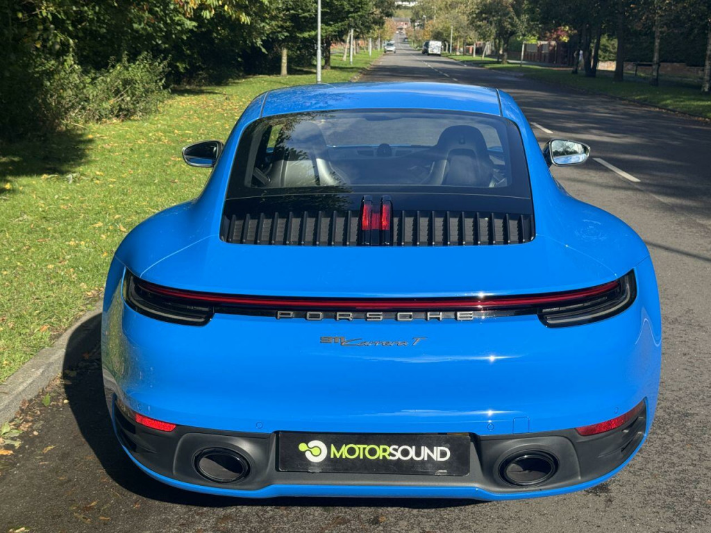 . 2 USB-C Ports in Centre Console Main Storage Compartment Lid - 12V Socket in Passenger Footwell, 21in Front 20in Rear Alloy Wheels - Carrera S Painted in Titanium Grey - High Gloss, 911 Carrera T Decorative Side Logo in Agate Grey, Ascending Centre Console with Storage Compartment, Auto-Deployed Rear Spoiler, Automatic Headlight Activation including Welcome Home Lighting, Automatically Dimming Interior and Exterior Mirrors with Integrated Rain Sensor, Clothes Hooks on Seat Backrests, Cruise Control, Dashboard Trim Strip - Centre Console Trim and Door Panel Trim Strips in Diamar Darksilver, Digital Display for Selected Gear in Rev Counter, Digital Radio, Door Sill Guards - Brushed Aluminium in Black with Carrera T Model Designation, Electric Parking Brake, Electromechanical Power Steering with Variable Steering Ratio and Steering Pulse Generator, Embossed Leather on Front Seat Centres - Front Side Bolsters - Front Seat Head Restraints, Engine Immobiliser, Engine Water Cooled with Thermal Management, EU eCall Emergency System, Exterior Mirrors on Door Waist Rails - Electrically Adjustable and Heatable - Aspherical on Drivers Side, Floor Mats, Four-Piston Aluminium Monobloc Fixed Brake Calipers at Front and Rear - Brake Calipers with Black Finish, Full-Size Airbags for Driver and Front Passenger, Glove Compartment - Lockable and Storage Compartment in Each Door, Green Tinted Thermally Insulated Glass, Heated Rear Screen, Illuminated Vanity Mirrors in Sun Visors - Driver and Passenger Sides, Instrument Cluster with Central Analogue Rev Counter - Two 7in TFT Display, Intelligent Lightweight Construction in Aluminium-Steel-Composite Construction, Interior LED Lighting - Reading Lights - Orientation - Ignition Lock - Luggage Compartment - Footwell - Glove Compartment and Door Lighting, ISOFIX Child Seat Mounting Points on Front Passenger Seat, Keyless Drive, LED Auxiliary Lights Units in Front Apron with Position Lights - Direction Indicators and Side Indicators, LED Main Headlights - Daytime Running Lights with 4-Point LED Spotlights, Lightweight and Noise Insulated Glass, Luggage Compartment - Front, McPherson - Front Axle with Anti-Roll Bar, Model Designation on Rear Trim in Agate Grey, Multi-Link Rear Axle with Anti-Roll Bar, Multifunction Steering Wheel with Shift Paddles and Manual Height-Reach Adjustment, Park Assist - Front and Rear, Particle-Pollen Filter with Active Carbon Filter, PASM Sport Suspension - 10mm Lowered, PCM - Porsche Communication Management - Include Navigation, PDK Gear Selector with Automatic Mode - Manual Gear Selection via Shift Paddles on the Steering Wheel, Porsche Connect Online Navigation, PORSCHE Lettering Integrated in Taillight Strip, Porsche Side Impact Protection - POSIP, Porsche Stability Management - PSM Including ABS with Extended Brake Functions, Porsche WET Mode, Power Windows with One-Touch Operation and Door Seal Protection Function, Preparation for Porsche Dashcam, PVTS - Porsche Vehicle Tracking System, Remote Control for Central Locking and Luggage Compartment Lid Release, Retractable Door Handles, Roof Lining and A-B-C Pillars in Fabric, Seats - Heated Front, Side Air Intakes at the Front with Active Cooling Air Flaps and Air Blades, Side Skirt Trim in Black, Side Window Trim Strips in Black, Slat Inlays Rear Lid Painted in Agate Grey High Gloss, Smartphone Integration - Apple Carplay and Android Auto, Smooth-Finish Leather on Steering Wheel Rim - Door Handles - Door Panel Armrests and Centre Console Storage Compartment Lid, Sound Package Plus, Sport Chrono Package, Sports Exhaust System in Black, Sports Seats Plus - Electrical 4 Way, Stationary Management with HOLD Function, Storage Compartment in Each Door, Taillight Strip including integrated Parking Lights and Rear Fog Light, Three-Dimensional LED Taillights and Integral Third Brake Light, Two Individual Cupholders, Two-Zone Automatic Climate Control, Tyre Pressure Monitoring - TPM, Tyre Repair Kit, VarioCam Plus, Warn and Brake A.
