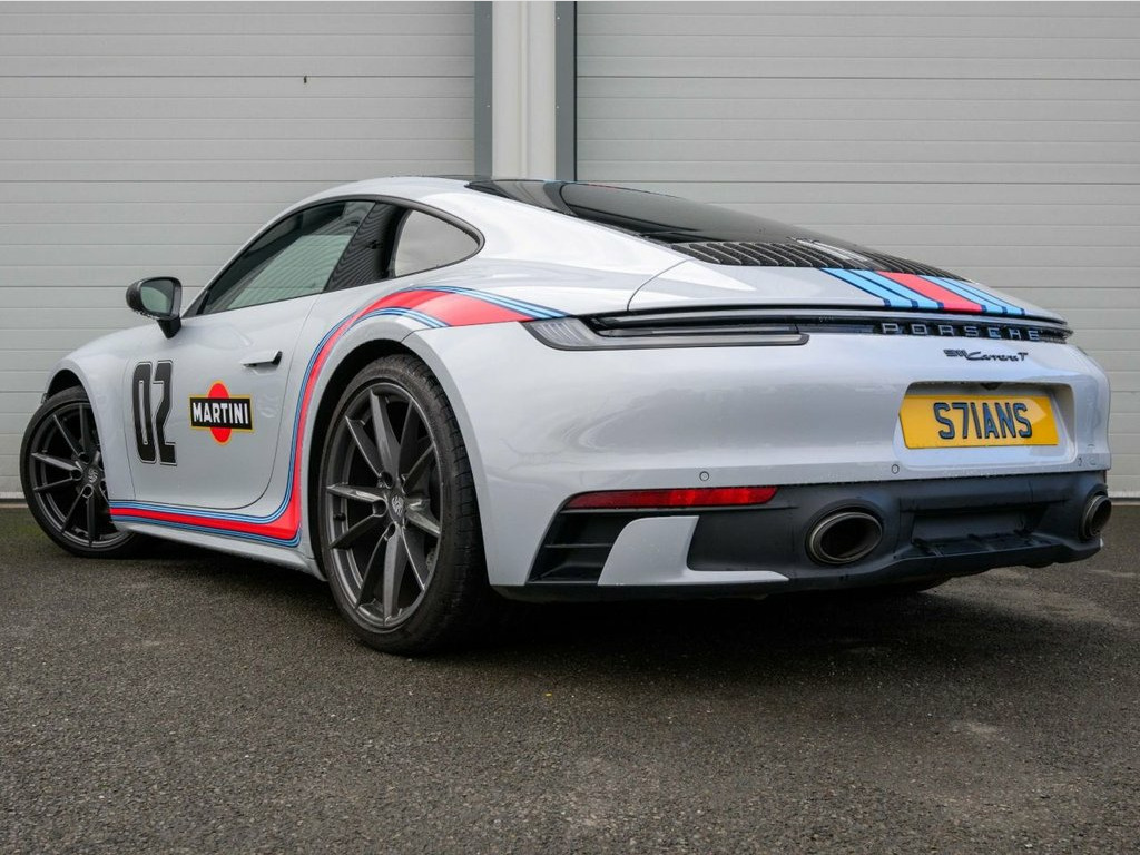 Sagitta is delighted to present for sale this stunning Porsche 911 3.0T 992 Carrera Coupe PDK 385PS in Metallic Ice Grey with a lack Half Leather Interior with Contrast Lizard Green Stitching, the car benefits from the following specifications, Apple Car Play, Reversing Camera, Bluetooth, Voice Control, Cruise Control, Park Assist Front and Rear, BOSE Sound System, Sport Chrono, Android Auto, Heated Front Seats, Carrera T Package with extensive items in the leather all Stitching in Lizard Green, Electric 4 Way Sport Seats Plus, Sport Design Package, Sport Design Side Skirts, Electric Tilt and Slide Sunroof, Electric Folding Exterior Mirrors, Privacy Glass, Storage Package, Rev Counter in Lizard Green, Porsche Crest on the Storage Compartment, Fire Extinguisher, 20/21" Carrera S Alloys in Titanium Grey High Gloss, Auto Deployed Rear Spoiler, Full Topaz PPF and Martini Racing Stickering, Serviced at Porsche Nottingham on the 05.09.2025 at 12,980 miles, Private Plate is coming off the car, More photos are available on our website, Part Exchange Welcome, all our cars come with a 6-month Warranty through Autoguard and 12 months of AA Roadside Assistance. Nationwide delivery is available, please contact us for a quote. Deposits can be taken over the phone. Payments can be made via bank transfer and Finance applications can be completed online. Whilst every effort is made to ensure the above details are correct, there may be some discrepancies, so please make sure to contact us 2 USB-C Ports in Centre Console Main Sto, 21in Front 20in Rear Alloy Wheels - Carr, 911 Carrera T Decorative Side Logo in Ag, Ascending Centre Console with Storage Co, Auto-Deployed Rear Spoiler, Automatic Headlight Activation including, Automatically Dimming Interior and Exter, Clothes Hooks on Seat Backrests, Cruise Control, Dashboard Trim Strip - Centre Console Tr, Digital Display for Selected Gear in Rev, Digital Radio, Door Sill Guards - Brushed Aluminium in , EU eCall Emergency System, Electric Parking Brake, Electromechanical Power Steering with Va, Embossed Leather on Front Seat Centres -, Engine Immobiliser, Engine Water Cooled with Thermal Managem, Exterior Mirrors on Door Waist Ra