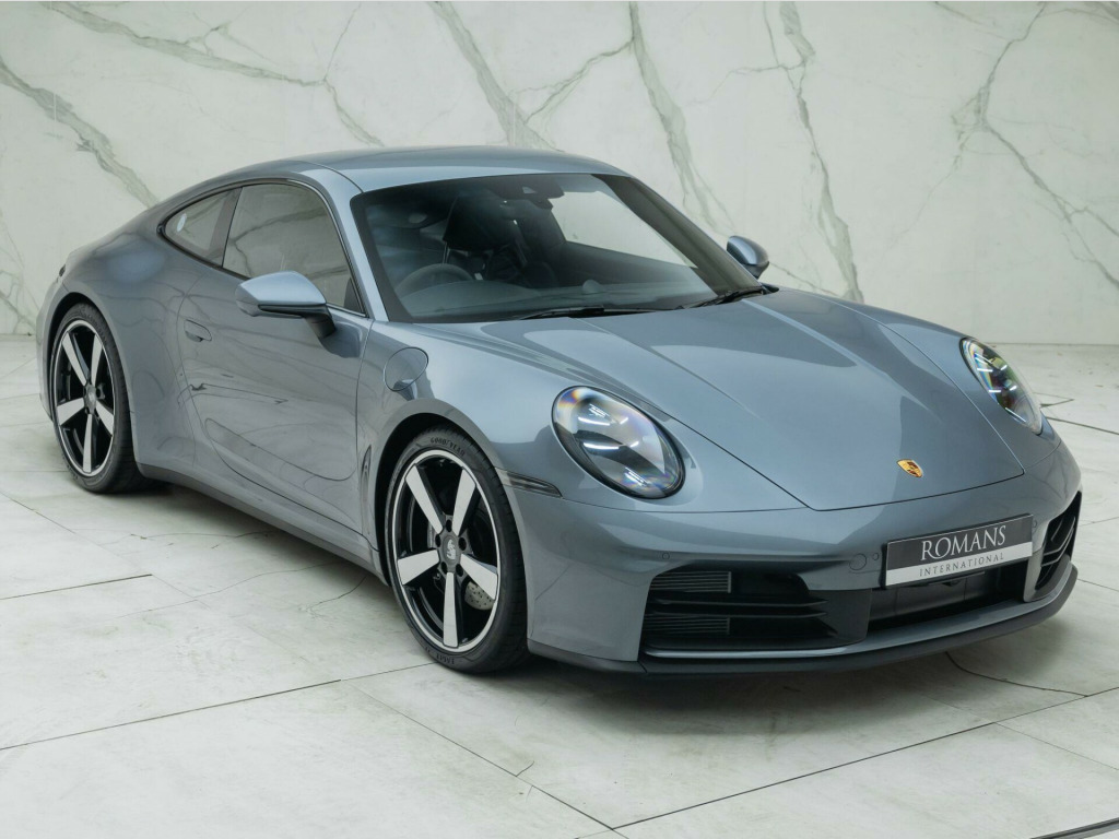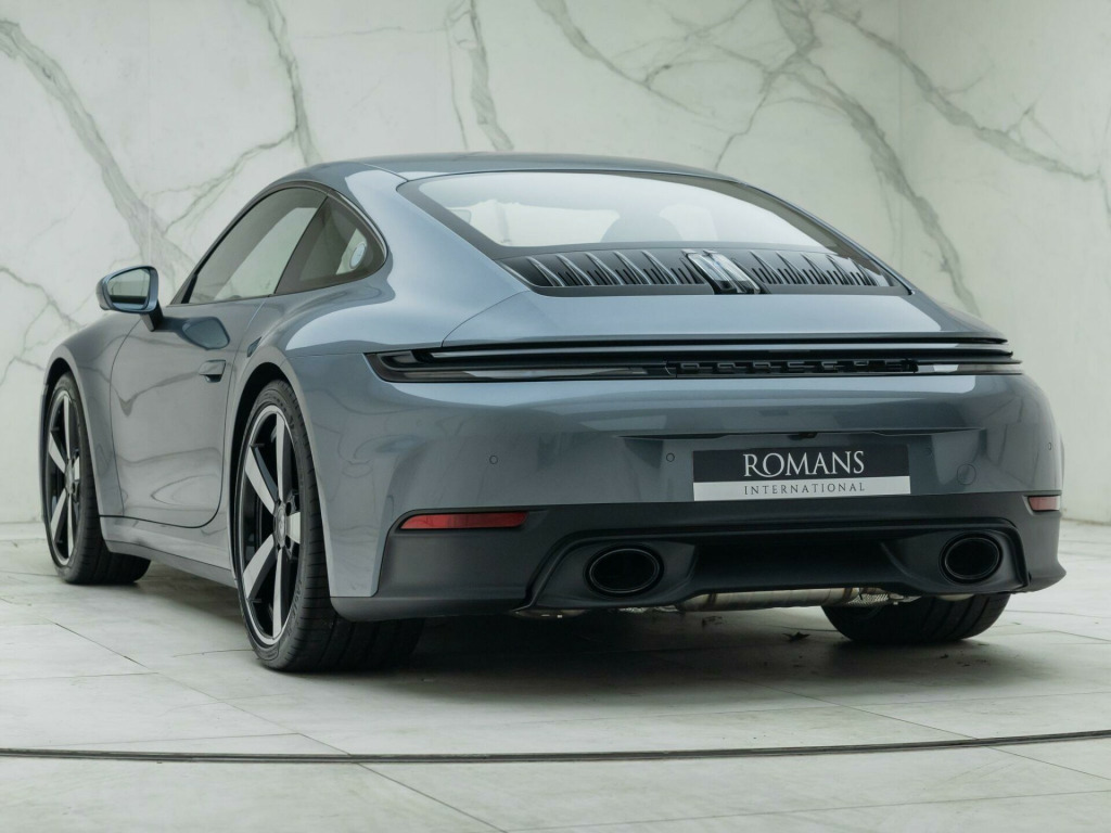 Finished in Vanadium Grey Metallic Paint (£1,068) with Sport-Tex Plaid Interior Package - Delivery Mileage Example - Original List Price of £132,948 - Desirably Equipped with Full Bucket Seats (£4,622) & BOSE Surround Sound System (£1,223) - Porsche Manufacturer’s Warranty until August 2028 - UK SuppliedOptional Extras:20/21-Inch Carrera S Wheels in Vanadium Grey Metallic (High-Gloss)Vanadium Grey Metallic PaintFull Bucket SeatsTinted HD-Matrix LED Main HeadlightsBOSE Surround Sound System6-Speed Sports TransmissionParkAssist including Surround ViewLane Change AssistPower Steering PlusHeated GT Sports Steering Wheel in Race-TexMatt Carbon Interior Package with Accent in BlackSport-Tex Plaid Interior Package with Extensive Items in LeatherPassenger Footwell Storage NetPreparation for Roof Transport SystemExclusive Design TaillightsExclusive Design Fuel Filler Cap911 Carrera T LED Door Courtesy LightsIlluminated Door Sill Guards in Matt CarbonRace-Tex Roof LiningRace-Tex Sun Visors'PORSCHE' Logo on Race-Tex Storage Compartment Lid Side Window Trims in High-Gloss BlackDeletion of Model DesignationDeletion of '911 Carrera T' Decorative Side LogoStandard Features:Cruise ControlPASM Sport Suspension (-10 mm)Porsche Torque Vectoring (PTV)Rear-Axle SteeringRear-Wheel DriveReversing CameraSport Chrono PackageSports Exhaust System With Black TailpipesTwo-Zone Automatic Climate Control. 20/21-Inch Carrera S Wheels in Vanadium Grey Metallic (High-Gloss), Vanadium Grey Metallic Paint, Full Bucket Seats, Tinted HD-Matrix LED Main Headlights, BOSE Surround Sound System, 6-Speed Sports Transmission, ParkAssist including Surround View, Lane Change Assist, Power Steering Plus, Heated GT Sports Steering Wheel in Race-Tex, Matt Carbon Interior Package with Accent in Black, Sport-Tex Plaid Interior Package with Extensive Items in Leather, Passenger Footwell Storage Net, Preparation for Roof Transport System, Exclusive Design Taillights, Exclusive Design Fuel Filler Cap, 911 Carrera T LED Door Courtesy Lights, Illuminated Door Sill Guards in Matt Carbon, Race-Tex Roof Lining, Race-Tex Sun Visors, 'PORSCHE' Logo on Race-Tex Storage Compartment Lid, Side Window Trims in High-Gloss Black, Deletion of Model Designation, Deletion of '911 Carrera T' Decorative Side Logo.