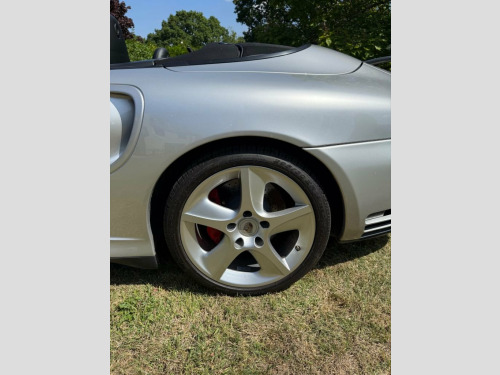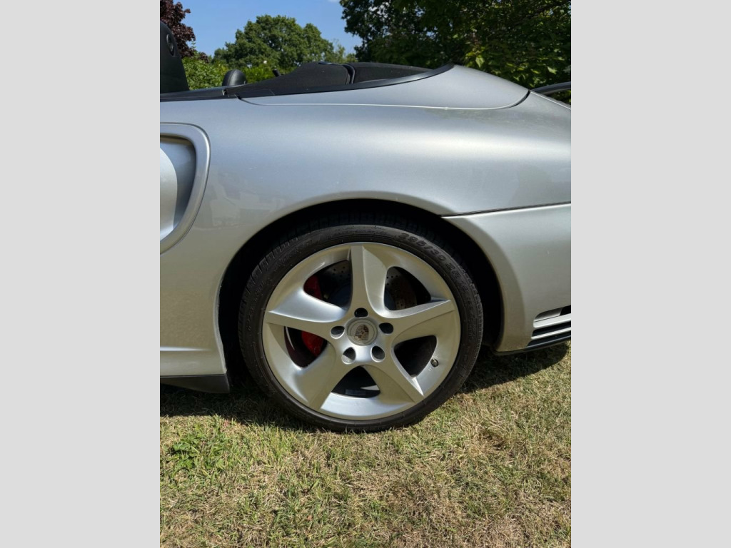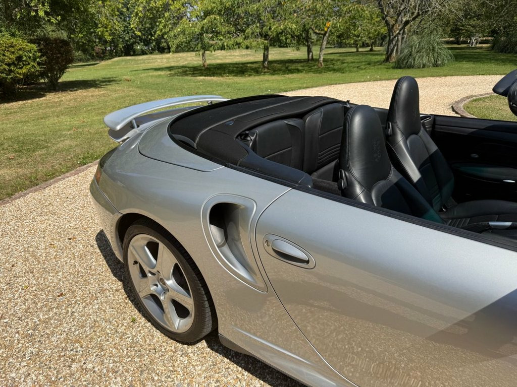 Highlights Low documented 36,836 miles from new Only four registered keepers Popular silver metallic over black leather Very good condition early Convertible 420bhp Turbo with desirale 6spd manual box Vendor describes service history as 'exceptional' MOT valid to July 2026 with no advisories Matching silver metallic hard top included as shown The Appeal The 996 was the most powerful 911 Turbo built to date, its 420bhp creating a car as exciting as its forebears but considerably more surefooted and planted for press-on drivers. The Convertible arrived in 2004. You could spec your Turbo with an auto box, but of course, you want a 6spd manual, which is what we have here. Classically finished in silver metallic with a black roof and black leather interior, this car has covered less than 37,000 documented miles from new. We admire the considerable restraint of its four keepers. The car is in very good condition across the interior and exterior, and looks far younger than its 21 years. It is supplied with its matching factory hard top. The MOT supports runs to July 2026 with no advisories. A fine example of the viscerally thrilling 996 Turbo. History and Paperwork First registered 9th June 2004 Four registered keepers from new Current keeper since December 2024 Factory handbooks and wallet as shown MOT valid to 16th July 2026 with no advisories Shows 36,830 miles on MOT and 36,836 miles in photos The Condition Silver metallic paintwork with usual Tu Adjustable Steering Column/Wheel, Air Bag Driver, Air Bag Passenger, Air Bag Side, Air-Conditioning, Alarm, Alloy Wheels (18in), Anti-Lock Brakes, Central Door Locking, Computer, Electric Windows (Front), Head Restraints, Immobiliser, In Car Entertainment (Radio/CD), Mirrors External, Porsche Communication Management System , Power-Assisted Steering, Seat Height Adjustment, Seat Lumbar Support, Spare Wheel, Speakers, Upholstery Cloth/Leather