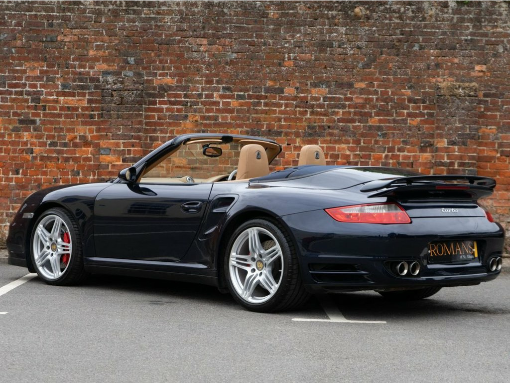 Romans Of St Albans are delighted to present to you this stunning Porsche 997 Turbo Tiptronic Cabriolet Finished in Midnight Blue with Luxor Beige Interior. This also comes with a hardtop making the car fit for all seasons. This Turbo has a range of optional extras to include: Sport Chrono Package, ParkAssist, Cruise control, Seat Heating, HomeLink, Three-spoke multifunction steering wheel with aluminium look trim and Porsche crest embossed on headrest. FINANCE AVAILABLE. A £299 admin fee applies to third party finance companies being used. FREE ON-SITE PARKING (ASK FOR DETAILS.) Romans after care package includes: Romans warranty for 6 months (12,24 & 36 months are available), Main dealer cover available, Free breakdown cover for warranty duration, Full Romans service prior to delivery, 84 point vehicle inspection, 12 months MOT, Free Life time MOT when servicing with us (ask for details), Total value of package: £2000 - ALL INCLUSIVE IN THE PRICE. All of our clients have the added peace of mind that we have our own workshop facilities with free courtesy cars. Part Exchange very welcome, nationwide delivery also available. To avoid a wasted journey we highly recommend making an appointment, so call us now to get yours booked! Romans provide the highest of quality vehicles, and have at least 80 cars in stock at any one time. This means not all cars can be kept on site. This will also allow us to give you our fully undivided attention when viewing the vehicle y Porsche Crest embossed on headrest , Sports Chrono Package Turbo, Midnight Blue, Parking System, Cruise Control, Floor Mats, Heated Seats, Homelink, 3 Spoke M/Function Steering Wheel in Alu
