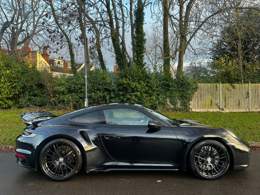 Porsche 992 911 Turbo Finished in Jet Black Metallic With Black Leather Interior offering £13748.00 Worth of Extras. , This 992 911 Turbo has the remainder of Porsche warranty until Feb 2026 which can be extended upon request. , Options include: 911 Turbo logo on rear in high gloss black, sport exhaust system with black tailpipes, PASM sport suspension lowered 10mm, high-gloss black brake calipers, Power Steering Plus, Porsche Dynamic Chassis Control (PDCC), heated steering wheel, glass electric slide/tilt sunroof, Keyless Entry & Go, privacy glazing, microfibre sun visors with mirrors, LED-Matrix headlights in black with PDLS+, clear taillights, Burmester High-End Surround Sound System, PORSCHE rear logo in high gloss black, Adaptive Sport Seats Plus (18-way) with memory, storage package, ambient lighting, and exterior-colour side skirts. , , Supplied With 12 Months MOT, A Service if Required and 3 Months Extendable Nationwide Warranty. Free 12 Months Road Side Assistance Available. , , ***Established for 10 years, we are an FCA regulated, VAT registered business specialising in purveying highly prepared vehicles to satisfy the most discerning of customers***, VIEWINGS BY APPOINTMENT*** To ensure the vehicle you are enquiring on is available and so we can offer you the attention you require***, Every retail vehicle is supplied with a new MOT, mechanical inspection, full valet, paint correction and a service if required***, , For finance applications, please visit WWW.WHITESTONEVEHICLESALES.CO.UK. For a full walk around video, please give us a call and we will be happy to oblige. , ....RESERVE THIS VEHICLE WITH A FULLY REFUNDABLE DEPOSIT....ZERO DEPOSIT FINANCE AVAILABLE....2 MINUTE APPLICATION AVAILABLE DIRECTLY THROUGH OUR WEBSITE, REGARDLESS OF YOUR CREDIT HISTORY.... UPGRADE YOUR WARRANTY FOR AS LITTLE AS £149.00.... FULLY HPI AND EXPERIAN CLEAR.... BUY WITH CONFIDENCE WITH OUR 5 STAR REVIEWS....VIEWINGS BY APPOINTMENT- PLEASE CALL THE OFFICE ON 02477 676844