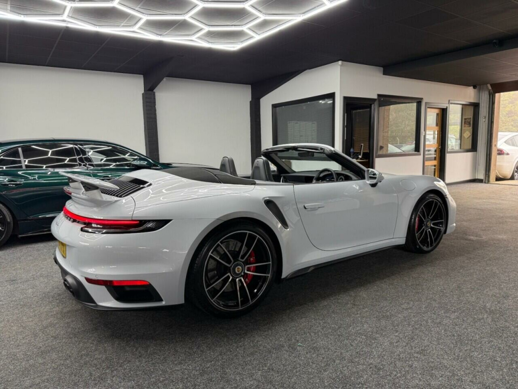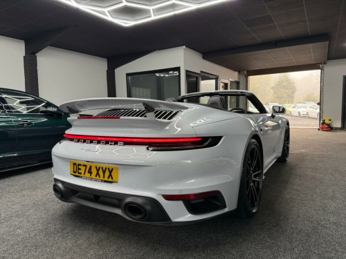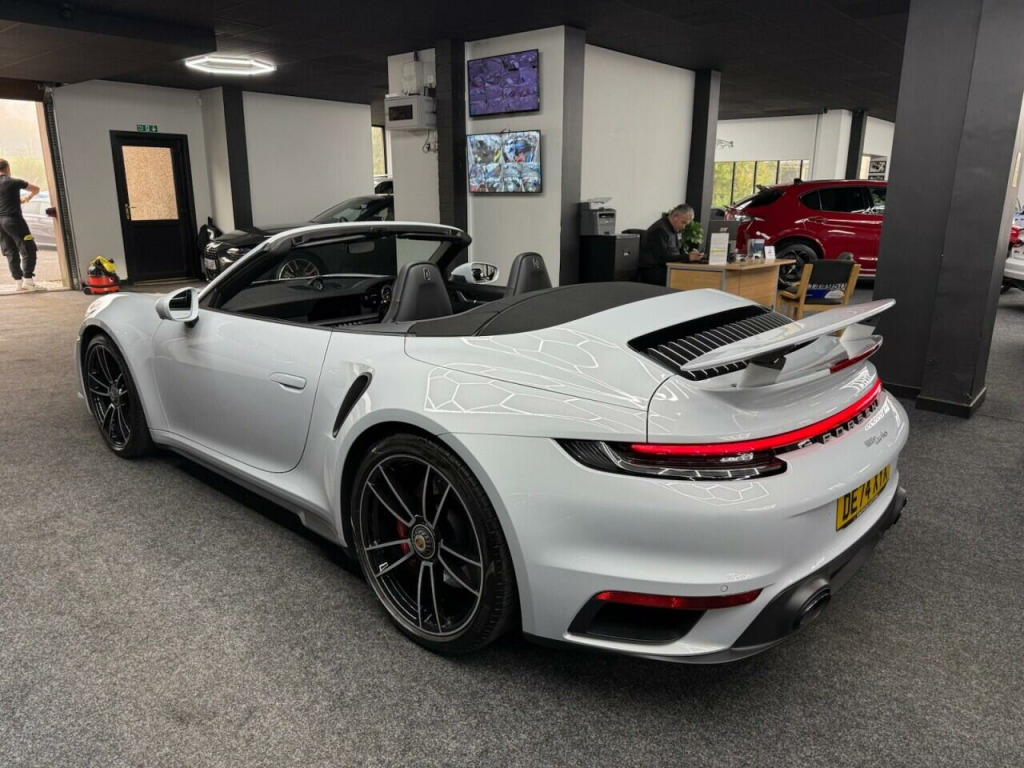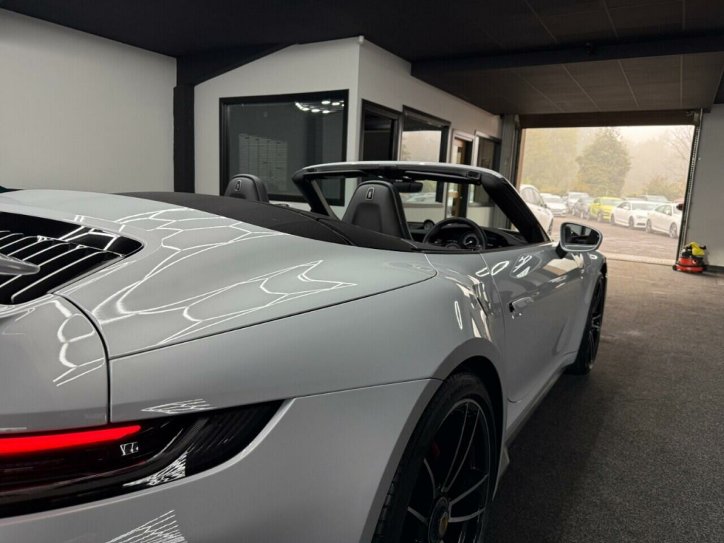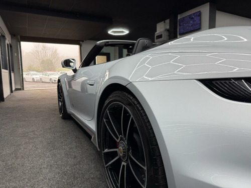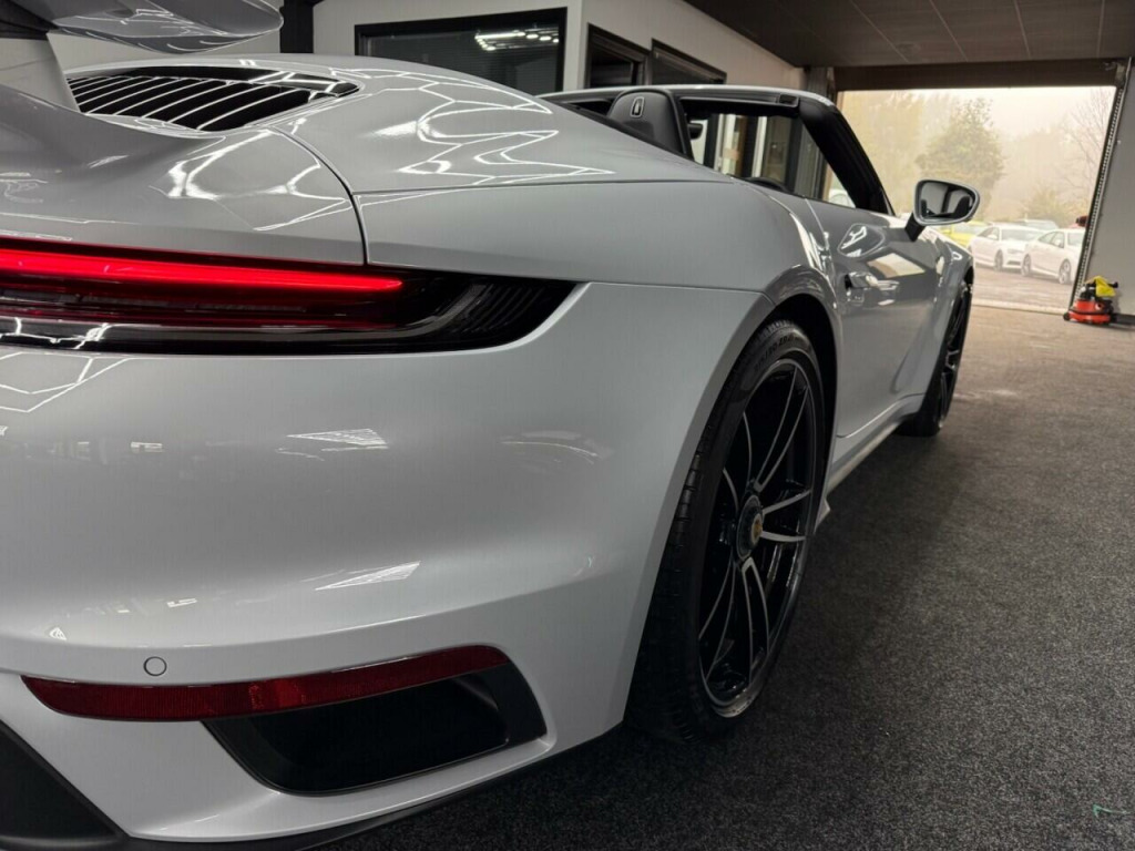 . 2 USB-C Ports in Centre Console Main Storage Compartment Lid - 12V Socket in Passenger Footwell, BOSE Surround Sound System, Cruise Control, Electromechanical Power Steering with Variable Steering Ratio and Steering Pulse Generator, Embossed Leather on Front Seat Centres - Front Side Bolsters - Front Seat Head Restraints, Front Apron with Side Air Intakes - Active Cooling Air Flaps and Air Blades in Black, Fully Electric Sports Seats - 14 Way with Memory Package, GT Sport Steering Wheel in Leather, Heated Rear Screen, Instrument Cluster with Central Analogue Rev Counter - Two 7in TFT Display, Integral Electrically Powered Wind Deflector, Keyless Drive, Memory Function - Both Exterior Mirrors - Steering Column and Drivers Seat Position as well as other Personalised In-Car Settings, Multifunction Steering Wheel with Shift Paddles and Manual Height-Reach Adjustment, ParkAssist - Front and Rear with Reversing Camera, PASM - Porsche Active Suspension Management, PCM - Porsche Communication Management - Include Navigation, PDK Gear Selector with Automatic Mode - Manual Gear Selection via Shift Paddles on the Steering Wheel, Porsche Active Aerodynamics - PAA with Active Front Spoiler Active Cooling Air Intake Flaps and Active Rear Wing, Porsche Stability Management - PSM Including ABS with Extended Brake Functions, Porsche WET Mode, PTM - Porsche Traction Management, PTV Plus - Porsche Torque Vectoring Plus, Rear Apron and Rear Apron Lower Section with Integrated Tailpipe trims and Intercooler, Rear Axle Steering, Seats - Heated Front, Side Air Intakes at the Front with Active Cooling Air Flaps and Air Blades in Black, Six-Piston Closed Type Aluminium Monobloc Fixed Brake Calipers at Front and Four-Piston Closed Type Aluminium Monobloc Fixed Brake Calipers at Rear - Brake Calipers with Red Finish, Smartphone Integration - Apple Carplay and Android Auto, Sport Chrono Package, Porsche Crest on Storage Compartment Lid, Electrically Folding Exterior Mirrors, Front Axle Lift System, ParkAssist System including Surround View, Door Sill Guards - Carbon Matt - Illuminated, GT Sport Steering Wheel in Leather - Heated, Light Design Package, Porsche Design Subsecond Clock, Wheel Centres with Full-Colour Porsche Crest, Sports Exhaust System with Tailpipes in Black, Convertible Top Colour - Black, Tinted LED Main Headlights with Matrix Beam including Porsche Dynamic Light System Plus - PDLS Plus, 20in Front 21in Rear Alloy Wheels - 911 Turbo S, Protection Foil - Front, Ice Grey.