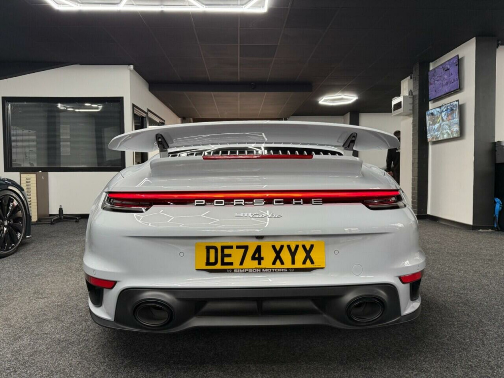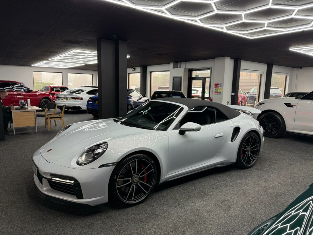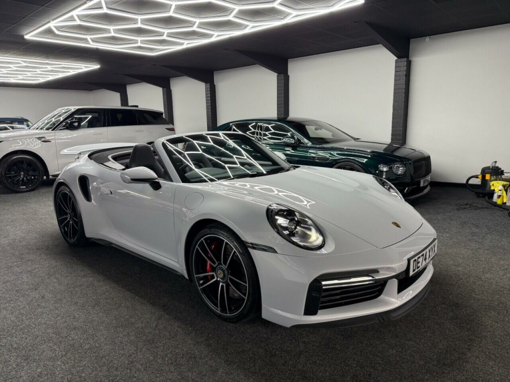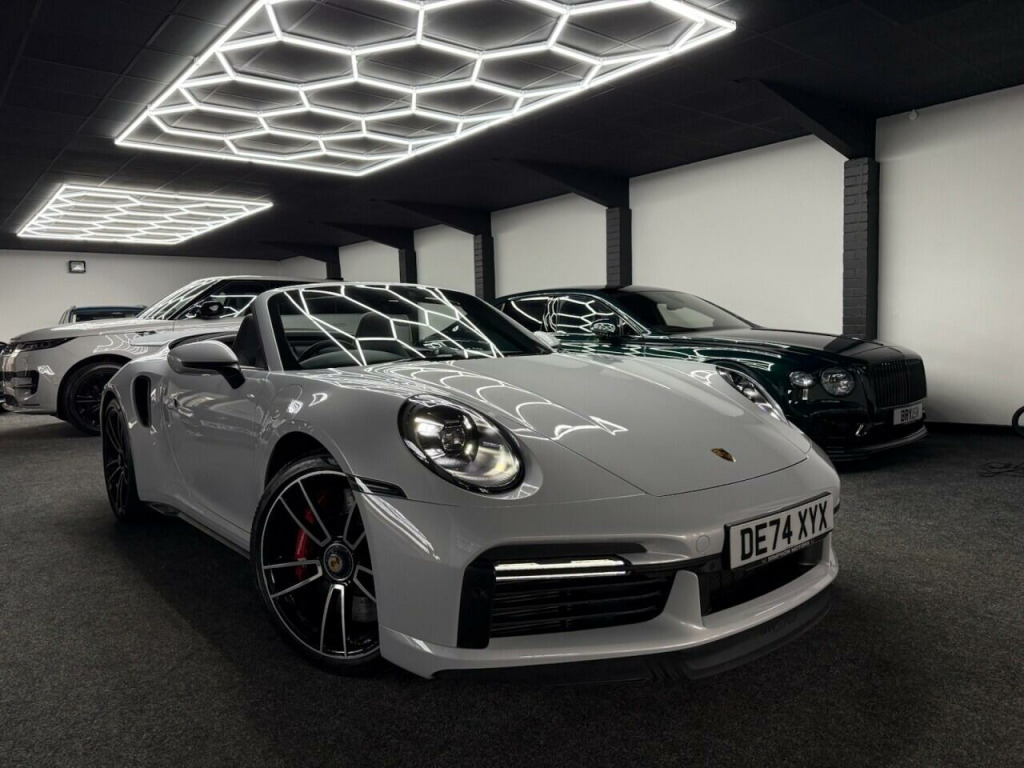 . 2 USB-C Ports in Centre Console Main Storage Compartment Lid - 12V Socket in Passenger Footwell, BOSE Surround Sound System, Cruise Control, Electromechanical Power Steering with Variable Steering Ratio and Steering Pulse Generator, Embossed Leather on Front Seat Centres - Front Side Bolsters - Front Seat Head Restraints, Front Apron with Side Air Intakes - Active Cooling Air Flaps and Air Blades in Black, Fully Electric Sports Seats - 14 Way with Memory Package, GT Sport Steering Wheel in Leather, Heated Rear Screen, Instrument Cluster with Central Analogue Rev Counter - Two 7in TFT Display, Integral Electrically Powered Wind Deflector, Keyless Drive, Memory Function - Both Exterior Mirrors - Steering Column and Drivers Seat Position as well as other Personalised In-Car Settings, Multifunction Steering Wheel with Shift Paddles and Manual Height-Reach Adjustment, ParkAssist - Front and Rear with Reversing Camera, PASM - Porsche Active Suspension Management, PCM - Porsche Communication Management - Include Navigation, PDK Gear Selector with Automatic Mode - Manual Gear Selection via Shift Paddles on the Steering Wheel, Porsche Active Aerodynamics - PAA with Active Front Spoiler Active Cooling Air Intake Flaps and Active Rear Wing, Porsche Stability Management - PSM Including ABS with Extended Brake Functions, Porsche WET Mode, PTM - Porsche Traction Management, PTV Plus - Porsche Torque Vectoring Plus, Rear Apron and Rear Apron Lower Section with Integrated Tailpipe trims and Intercooler, Rear Axle Steering, Seats - Heated Front, Side Air Intakes at the Front with Active Cooling Air Flaps and Air Blades in Black, Six-Piston Closed Type Aluminium Monobloc Fixed Brake Calipers at Front and Four-Piston Closed Type Aluminium Monobloc Fixed Brake Calipers at Rear - Brake Calipers with Red Finish, Smartphone Integration - Apple Carplay and Android Auto, Sport Chrono Package, Porsche Crest on Storage Compartment Lid, Electrically Folding Exterior Mirrors, Front Axle Lift System, ParkAssist System including Surround View, Door Sill Guards - Carbon Matt - Illuminated, GT Sport Steering Wheel in Leather - Heated, Light Design Package, Porsche Design Subsecond Clock, Wheel Centres with Full-Colour Porsche Crest, Sports Exhaust System with Tailpipes in Black, Convertible Top Colour - Black, Tinted LED Main Headlights with Matrix Beam including Porsche Dynamic Light System Plus - PDLS Plus, 20in Front 21in Rear Alloy Wheels - 911 Turbo S, Protection Foil - Front, Ice Grey.