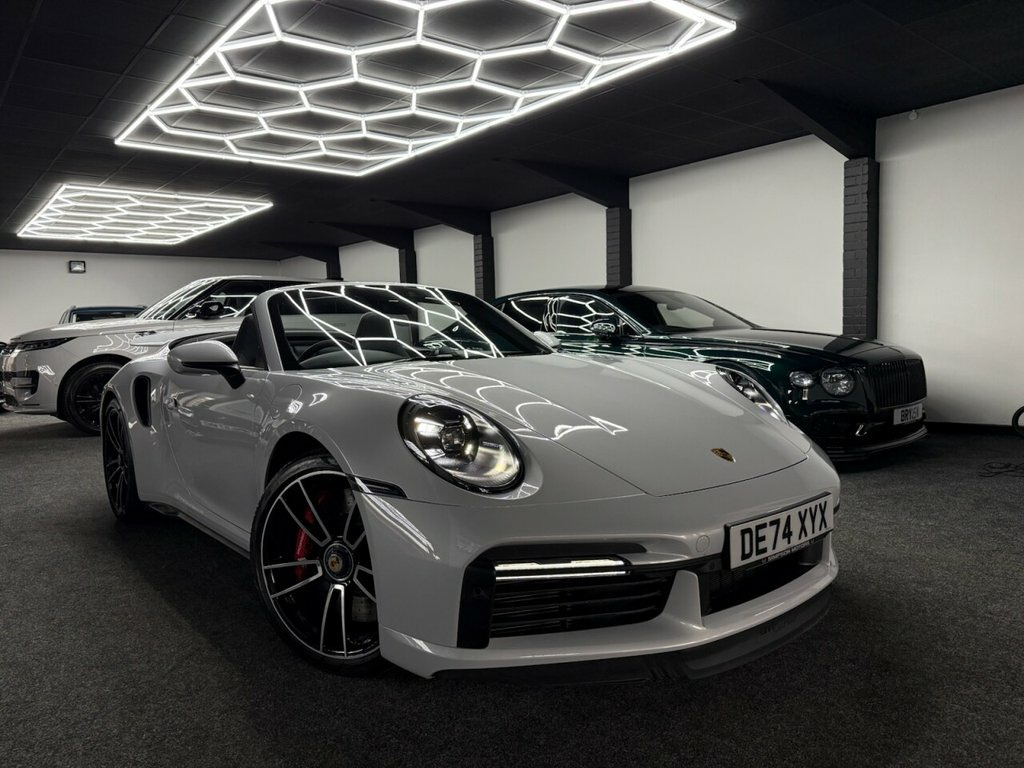 Here we have a Stunning Porsche 911 (992) Turbo Cabriolet PDK 4WD finished in the iconic Ice Grey Metallic, a perfect colour for the Turbo that highlights the lines of the 992 beautifully and looks incredible in all light. This example has covered only 6,700 miles from new and represents a huge saving compared to buying new, with an original list price of approximately £186,000. This is not a basic car either — it was specified exceptionally well from factory with almost £17,000 worth of optional extras, making it an extremely desirable example for the next owner. The Turbo Cabriolet is the ultimate all-round supercar, combining effortless performance, comfort and usability, with the added enjoyment of open-top driving and the confidence of Porsche's superb 4WD system. The car comes complete with the Porsche leather book pack and 2 keys. We have also carried out a full HPI check to confirm the vehicle's history and mileage, and we are more than happy to share a copy of the certificate with any prospective buyer for complete peace of mind. If you would like to arrange a viewing or test drive please contact us on 01383 730529. We can also offer G Techniq ceramic coatings for £399 — please let us know if you would like this applied. Porsche Crest on Storage Compartment Lid, Electrically Folding Exterior Mirrors, Front Axle Lift System, ParkAssist System including Surround Vie, Door Sill Guards - Carbon Matt - Illumin, GT Sport Steering Wheel in Leather - Hea, Light Design Package, Porsche Design Subsecond Clock, Wheel Centres with Full-Colour Porsche C, Sports Exhaust System with Tailpipes in , Convertible Top Colour - Black, Tinted LED Main Headlights with Matrix B, 20in Front 21in Rear Alloy Wheels - 911 , Protection Foil - Front, Ice Grey, 2 USB-C Ports in Centre Console Main Sto, BOSE Surround Sound System, Cruise Control, Electromechanical Power Steering with Va, Embossed Leather on Front Seat Centres -, Front Apro
