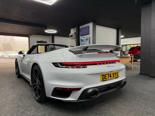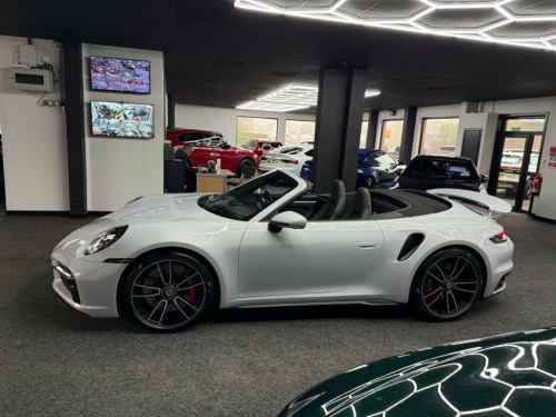 Stunning Example Of The Porsche 911 Turbo Cabriolet PDK , The Car Has Only Done Only 6,700 Miles From New, The Car Will Also Come Supplied With Porsche Leather Book Pack & 2 Keys. We Have Also Carried Out a Full Hpi Check On The Car To Confirm Its History & Mileage We Are Happy To Share A Copy Of The Certificate With You. If You Would Like To Arrange A Viewing Or Test Drive Please Call 01383 730529, We can also offer G Techniq ceramic coatings for £399 please let us know if you would like this applied. Porsche Crest on Storage Compartment Lid, Electrically Folding Exterior Mirrors, Front Axle Lift System, ParkAssist System including Surround Vie, Door Sill Guards - Carbon Matt - Illumin, GT Sport Steering Wheel in Leather - Hea, Light Design Package, Porsche Design Subsecond Clock, Wheel Centres with Full-Colour Porsche C, Sports Exhaust System with Tailpipes in , Convertible Top Colour - Black, Tinted LED Main Headlights with Matrix B, 20in Front 21in Rear Alloy Wheels - 911 , Protection Foil - Front, Ice Grey, 2 USB-C Ports in Centre Console Main Sto, BOSE Surround Sound System, Cruise Control, Electromechanical Power Steering with Va, Embossed Leather on Front Seat Centres -, Front Apro