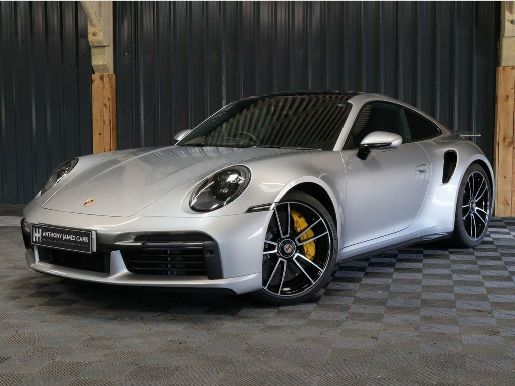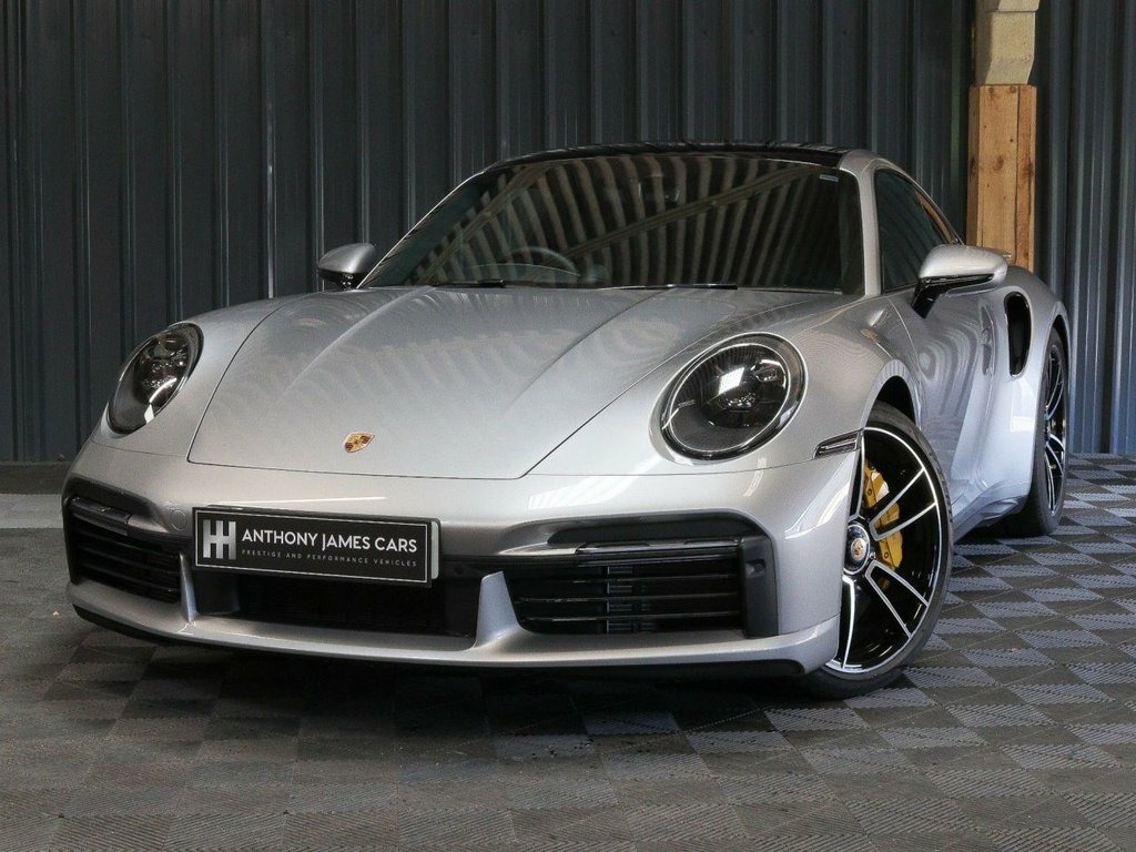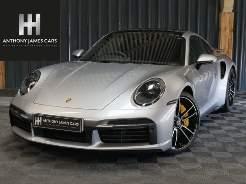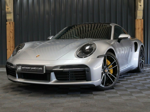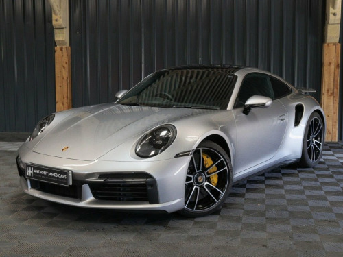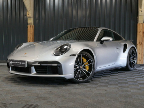 A masterpiece of engineering, this stunning, low mileage 992 Turbo S Coupe in beautiful GT Silver Metallic over Porsche Ebony 18-way Memory, Heated Leather Sports Seats with Turbo embossing and Silver Contrast Stitching. Wonderful specification includes Sports Exhaust, Glass Tilt and Slide Sunroof, Model Logo on storage compartment, GT Steering Wheel, Bose Audio, Reversing Camera, Heated 18-Way Electric Memory Seats, Ceramic Brakes (PCCB), Tinted Matrix High Beam assist and PDSL +, Exclusive design Tail lights, Rear Axle Steer, Black Slats and vents carbon interior and more Hailed as a return to form, as Evo Magazine said, "It's the sharpest 911 Turbo yet". 992 Turbo S has moved the game on – more power, greater performance, improved agility and more luxury. In terms of acceleration, 0-62mph arrives in a blistering 2.7sec and on to a staggering 212mph. This Porsche 911 Turbo S is simply an indulgence in luxury and performance. Interior Package - Brushed Aluminium, Rear Side Air Intakes Painted in Gloss B, Porsche Logo LED Door Courtesy Lights, Side Window Trims - Black High Gloss, Exclusive Design Tail Light, Tinted LED Main Headlights with Matrix B, Exterior Mirror Bases Painted in Gloss B, Storage Compartment Lid with Model Logo, Privacy Glass, Electric Glass Slide and Tilt Sunroof, Slat Inlays Rear Lid Painted in Black Hi, GT Silver, 2 USB-C Ports in Centre Console Main Sto, 20in Front 21in Rear Alloy Wheels - 911 , Adaptive Sports Seats Plus -18-Way- Feat, Ascending Centre Console with Storage Co, Automatic Headlight Activation including, Automatically Dimming Interior and Exter, BOSE Surround Sound System, Cl