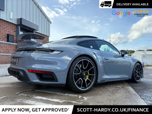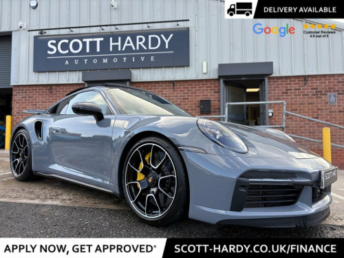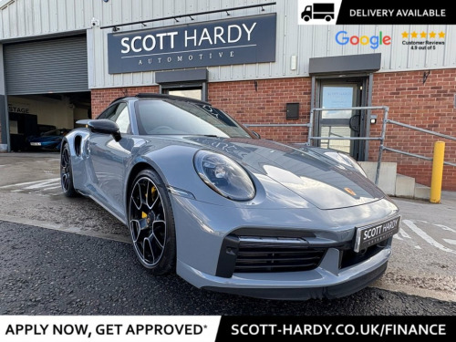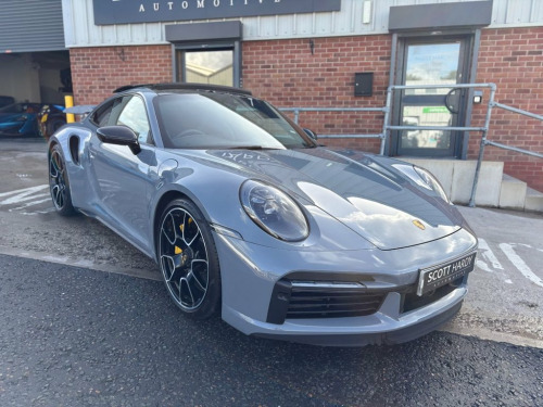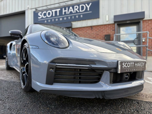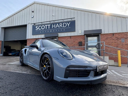 Scott Hardy automotive are proud to present this stunning PORSCHE 911 3.7T 992 Turbo S coupe finished in artic grey. Arctic Grey Elegance Meets Unrelenting Power. Uncompromising. Unmistakable. Unforgettable. The Porsche 911 Turbo S (992) in Arctic Grey is more than a car—it's a statement. A fusion of timeless design and cutting-edge engineering, sculpted for those who demand excellence in every detail from the moment you ignite the sports exhaust system, the symphony of performance begins. The PASM sports suspension (-10mm) hugs the road with precision, while the 20-inch front / 21-inch rear Turbo S Exclusive Design alloy wheels command attention with every turn. Inside, luxury meets innovation. The heated GT sports steering wheel invites you to take control, while the Burmester® High-End Surround Sound System transforms every drive into a concert hall experience. The electric slide/tilt glass sunroof opens up the sky, and the privacy glass ensures your journey remains yours alone. Navigate with confidence using Porsche InnoDrive with Active Lane Keeping, and Traffic Assist. The Front Axle Lift System and Park Assist with Surround View make city driving effortless, while Power Steering Plus delivers razor-sharp responsiveness. Every detail is crafted to perfection—from the carbon fibre mirror trims and Exclusive Design tail lights, to the Light Design Package that illuminates your path with elegance. The storage package ensures practicality never comprom Lightweight Package - including Adaptive, Front Axle Lift System, Tinted LED Main Headlights with Matrix B, Power Steering Plus, PASM Sport Suspension - 10mm Lowered, Leather - Black, Burmester High-End Surround Sound System, Arctic Grey, Porsche InnoDrive including Adaptive Cru, ParkAssist System including Surround Vie, Lane Change Assist, Adaptive Cruise Control, Lane Keep Assist including Speed Limit I, Fully Electric Sports Seats - 14 Way wit, Light Design Package, GT Sport Steering Wheel in Leather - Hea, Exterior Mirror Upper Trims in Carbon, Storage Compartment Lid in Race-Tex with, Privacy Glass, Rear Side Air Intakes Painted in Gloss B, Side Window Trims - Black High Gloss, Sports E