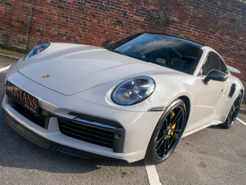 Romans of St Albans are delighted to present to you this Crayon Grey 992 Turbo S with an incredible 850 BHP professionally tuned by ES Motors. Ghost immobiliser fitted for added security and Porsche tracker fitted. It has a huge list of optional extras including an ES aftermarket titanium exhaust, making it sound incredible. It also has two tone leather interior, Porsche full service history, electric glass slide an tilt sunroof, power steering plus, BOSE, PCCB, light design package, sport tailpipes in black, side skirt in exterior colour, exterior mirror upper trims in carbon, side window trims gloss black, rear side air intakes painted in gloss black, Porsche logo - high gloss black, model designation painted - black high gloss, exclusive design fuel filler cap, sport chrono stopwatch instrument dial in white, storage compartment lid with Porsche crest, belt outlet trims in race-tex, race-tex sun visors, heated multifunction GT sports wheel race-tex with matt carbon panel, door sill guards - carbon illuminated, aluminium pedals, seat centres in leather in contrasting colour, led black matrix headlights including Porsche dynamic light system plus, exclusive design tail light, privacy glass, homelink and Porsche entry. FINANCE AVAILABLE. A £299 admin fee applies to third party finance companies being used. FREE ON-SITE PARKING (ASK FOR DETAILS.)Romans after care package includes: Romans warranty for 6 months (12,24 & 36 months are available), Main dealer cover avail PORSCHE Logo - High Gloss Black, Intakes Painted In Gloss Black, Aluminium Pedals, Seat Centres in Leather in Contrasting C, Door Sill Guards - Carbon Illuminated - , HomeLink, Exclusive Design Tail Light, Heated Multifunction GT Sports Steering , Race-Tex Sun Visors, Belt Outlet Trims in Race-Tex, Storage Compartment Lid with Porsche Cre, Storage Package, Sport Chrono Stopwatch Instrument Dial -, Exclusive Design Fuel Filler Cap, Exclusive Manufaktur Two-Tone Leather - , Crayon, Power Steering Plus, Model Designation Painted - Black High-G, Porsche Entry, Tinted LED Main Headlights with Matrix B, Side Window Trims - Black High Gloss, Exterior Mirror Upper Trims in Carbon, Sports Exhaust Sys