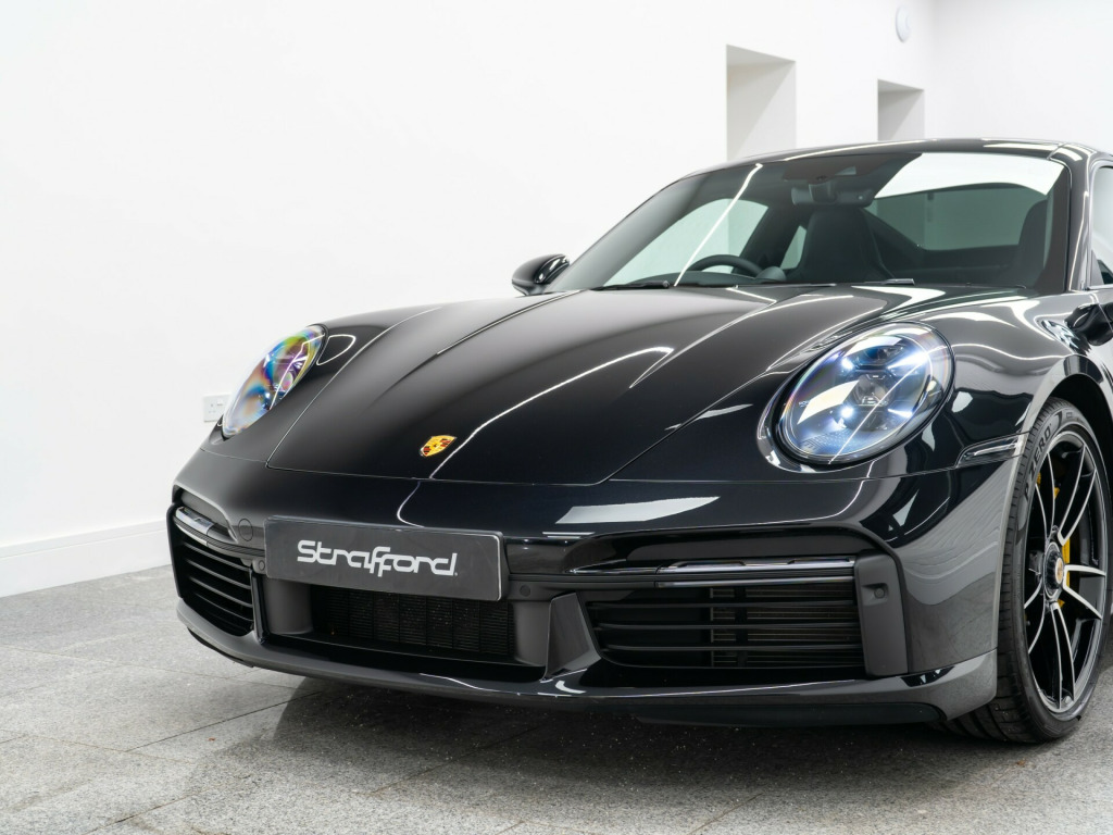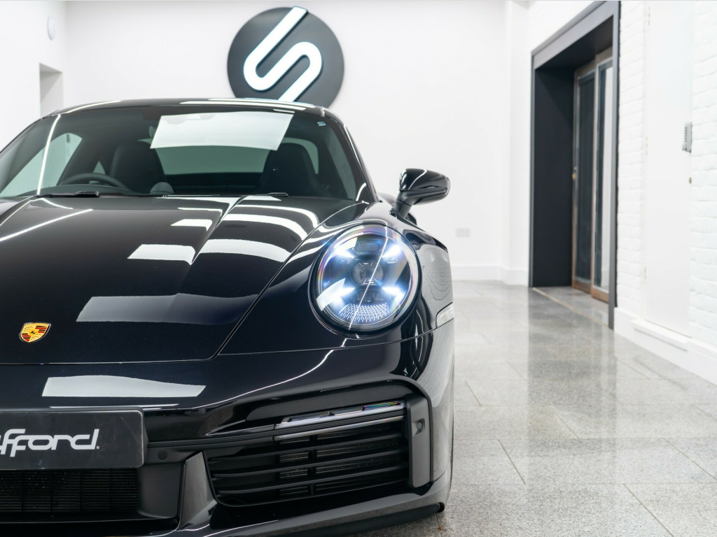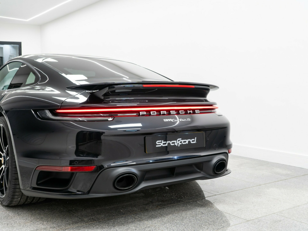 Available for home delivery in our enclosed trailer or collection from our Brighton HQ is this 2023 Porsche 911 992 Turbo S finished in Jet Black Metallic and covering 11000 miles.With a new 992.2 Turbo S starting life at £199,100 before options, this lightly used car offers a great saving against list.As standard the 992 Turbo S is very well equipped, featuring - BOSE sound - Porsche Ceramic Composite Brake (PCCB)- Rear axle steering- Sport Chrono package incl. mode switch- Porsche Active Suspension Management (PASM)- Porsche Dynamic Chassis Control (PDCC)- Porsche Active Aerodynamics (PAA)- Exterior mirror lower trims in exterior colour- Porsche Dynamic Light System Plus (PDLS Plus)- Electric folding exterior mirrors incl. courtesy lighting- Cruise control- ParkAssist front and rear including reversing camera- Porsche Vehicle Tracking System (PVTS)In addition this particular example features the following individual cost options: - Sports exhaust system (tailpipes in Black) (£2179)- Front axle lift system (£1708)- Electric slide/tilt glass sunroof (£1591)- Porsche Entry and Drive (£387)- Privacy Glass (£387)- Tinted LED Main Headlights with Matrix Beam (£433)Benefiting from the remainder of its Porsche manufacturer warranty this vehicle is covered until early 2026.With the vehicle comes its two keys, book packs, a clear HPI report and a V5C logbook showing 2 former keepers.Low-rate finance available subject to underwriting and part exchange is welcome.