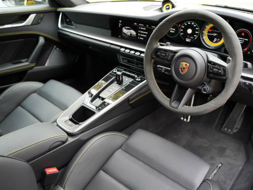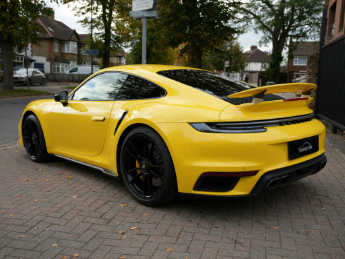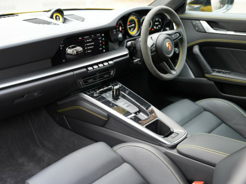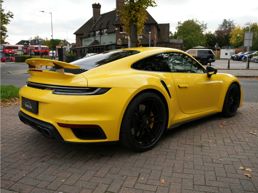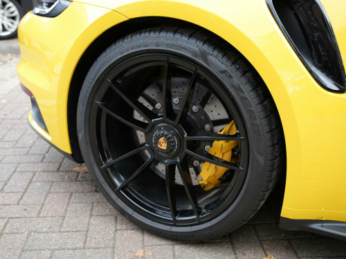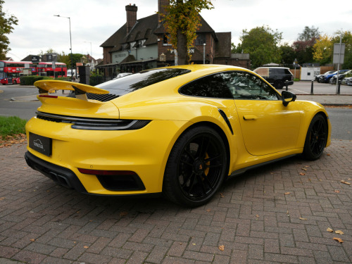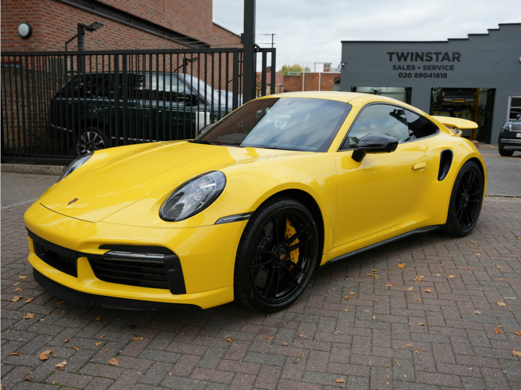 Racing Yellow With Black Leather /Yellow Stitching, Full Paint Protection Film Carried Out By Topaz, PDLS Plus Tinted, MATRIX LED Headlights, Sports Chrono, Sports Exhaust In Black, Front Axle Lift, Surround Camera, Park Assist, 18 Way Electric Seats, Memory Package, Ventilated Seats, PASM, PDCC, Rev Counter Yellow, Burmester Sound System, Porsche Ceramic Brakes, Exclusive Tail Lights, Lane Assist, Rear Axle Steering, Heated Multi Func Steering Wheel In Race Tex, Power Steering Plus, Privacy Glass, Rear Intakes Painted, Side Trims Painted, 20/21'' Alloys, 1 Owner From New, Serviced In June 2025, Please Call For More Details Or To Arrange Finance / Viewing. Twinstar - Preston Road - Wembley - HA9 8NF - 0208 904 1818 usb-c ports in centre console main storage compartment lid - 12v socket in passenger footwell, bose surround sound system, digital radio, eu ecall emergency system, pcm - porsche communication management - include navigation, porsche connect online navigation, smartphone integration - apple carplay and android auto, 20in front 21in rear alloy wheels - 911 turbo s, automatically dimming interior and exterior mirrors with integrated rain sensor, dual front light units with position lights - direction indicators - side indicator lights - all built on led technology, engine compartment cover grille with vertical slats in silver colour - high-gloss, exterior mirror lower trim in exterior colour, exterior mirrors on door waist rails - electrically adjustable and heatable - aspherical on drivers side, forged alloy wheels with central locking in two-tone look - wheel hub cover with coloured porsche crest, front apron with side air intakes - active cooling air flaps and air blades in black, green tinted thermally insulated glass, heated rear screen, intelligent lightweight construction in aluminium-steel-composite construction, memory function - both exterior mirrors - steering column and drivers seat position as well as other personalised in-car settings, model designation on rear trim in light silver, porsche lettering integrated in taillight strip, power windows with one-touch operation and door seal protection function, rear apron and rear apron lower section with integrated tailpipe trims and intercooler, rear side panel air intakes for the engine, retractable door handles, side air intakes at the front with active cooling air flaps and air blades in black, side skirt trim in black, side window trim strips in black, taillight strip including integrated parking lights and rear fog light, two twin-tailpipe trims in 911 turbo design - polished stainless steel, tyre repair kit, adaptive sports seats plus -18-way- featuring electric adjustment of all seat functions including seat side bolsters, ascending centre console with storage compartment, clothes hooks on seat backrests, door handles - trim strips on dashboard - door panels and centre console in light silver - decorative inlays in matt carbon, door sill guards in brushed aluminium with model designation, electric adjustment of backrest angle - seat height fore-aft position - squab angle and length of the seat cushion - lumbar support, embossed leather on front seat centres - front side bolsters - front seat head restraints, floor mats, gt sport steering wheel in leather, glove compartment - lockable and storage compartment in each door, illuminated vanity mirrors in sun visors - driver and passenger sides, instrument cluster with central analogue rev counter - two 7in tft display, interior led lighting - reading lights - orientation - ignition lock - luggage compartment - footwell - glove compartment and door lighting, keyless drive, luggage compartment - front, multifunction steering wheel with shift paddles and manual height-reach adjustment, pdk gear selector with automatic mode - manual gear selection via shift paddles on the steering wheel, particle-pollen filter with active carbon filter, roof lining and a-b-c pillar trims in race-tex, seats - heated front, seats - split-folding rear, storage compartment in each door, two individual cupholders, two-zone automatic climate control, windscreen washer system with aero wiper blades and washer jets, automatic headlight activation including welcome home lighting, led matrix headlights including porsche dynamic light system plus, three-dimensional led taillights and integral third brake light, cruise control, digital display for selected gear in rev counter, electromechanical power steering with variable steering ratio and steering pulse generator, engine water cooled with thermal management, mcpherson - front axle with anti-roll bar, multi-link rear axle with anti-roll bar, pasm - porsche active suspension management, pccb - porsche ceramic composite brakes - calipers with yellow finish, parkassist - front and rear with reversing camera, porsche active aerodynamics - paa with active front spoiler active cooling air intake flaps and active rear wing, porsche wet mode, rear axle steering, sport chrono clock with distinguishable display, sport chrono package, tyre pressure monitoring - tpm, variocam plus, electric parking brake, engine immobiliser, full-size airbags for driver and front passenger, isofix child seat mounting points on front passenger seat, pdcc - porsche dynamic chassis control, ptm - porsche traction management, ptv plus - porsche torque vectoring plus, pvts - porsche vehicle tracking system, porsche side impact protection - posip, porsche stability management - psm including abs with extended brake functions, preparation for porsche dashcam, remote control for central locking and luggage compartment lid release, stationary management with hold function, warn and brake assist including pedestrian protection