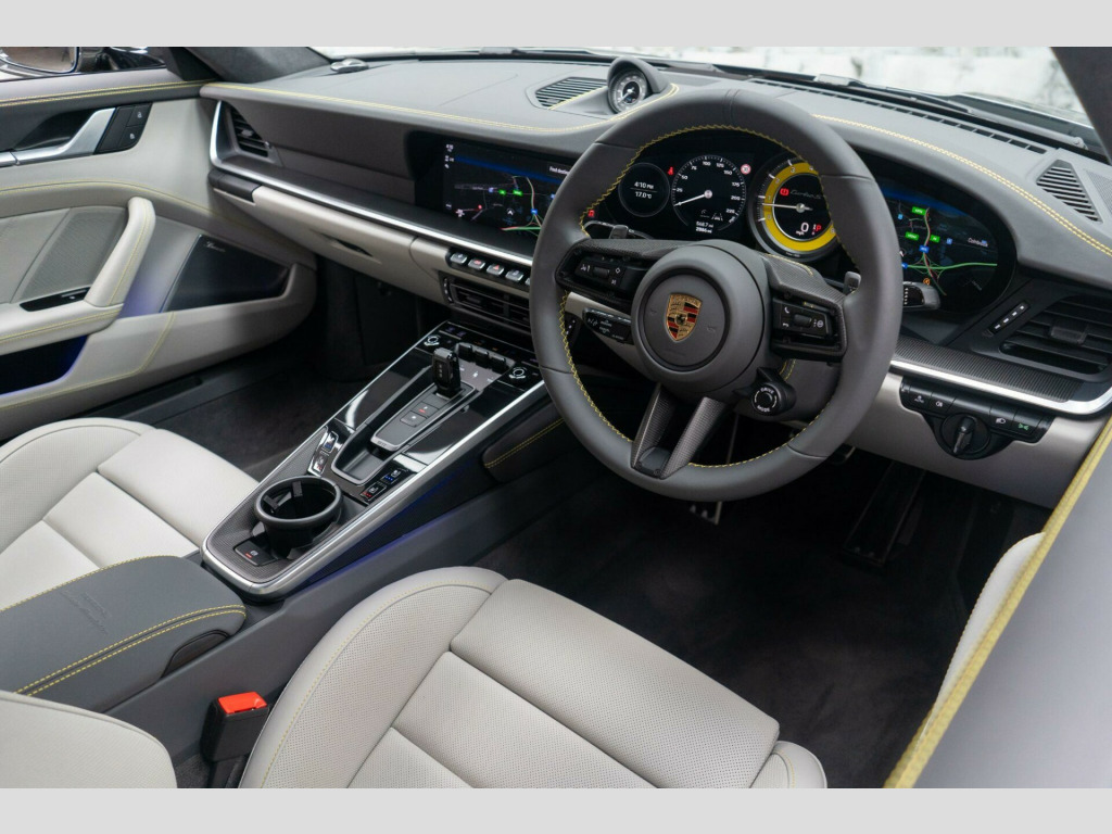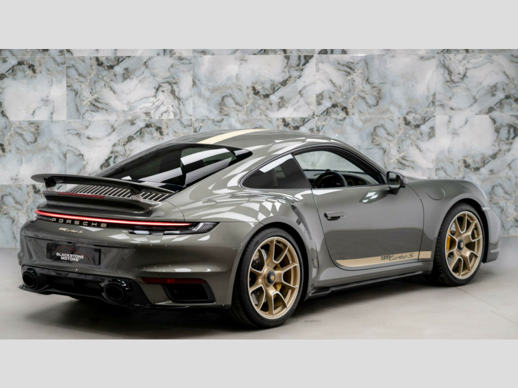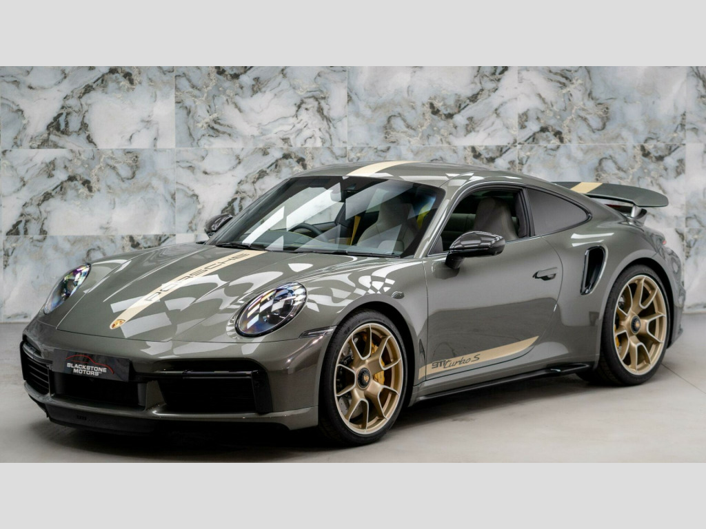 This particular example is finished in Aventurine Green metallic Paintwork with Two-Tone Exclusive Manufaktur leather in Slate Grey. It benefits with a FULL Porsche service history and is still under manufacturers warranty until June 2026. The paintwork has been protected by XPEL PPF Paint Protection Film.The high specification of this Porsche includes:- Burmester High-End Surround Sound System- Sports Exhaust System with Tailpipes in Black- Exclusive Manufaktur Extended Leather Trim Package- Seat Ventilation - Front- Wheels Painted in Satin Aurum- Tinted LED Main Headlights with Matrix Beam including Porsche Dynamic Light System Plus - PDLS Plus- Interior Trim Package with Decorative Stitching in Contrasting Colour- Heated Multifunction GT Sports Steering Wheel Leather with Matt Carbon Panel- 20in Front 21in Rear Alloy Wheels - 911 Turbo S Exclusive Design Wheels- ParkAssist System including Surround View- Lane Keep Assist including Speed Limit Indicator- Porsche Entry- Privacy Glass- Exterior Mirror Upper Trims in Carbon- Rev Counter in Racing Yellow- Exclusive Design Tail Light- Cupholder Trim Leather- Motorsport Decorative Sticker Set in Aurum- Decorative PORSCHE Side Logo in Aurum- Side Model Logo in Aurum8.9% Low rate finance packages available, HP available, LP available, ****Apply for finance on our website for an instant decision****, 5 days driveway insurance available.Take advantage of our full bespoke in house detailing package to suit your needs, inclusive of Paint Protection Film (XPEL), Paint Correction, Nano Ceramic Coating, Trackers, Immobilisers and Bodykits. All of our work can be found on our social media Instagram blackstonemotorsuk & limitlessdetailinguk rmester high-end surround sound system, sports exhaust system with tailpipes in black, exclusive manufaktur extended leather trim package, seat ventilation - front, wheels painted in satin aurum, tinted led main headlights with matrix beam including porsche dynamic light system plus - pdls plus, interior trim package with decorative stitching in contrasting colour, heated multifunction gt sports steering wheel leather with matt carbon panel, 20in front 21in rear alloy wheels - 911 turbo s exclusive design wheels, parkassist system including surround view, lane keep assist including speed limit indicator, porsche entry, privacy glass, exterior mirror upper trims in carbon, rev counter in racing yellow, exclusive design tail light, cupholder trim leather, motorsport decorative sticker set in aurum, decorative porsche side logo in aurum, side model logo in aurum, 2 usb-c ports in centre console main storage compartment lid - 12v socket in passenger footwell, 20in front 21in rear alloy wheels - 911 turbo s, adaptive sports seats plus -18-way- featuring electric adjustment of all seat functions including seat side bolsters, ascending centre console with storage compartment, automatic headlight activation including welcome home lighting, automatically dimming interior and exterior mirrors with integrated rain sensor, bose surround sound system, clothes hooks on seat backrests, cruise control, digital display for selected gear in rev counter, digital radio, door handles - trim strips on dashboard - door panels and centre console in light silver - decorative inlays in diamar darksilver, door sill guards in brushed aluminium with model designation, dual front light units with position lights - direction indicators - side indicator lights - all built on led technology, eu ecall emergency system, electric adjustment of backrest angle - seat height fore-aft position - squab angle and length of the seat cushion - lumbar support, electric parking brake, electromechanical power steering with variable steering ratio and steering pulse generator, embossed leather on front seat centres - front side bolsters - front seat head restraints, engine compartment cover grille with vertical slats in silver colour - high-gloss, engine immobiliser, engine water cooled with thermal management, exterior mirror lower trim in exterior colour, exterior mirrors on door waist rails - electrically adjustable and heatable - aspherical on drivers side, floor mats, forged alloy wheels with central locking in two-tone look - wheel hub cover with coloured porsche crest, front apron with side air intakes - active cooling air flaps and air blades in black, full-size airbags for driver and front passenger, glove compartment - lockable and storage compartment in each door, green tinted thermally insulated glass, heated rear screen, isofix child seat mounting points on front passenger seat, illuminated vanity mirrors in sun visors - driver and passenger sides, instrument cluster with central analogue rev counter - two 7in tft display, intelligent lightweight construction in aluminium-steel-composite construction, interior led lighting - reading lights - orientation - ignition lock - luggage compartment - footwell - glove compartment and door lighting, keyless go, led matrix headlights including porsche dynamic light system plus, luggage compartment - front, mcpherson - front axle with anti-roll bar, memory function - both exterior mirrors - steering column and drivers seat position as well as other personalised in-car settings, model designation on rear trim in light silver, multi-link rear axle with anti-roll bar, multifunction steering wheel with shift paddles and manual height-reach adjustment, pasm - porsche active suspension management, pccb - porsche ceramic composite brakes - calipers with yellow finish, pcm - porsche communication management - include navigation, pdcc - porsche dynamic chassis control, pdk gear selector with automatic mode - manual gear selection via shift paddles on the steering wheel, porsche lettering integrated in taillight strip, ptm - porsche traction management, ptv plus - porsche torque vectoring plus, pvts - porsche vehicle tracking system, parkassist - front and rear with reversing camera, particle-pollen filter with active car