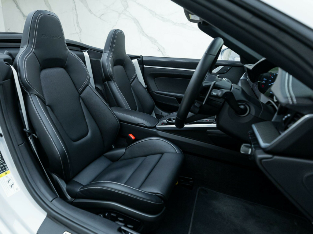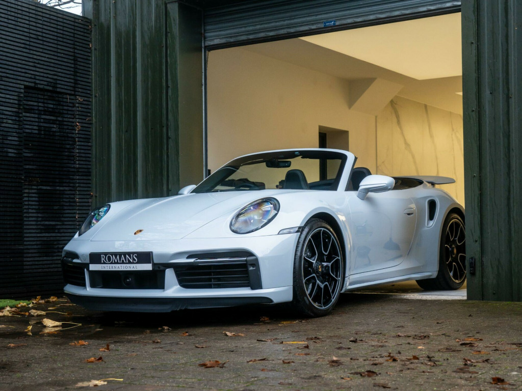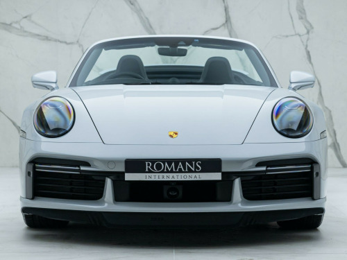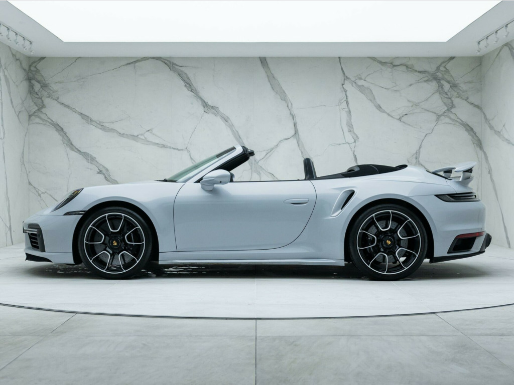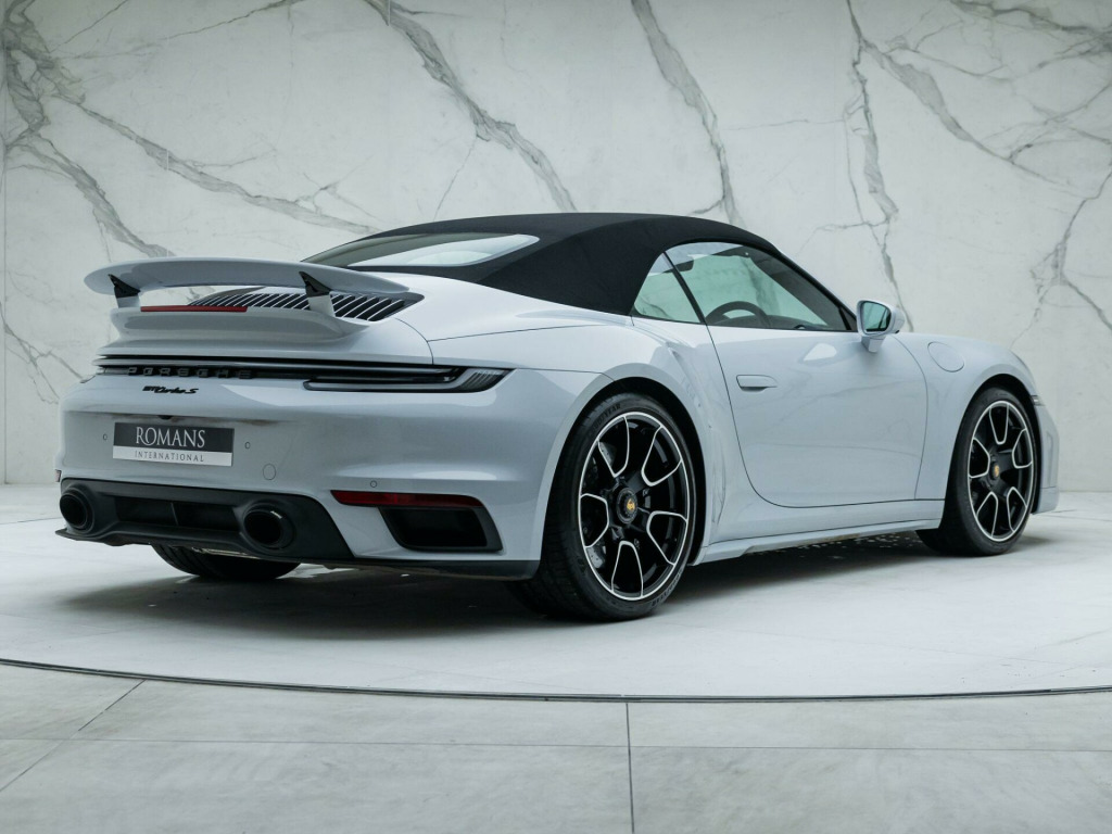 Finished in Ice Grey Metallic Paint with Black Leather - Desirably Equipped with Akrapovic Exhaust (£5,292) & Front Axle Lift System - Porsche Manufacturer’s Warranty until March 2028 - UK SuppliedOptional Extras:20/21-Inch 911 Turbo S Exclusive Design Wheels Painted in High-Gloss BlackIce Grey Metallic PaintAkrapovic ExhaustFront Axle Lift SystemTinted LED Main Headlights with Matrix Beam including Porsche Dynamic Light System Plus (PDLS Plus)Front Seat VentilationParkAssist including Surround ViewAdaptive Cruise ControlLane Change AssistLane Keep Assist including Speed Limit IndicatorHeated Leather GT Sports Steering WheelPorsche Design Subsecond ClockExclusive Design TaillightsExclusive Design Fuel Filler Cap'PORSCHE' Logo LED Door Courtesy LightsIlluminated Door Sill Guards in Brushed Aluminium in DarksilverDashboard & Door Trim Package in LeatherCrayon Seat BeltsConvertible Top in BlackRear Side Air Intakes Painted in Exterior ColourSide Skirts Painted in Exterior ColourMirror Bases Painted in Exterior ColourModel Designation Painted in High-Gloss Black'PORSCHE' Logo Painted in High-Gloss BlackHigh-Gloss Black Brake CalipersStandard Features:Cruise ControlHeated Front SeatsKeyless GoPorsche Ceramic Composite Brakes (PCCB)Porsche Communication Management (PCM) Including Online Navigation ModulePorsche Dynamic Chassis Control (PDCC)Sport Chrono Package with Mode SwitchSmartphone Integration including AppleCarplay and Android AutoTyre Pressure & Temperature Display. 20/21-Inch 911 Turbo S Exclusive Design Wheels Painted in High-Gloss Black, Ice Grey Metallic Paint, Akrapovic Exhaust, Front Axle Lift System, Tinted LED Main Headlights with Matrix Beam including Porsche Dynamic Light System Plus (PDLS Plus), Front Seat Ventilation, ParkAssist including Surround View, Adaptive Cruise Control, Lane Change Assist, Lane Keep Assist including Speed Limit Indicator, Heated Leather GT Sports Steering Wheel, Porsche Design Subsecond Clock, Exclusive Design Taillights, Exclusive Design Fuel Filler Cap, 'PORSCHE' Logo LED Door Courtesy Lights, Illuminated Door Sill Guards in Brushed Aluminium in Darksilver, Dashboard & Door Trim Package in Leather, Crayon Seat Belts, Convertible Top in Black, Rear Side Air Intakes Painted in Exterior Colour, Side Skirts Painted in Exterior Colour, Mirror Bases Painted in Exterior Colour, Model Designation Painted in High-Gloss Black, 'PORSCHE' Logo Painted in High-Gloss Black, High-Gloss Black Brake Calipers.