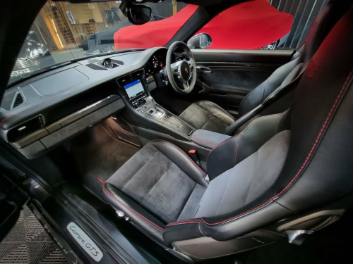 Stunning Porsche 911 991.1 GTS and incredible sounding due to being one of the last of the naturally aspirated Porsche's. This beautiful example is presented in stunning combination of Metallic Agate Grey (£801) with Full Alcantara GTS interior pack (£2234), the wonderful specification continues with a full Alcantara sport design steering wheel, Alcantara roof lining, extended leather dashboard, 4 way electrical Sport Design seats with Carmine Red GTS emblem embroidered on the headrests with Carmine Red stitching, a wonderful feature that continues throughout the leather dashboard and complemented by Carmine Red Pinstripe Seatbelts, Carmine Red instrument cluster and Carbon Fibre Interior Pack (Door panel trim, Centre console and dashboard trim). The spectacular specification continues with Sports Chrono +, Porsche Active suspension Management (PASM £558), Reversing Camera (£1085), Front and Rear Park assist, Xenon Porsche Dynamic Lighting Plus (PDSL+), Active Sports Exhaust, Dynamic Engine Mounts, Sport Design exterior mirrors, Heated Seats (£320), X51 Power Kit, Black Headlight Surround, Privacy glazing, Sport Design Front Apron, Satellite Navigation, along with 20 inch Turbo S Alloy Wheels in Satin Black with centre caps. With the GTS, everything is about sports, so there is no need for unnecessary weight. Details such as the minimalist 'Sport Design' three spoke steering wheel and the race style Sports Plus seats, further enha Telephone Module, PASM Sport Suspension - 20mm Lower, Headlights - Full LED inc PDLS + Porsche, Reversing Camera Including Park Assist F, Agate Grey, Interior Package - Carbon with Leather I, Interior Package - GTS, Seats - Heated Front, Sports Seats Plus - Electrical 4 Way, Carbon Centre Console Trim, Privacy Glass, 12-Volt Socket in Passenger Footwell, 12v Socket - Storage Bin Centre Console, 12v Socket Outlet in Glove Compartment, 20in Alloy Wheels - 911 Turbo S - Black, 7in TFT Touchscreen, ABD - Automatic Brake Differential, ABS - Anti-lock Brake System, ASR - Anti Slip Regulation, Airbag - Driver, Airbag - Head, Airbag - Passenger, Airbag - Thorax in Seat Side Bolsters, Alarm System, A