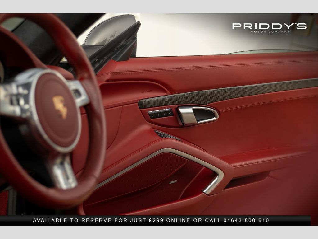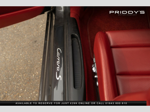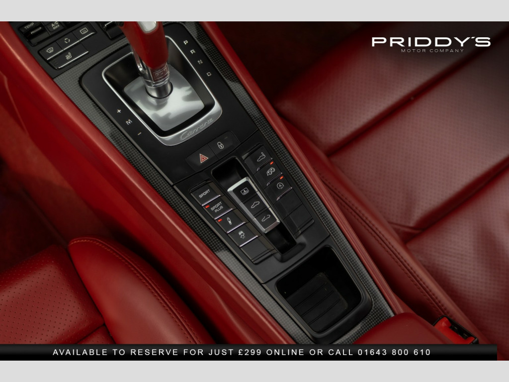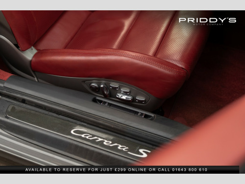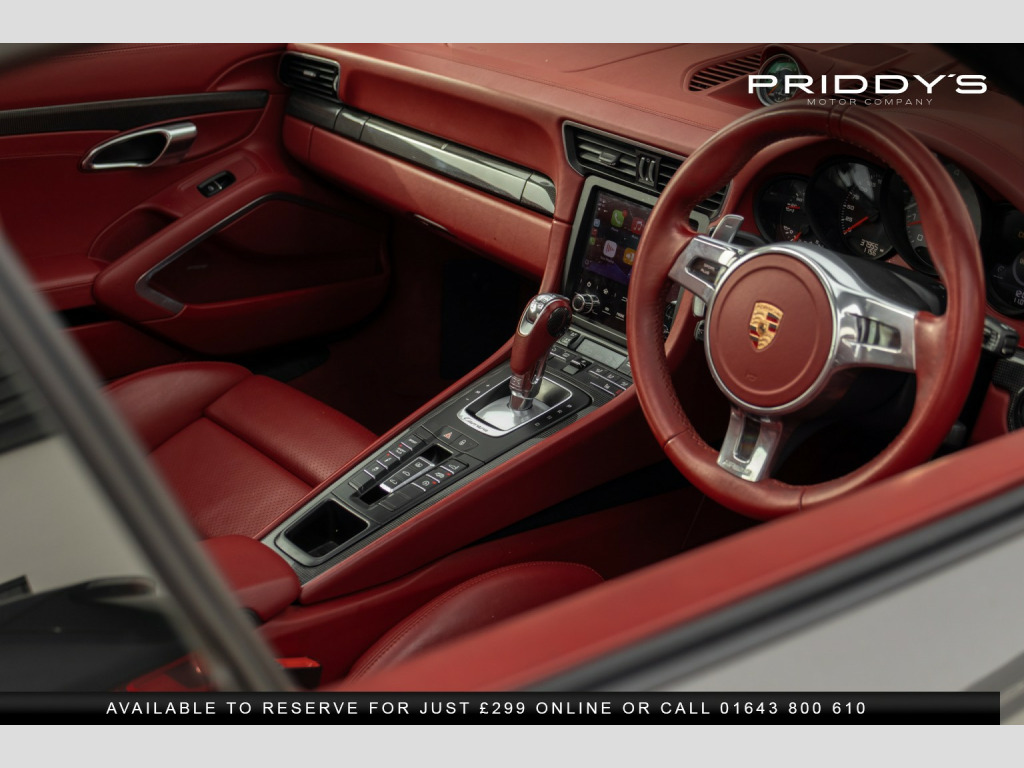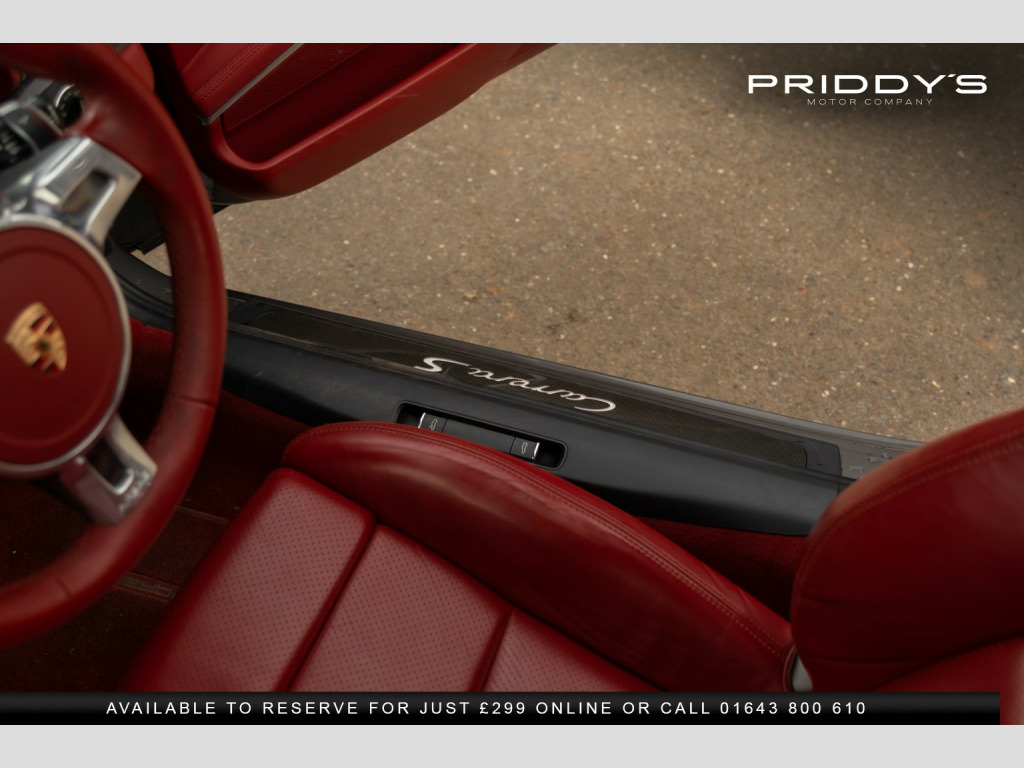 ** This vehicle has recently passed our meticulous pre-purchase inspection and has now arrived on site, where it has undergone a second detailed assessment and extended test drive. The photographs capture the car exactly as it arrived — already presenting beautifully, as only the finest examples ever make it into our selection. It is now undergoing final preparation behind the scenes and will require only light finishing touches before being ready for handover. Given its superb condition and desirability, we recommend reserving early to secure it ahead of other discerning buyers **, , , , Priddys Motor Company are proud to present this Porsche 911 3.8 Carrera S PDK, registered 26th April 2013 and showing just 37,988 miles. , Well start where it deserves to start — the specification and the cabin. , Deep red extended leather, carried properly across the seats, dashboard and door cards. Not a token option, but a full, rich interior that completely changes the feel of the car. Against the metallic grey exterior it works beautifully — restrained on the outside, confident within. Carbon interior package, carbon centre console trim and a black Alcantara headliner give it the right amount of edge without tipping into excess. The 18-way Adaptive Sports Seats Plus with memory hold you perfectly and feel every bit the flagship option they were. , This car was specified with intent when new, carrying over £18,000 of factory options. Sport Chrono, sports exhaust, SportDesign front apron, 20-inch Carrera Classic wheels, BOSE surround sound, ParkAssist with reverse camera, panoramic slide and tilt roof, heated seats, cruise control, Power Steering Plus and more. It strikes the balance a Carrera S should — focused, but still refined and usable. , The 3.8-litre naturally aspirated flat-six produces 400hp, delivered through Porsches PDK transmission. In normal driving it is smooth and composed. Select Sport or Sport Plus and it tightens immediately — sharper shifts, firmer control and the sports exhaust opening to deliver that clean, mechanical tone only a naturally aspirated 911 produces. It feels engineered, not exaggerated. , The panoramic roof slides neatly back above the rear screen, preserving the 911 profile while bringing light into that deep red cabin. A small detail, but executed exactly as Porsche intended. , Mechanically, this example is reassuring. Early servicing within the Porsche main dealer network:, , 30/04/2015 – 3,574 miles – Porsche Main Dealer – Oil service, 14/06/2017 – 10,793 miles – Porsche Main Dealer – Major service, 08/07/2019 – 13,171 miles – Porsche Main Dealer – Oil service, 16/08/2021 – 13,491 miles – Porsche Main Dealer – Oil service, , As the car matured, it was maintained by respected marque specialist Dorset Sports Cars:, , 10/07/2023 – 15,614 miles – Oil service, 12/07/2024 – 25,829 miles – Oil service, 24/03/2025 – 31,731 miles – Oil, air filter, PDK transmission oil and brake fluid, , Most recently, on 16/02/2026 at its current mileage it has received a full mechanical inspection with ourselves. , The progression is consistent. The care is evident. It reads exactly how a well-kept Carrera S should. , It sits on Michelin Pilot Sport Cup 2 tyres all round, replaced in 2024. Brake discs present superbly, with pads measuring approximately 9mm front and 8mm rear — strong and ready. , CO₂ is 205 g/km. , A properly specified 991 Carrera S has a certain presence — not loud, not forced, simply correct. This one has the colour combination, the option list and the service record to back it up. , It is refined when you want it to be, focused when you ask it to be, and every inch a 911 throughout. , , Why Buy from Priddys Motor Company, , , Excellence isnt optional — its standard.