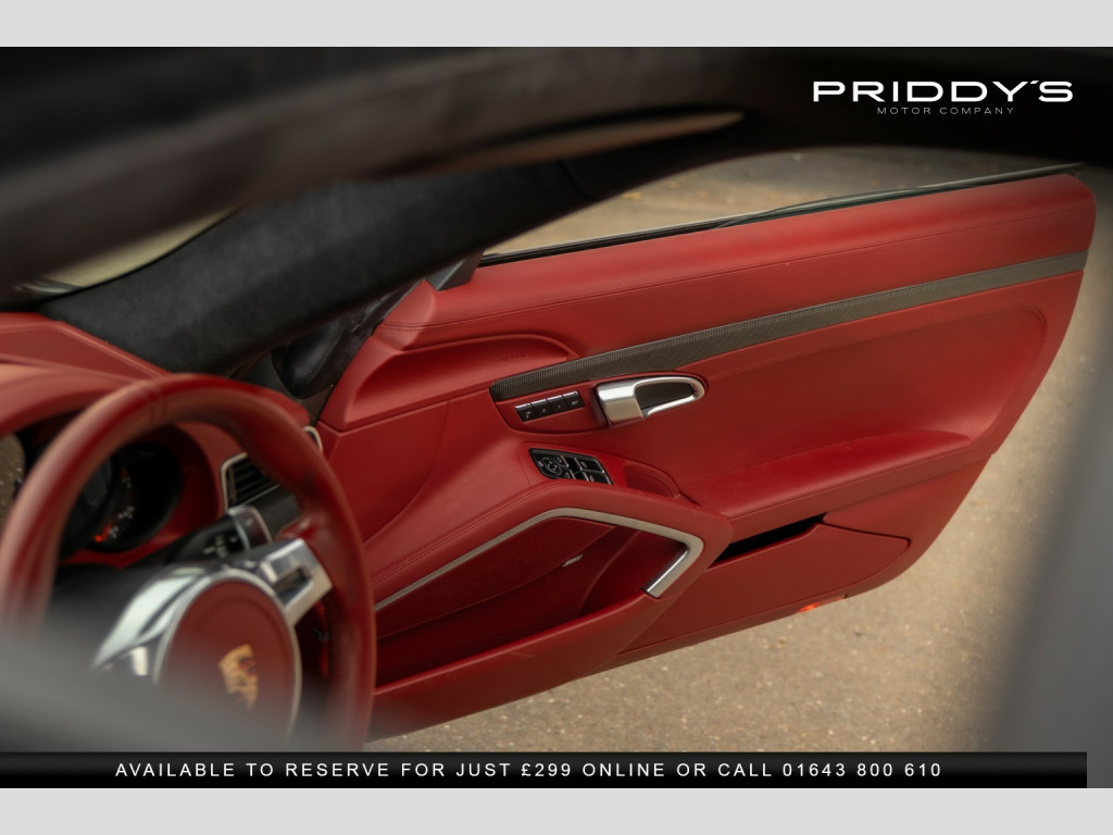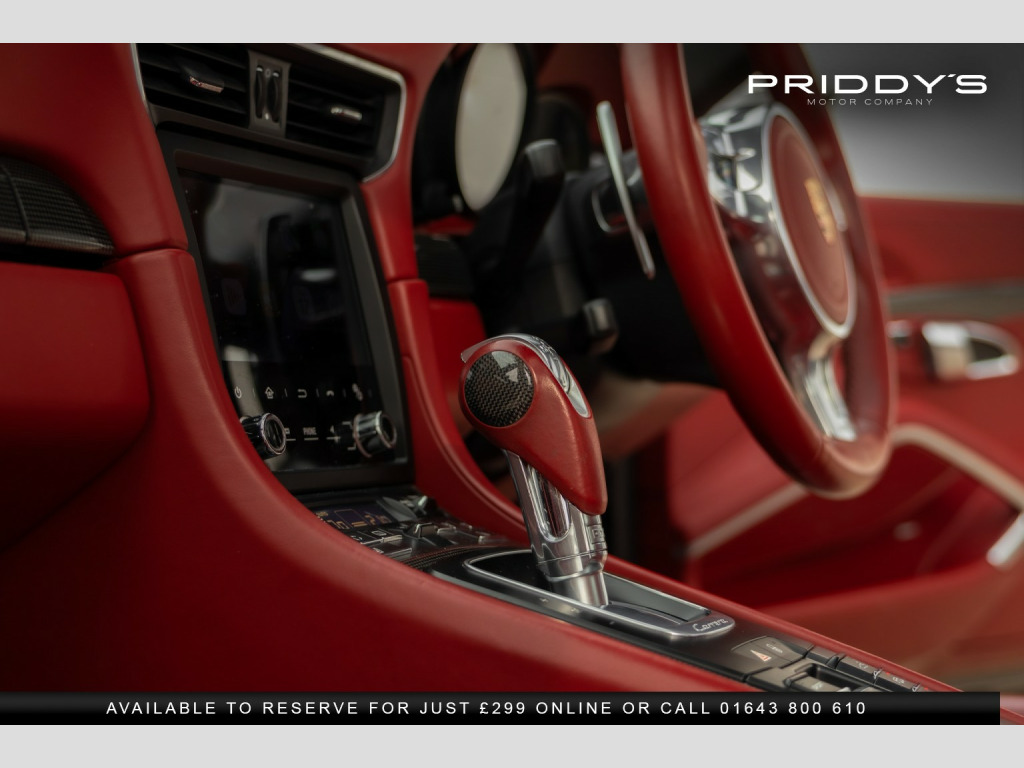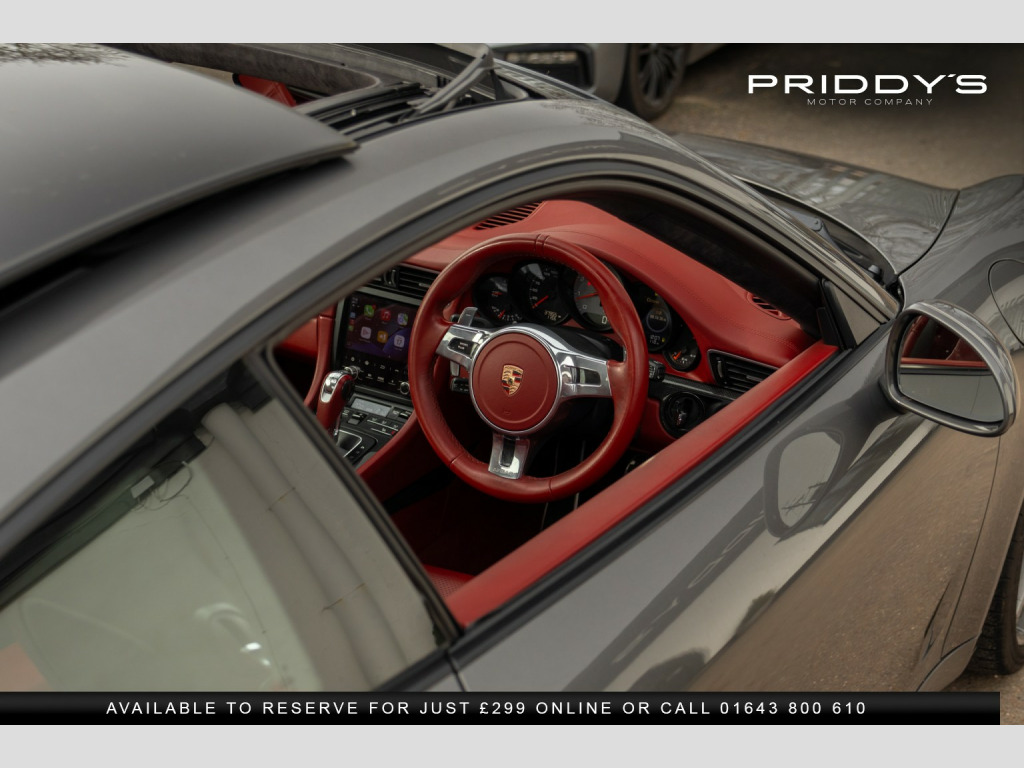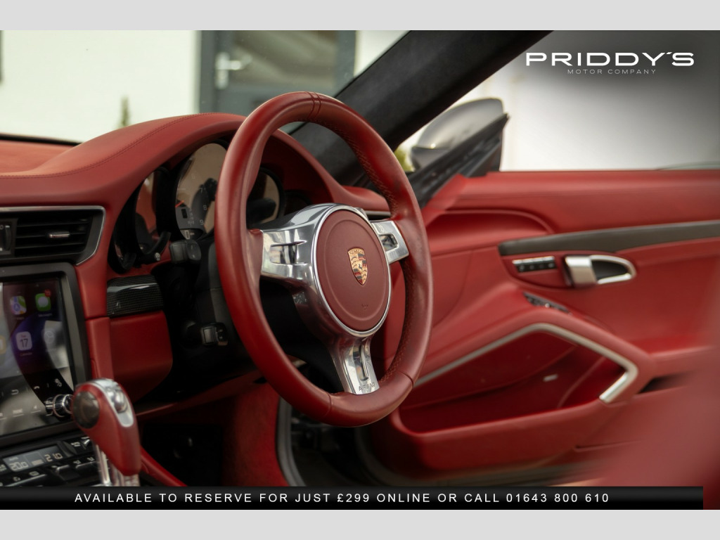 ** This vehicle has recently passed our meticulous pre-purchase inspection and has now arrived on site, where it has undergone a second detailed assessment and extended test drive. The photographs capture the car exactly as it arrived — already presenting beautifully, as only the finest examples ever make it into our selection. It is now undergoing final preparation behind the scenes and will require only light finishing touches before being ready for handover. Given its superb condition and desirability, we recommend reserving early to secure it ahead of other discerning buyers **, , , , Priddys Motor Company are proud to present this Porsche 911 3.8 Carrera S PDK, registered 26th April 2013 and showing just 37,988 miles. , Well start where it deserves to start — the specification and the cabin. , Deep red extended leather, carried properly across the seats, dashboard and door cards. Not a token option, but a full, rich interior that completely changes the feel of the car. Against the metallic grey exterior it works beautifully — restrained on the outside, confident within. Carbon interior package, carbon centre console trim and a black Alcantara headliner give it the right amount of edge without tipping into excess. The 18-way Adaptive Sports Seats Plus with memory hold you perfectly and feel every bit the flagship option they were. , This car was specified with intent when new, carrying over £18,000 of factory options. Sport Chrono, sports exhaust, SportDesign front apron, 20-inch Carrera Classic wheels, BOSE surround sound, ParkAssist with reverse camera, panoramic slide and tilt roof, heated seats, cruise control, Power Steering Plus and more. It strikes the balance a Carrera S should — focused, but still refined and usable. , The 3.8-litre naturally aspirated flat-six produces 400hp, delivered through Porsches PDK transmission. In normal driving it is smooth and composed. Select Sport or Sport Plus and it tightens immediately — sharper shifts, firmer control and the sports exhaust opening to deliver that clean, mechanical tone only a naturally aspirated 911 produces. It feels engineered, not exaggerated. , The panoramic roof slides neatly back above the rear screen, preserving the 911 profile while bringing light into that deep red cabin. A small detail, but executed exactly as Porsche intended. , Mechanically, this example is reassuring. Early servicing within the Porsche main dealer network:, , 30/04/2015 – 3,574 miles – Porsche Main Dealer – Oil service, 14/06/2017 – 10,793 miles – Porsche Main Dealer – Major service, 08/07/2019 – 13,171 miles – Porsche Main Dealer – Oil service, 16/08/2021 – 13,491 miles – Porsche Main Dealer – Oil service, , As the car matured, it was maintained by respected marque specialist Dorset Sports Cars:, , 10/07/2023 – 15,614 miles – Oil service, 12/07/2024 – 25,829 miles – Oil service, 24/03/2025 – 31,731 miles – Oil, air filter, PDK transmission oil and brake fluid, , Most recently, on 16/02/2026 at its current mileage it has received a full mechanical inspection with ourselves. , The progression is consistent. The care is evident. It reads exactly how a well-kept Carrera S should. , It sits on Michelin Pilot Sport Cup 2 tyres all round, replaced in 2024. Brake discs present superbly, with pads measuring approximately 9mm front and 8mm rear — strong and ready. , CO₂ is 205 g/km. , A properly specified 991 Carrera S has a certain presence — not loud, not forced, simply correct. This one has the colour combination, the option list and the service record to back it up. , It is refined when you want it to be, focused when you ask it to be, and every inch a 911 throughout. , , Why Buy from Priddys Motor Company, , , Excellence isnt optional — its standard.