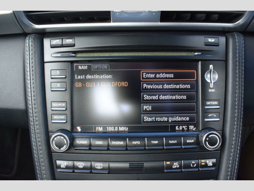 . Adjustable Steering Column/Wheel, Air Bag Driver, Air Bag Passenger, Air-Conditioning (Automatic), Alarm, Alloy Wheels (19in), Anti-Lock Brakes, Body Coloured Bumpers, Central Door Locking, Centre Console, Chassis, Clock, Computer (Driver Information System), Cup Holder, Electric Windows (Front), Electronic Stability Programme, Exterior Lighting (Xenon Headlights), External Temperature Display, Extra Storage, Gear Knob Leather, Head Restraints, Headlight Elevation, Heated Rear Screen, Immobiliser, In Car Entertainment (Radio/CD/MP3/DVD), Mirrors External, Porsche Active Suspension Management: 10mm Lowered, Power-Assisted Steering, Seat - ISOFIX Anchorage Point, Seat Belt Pre-Tensioners, Seat Height Adjustment, Seat Lumbar Support (Driver/Passenger Electric), Seats Electric (Driver/Passenger), Seats Split Rear, Spare Wheel, Speakers, Steering Wheel Leather, Third Brake Light, Traction Control System, Trip Computer, Upholstery Leather, Washer Jets.