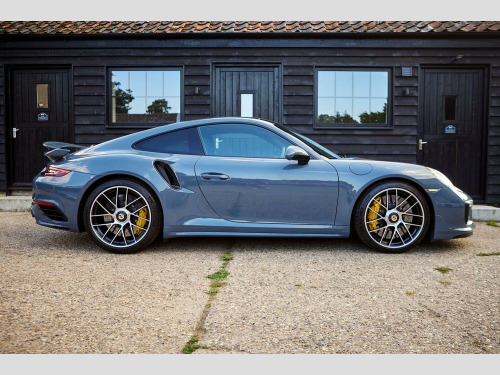 Gorgeous Graphite Blue Turbo S with huge spec, full Porsche main agent service history and just 2 owners from new. , Presented in fantastic condition with comprehensive PPF protection from new, plus recent big service at Porsche, , These really are an everyday supercar with a sub 3 second sprint to 60 and can continue to beyond 200 MPH!, , A new 992 with a similar specification would be close to twice this price , Graphite Blue alone would be a £10K+ option!, , Factory specified with the following options, , Vehicle Identification No. WP0ZZZ99ZJS152135, Model Turbo S 991T , Date of production 21.02.2018, Year 2018, Sales type 991451, Engine Code DBCA, Transmission Code CG160, Axle drive 7C, Equipment AZ, Roof color A7, Carpet color code A75, Exterior color / Paint Code A7 / , , 261 Electrically retractable exterior mirrors with automatic dimming and memory, 264 Left exterior mirror glass, convex, 285 Right exterior mirror glass, aspherical, XXD Door entry guards, carbon, illuminated, 638 ParkAssist, front, rear and reversing camera, UI2 2 X USB/IPOD interface, 340 Wheel rims painted in basic colour, 7I2 VTS security package (with PCC), 170 Acoustic package RoW, 456 Automatic distance control (ACC), 594 Alcantara rooflining, XEY LED headlights, dynamic Cornering light, 276 Automatic anti-dazzle interior mirror, QR5 Sport Chrono Package Plus, KK3 Refrigerant R1234yf, 632 PDLS+ dynamic high beam, XLL GT sports steering wheel, Alcantara, 656 Steering column with electric reach/ height adjustment and memory, 153 Middle radiator, 7UG Navigation device, High, 449 911 Turbo Sport 3 20 wheel, I8L Premium radio (2nd gen.), 583 Smoker package, UX7 TPM valve, Black, ER1 Regional code ECE for radio, 022 Black-coloured instrument dials, instrument cluster, 025 Black-coloured instrument dials, stopwatch, 061 Version for Great Britain, 070 Pedestrian protection, 071 EU country version, 092 Turbo S, 099 Right-hand drive version, 130 Control and indications in English lettering, 140 Dynamic engine mounts (PADM), 196 Battery, 80 Ah, 211 Licence plate holder version 3, 221 PTV Plus, el. controlled rear-diff. lock, 250 PDK transmission (dual clutch), 268 Rain sensor, 288 Headlamp washer, 323 Sports seat Plus, left, electrical, 18-way, 324 Sports seat Plus, right, electrical, 18-way, 335 Automatic seat belt, 3-point, rear, 352 Electronic damper control for PASM and PDCC, 426 Without rear window wiper, 450 Ceramic brake (PCCB), 466 Rear fog light, right, 470 Rear-axle steering, 478 Central wheel lock, 482 Tire Pressure Monitoring TPM, 433 MHz, 489 Multi-function operation + steering wheel heating, 492 Headlights for left-hand traffic, 493 Balance weights, Black, 521 Tilt sensor, 528 Door mirror, standard, 534 Theft security system, 433 MHz, 536-07 Alarm siren and tilt sensor 08- Alarm siren, 538 Seat position control for comfort seat, right, 555 Black seat belts, 567 Windscreen tinted, upper part darker coloured, 573 Air conditioner, 581 Centre console, front, 605 LED daytime driving lights, 621 12-V socket, passengers side, footwell, 630 Interior light package, 653 External-sliding glass sunroof, 658 Servotronic, 685 Rear seat assembly, 810 foot mats, 936 Seat covers, rear, leather, 981 Leather equipment, without seat covers, 983 Seat covers, front, leather, 991 Steering wheel airbag module in leather, 9VJ Burmeister High-End sound system, XAF Turbo aerokit, XAJ Painted sill covers, XES Preparation, illuminated door entry guard, XGB Decorative dashboard trim, carbon, XHM Centre console trim, carbon, XSC Porsche Crest embossed in headrest, XYB Fuel tank cap in Aluminium Look, XLN PDK selector lever, Alcantara, XXP Tail lights, darkened, XPL Privacy glazing, 342 Seat heating, left/right seat, 642 Start/Stop function, QH1 Voice control, 523 Immobiliser, 434 MHz, XWC Door panel trim in carbon, QV3 Digital radio reception (DAB), 9ZC Telephone module with connection box