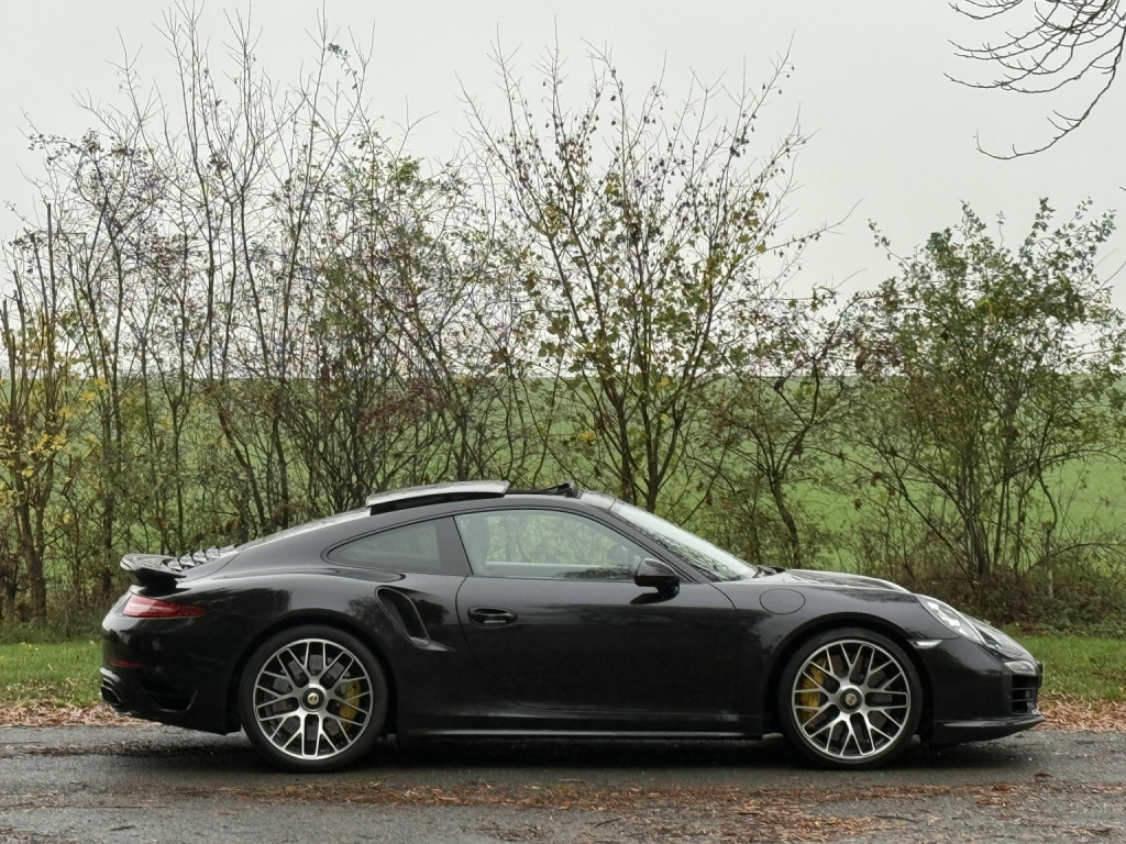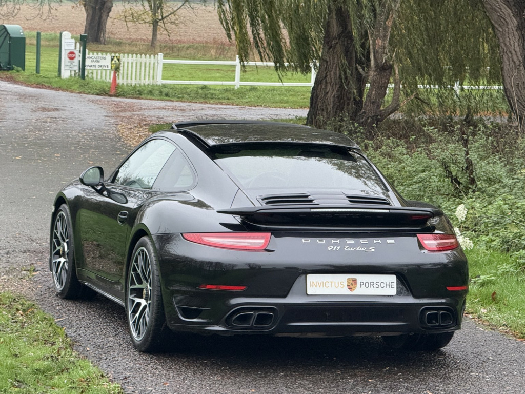 **PORSCHE WARRANTY UNTIL MARCH 2026+PORSCHE DYNAMIC CHASSIS CONTROL+CARBON CERAMIC BRAKES+CARBON INTERIOR PACK+SPORTS CHRONO PLUS+20 TURBO S WHEELS WITH CENTRE LOCK+REAR-AXLE STEERING+SUNROOF+BOSE+HEATED SEATS**, , This 2014 Porsche 911 Turbo S presents beautifully in Basalt Black Metallic with extended Black leather, offering the perfect blend of performance, luxury, and everyday usability. A genuinely well-cared-for example, it delivers the breathtaking pace, refinement, and build quality that define the 991 Turbo S. The condition throughout reflects careful ownership, with a crisp, tight driving feel and a superbly presented interior and exterior. Its combination of colour, condition, and overall presentation makes it stand out as an excellent opportunity for any serious buyer seeking a properly looked-after Turbo S. , Service History: (1) 7,594 Miles-Porsche-02/16, (2) 22,154 Miles-Porsche-03/18, (3) 42,468 Miles-Porsche-10/19, (4) 57,072 Miles-Porsche-10/21, (5) 62,958 Miles-Porsche-11/23. , Spec List: (1) Porsche Dynamic Chassis Control, (2) Sports Chrono Plus, (3) Ceramic Brakes, (4) PDK Dual Clutch Transmission, (5) Carbon Dashboard Trim, (6) BOSE Sound Package, (7) Sunroof, (8) Heated Seats, (9) Read-axle Steering, (10) Cruise Control, (11) PDLS+, (12) Electric Sport Seats, (13) 20 Turbo S Wheel with Central Lock, (14) Carbon Door Entry Guards, (15) Carbon Centre Console Trim, (16) Privacy Windows, (17) Automatic Dimming Exterior Mirrors with Memory, (18) Front and Rear Parking Sensors, (19) Alcantara Rooflining, (20) LED Headlights with Dynamic Cornering and Headlamp Washer, (21) Rain Sensor, (22) Sport Design Exterior Mirror, (23) Upper Tinted Windscreen, (24) Air Conditioning, (25) LED Daytime Lights, (26) Porsche Logo Embossed Headrest. , ANY PART EXCHANGE IS WELCOME. VIEWING IS STRICTLY APPOINTMENT ONLY. 3 MONTHS WARRANTY, EXTENDED WARRANTY AVAILABLE, HPI CLEAR AND VEHICLE TRACKING SOLUTIONS. ALL TRANSACTIONS SUBJECT TO A £199 ADMIN FEE. £100 OF EVERY SALE IS DONATED TO CHARITY. FINANCE AVAILABLE AT COMPETITIVE RATES. CM22 7AA