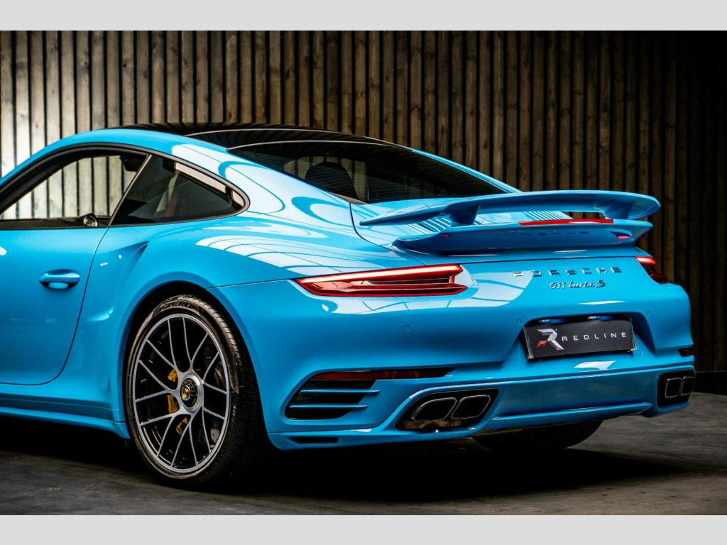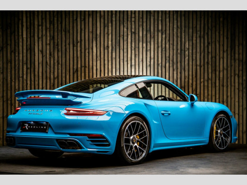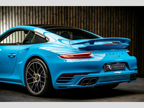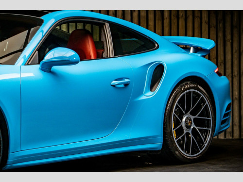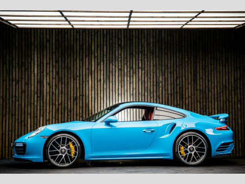 This 2018 Porsche 911 T 991 Turbo S boasts exceptionally low mileage for its age, having covered just 23,141 miles. As a Euro 6 compliant model, it features a powerful 3.8 litre petrol engine paired with a four wheel drive drivetrain for exceptional performance. Notable features include LED main headlights with Porsche Dynamic Light System, a Driving Light Assistant with automatic coming home lights, and a memory function for the exterior mirrors, steering wheel, and driver's seat. Inside, you'll find a two zone automatic climate control system and a BOSE surround sound system for an enhanced driving experience.The impressive acceleration of this Porsche 911 is highlighted by its 0 to 62mph time of just 2.9 seconds, demonstrating its superior performance capabilities compared to other vehicles in its class. This remarkable speed, combined with the advanced technology and comfort features, makes this 991 Turbo S a truly special offering for any discerning driver.. 20in Alloy Wheels - 911 Turbo S, 3-Point Automatic Seat Belts - Front and Rear with Seat-Mounted Buckles, Adaptive Sports Seats Plus - Electrical 18 Ways, Automatically Dimming Mirrors with Integrated Rain Sensor, BOSE Surround Sound System, Brake Calipers - Yellow, Clothes Hooks on Seat Backrests and on B-Pillars, Connect Plus, Cruise Control, Dashboard Trim-Centre Console Trim-Door Panel Trim in Carbon Finish, Digital Display - Vehicle Speed - Gear Indicator - Odometer and Trip Meter, Door Entry Guards with Turbo S Logo, Door Mirrors - SportDesign, Driving Light Assistant including Automatic Coming Home Lights, Dynamic High Beam, Electric Parking Brake, Electric Windows Lifts with One Touch Operation and Door-Seal Protection, Electrically Adjustable - Heated - Exterior Mirrors Mounted on the Doors - Aspherical on Drivers Side, Electromechanical Power Steering with Variable Steering Ratio and Steering Pulse Generator, Elevated Centre Console with an Open Storage Compartment and a Closed Storage Compartment, Engine Immobiliser, Floor Mats, Front Apron with Side Airblades, Front Lip Spoiler - Turbo S Logo, Full-Size Airbags for Driver and Front Passenger, GT Sports Steering Wheel and PDK Shift Paddles - Electric Height and Fore-Aft Adjustment, Glove Compartment - Lockable and Door Storage Boxes, Green Tinted Heat-Insulating Glass, Heated Rear Screen, Illuminated Vanity Mirrors in Both Sun Visors, Instrument Cluster with Central Rev Counter and High Resolution 4.6inch Colour Display, Instrument Dials in Black with Chrome Coloured Outer Rings, Integrated 4G-LTE Compatible SIM, LED Additional Lights in the Front End with Position Light - Direction Indicators and Side Indicator Lights, LED Main Headlights including Porsche Dynamic Light System - PDLS, LED Reading Lights Orientation Ignition Lock and Vanity Mirror Lighting, Luggage Compartment - Front, Memory Function for Exterior Mirrors - Steering Wheel - Drivers Seat - Individual Car Adjustments, Mounting Points on Rear Seats for ISOFIX Child Seat Mounting System and Top Tether Attachment Points, Multi-Function Display, Multi-link Suspension at Rear Including Rear Axle Steering, PASM - Porsche Active Suspension Management, PCCB - Porsche Ceramic Composite Brakes, PCM - Porsche Communication Management - Include Navigation, PDCC - Porsche Dynamic Chassis Control, PORSCHE Logo and 911 Turbo S Designation on Rear Apron - High-Gloss Chrome Finish, PTM - Porsche Traction Management, ParkAssist - Front and Rear with Reversing Camera, Particle-Pollen Filter with Active Carbon Filter, Porsche Active Aerodynamics - PAA, Porsche Side Impact Protection - POSIP, Porsche Stability Management - PSM with ABS with Advance Brake Functions, Porsche Torque Vectoring - PTV Plus inc Electronically Controlled Rear Differential Lock with Fully Variable Standard Torque Split, Preparation for Roof Transport System, Rear Apron with Air Outlet Ports for Intercoolers and Integrated Tail Pipes, Rear Side Section with Air Intake Openings for Intercoolers, Remote Control for Central Locking and Luggage Compartment Lid Release, Roof Lining and A-B-C Pillars in Alcantara, Seat Back Cover in Leather and Side Airbag Cover in Interior Colour, Seats - Heated Front, Seats - Split-Folding Rear, Sport Chrono Package, Steering Wheel Rim and Airbag Module with Smooth Leather in Interior Colour, Three-Dimensional LED Taillights with Integral 4-Point Brake Lights, Two Individual Cupholders, Two Sockets - 12-Volt in Passenger Footwell and Glove Compartment, Two Twin Tail Pipes in 911 Turbo Design - Black Chrome-Plated Stainless Steel, Two-Zone Automatic Climate Control, Tyre Pressure Monitoring - TPM, Tyre Sealing Compound and Electric Air Compressor, Windscreen Washer System with Aero Wiper Blades and Washer Jets, Windscreen with Grey Top-Tint, Heated Multifunction Steering Wheel, Light Design Package, Electric Glass Slide and Tilt Sunroof, Power Steering Plus, Electrically Folding Exterior Mirrors, Leather interior packag.