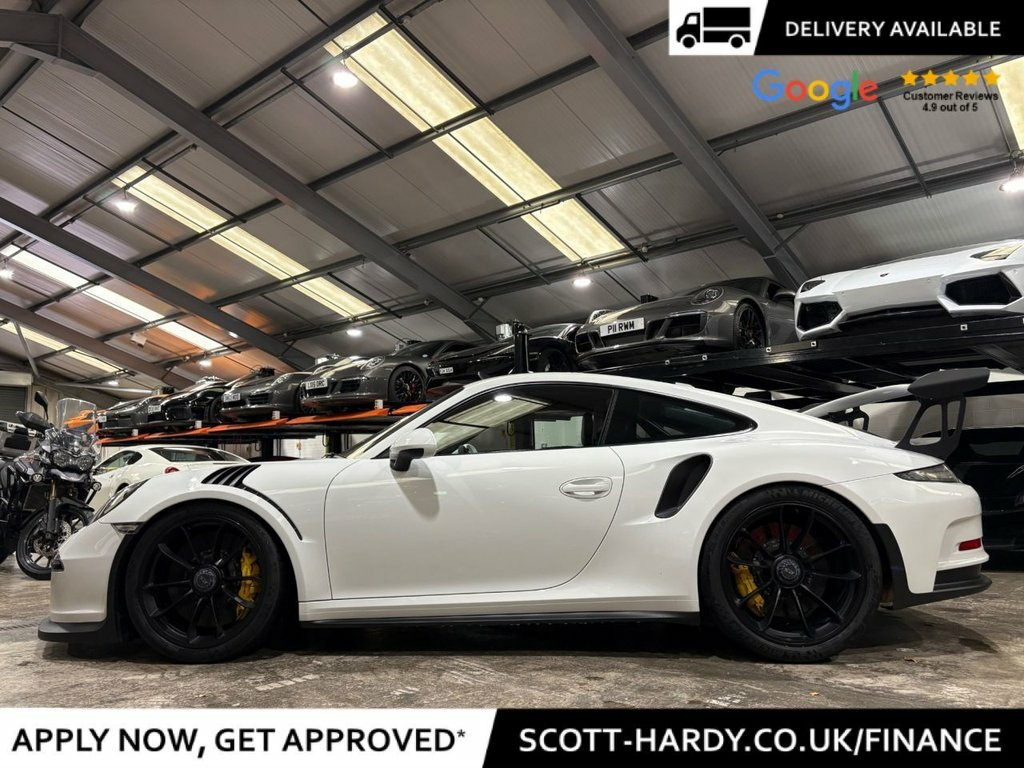Scott Hardy are proud to present this awesome PORSCHE 911 4.0 991 GT3 RS Finished in Pure White- FULL CLUBSPORT CAR INCLUDING (PCCB)- Bi-Xenon Headlights (PDLS)- Lift- Taillights with clear glass look- (PCM)- Light design package- Sun visors in Alcantara- Black seat belts- Telephone module- Digital radio- Sound package plus- Floor mats- Storage compartment lid alcatara with PORSCHE logo- Full PPF- Brook race exhaust. Fire Extinguisher, PVTS - Porsche Vehicle Tracking System, Storage Compartment Lid in Alcantara wit, Seat Belts - Black, Sound Package Plus, PCCB - Porsche Ceramic Composite Brakes, Sport Chrono Package incl Porsche Track , Bi-Xenon Lighting System in Black inc Po, Digital Radio, Lifting System - Front Axle, Smoking Package, PCM Package - Painted, Floor Mats, Air Conditioning Omitted, Wheels Painted in Satin Black, Clear Glass Tail Lights, 12-Volt Socket in Passenger Footwell, 12v Socket - Storage Bin Centre Console, 12v Socket Outlet in Glove Compartment, 20in Alloy Wheels - GT3 RS Forged Alloy , 7in TFT Touchscreen, ABD - Automatic Brake Differential, ABS - Anti-lock Brake System, ASR - An