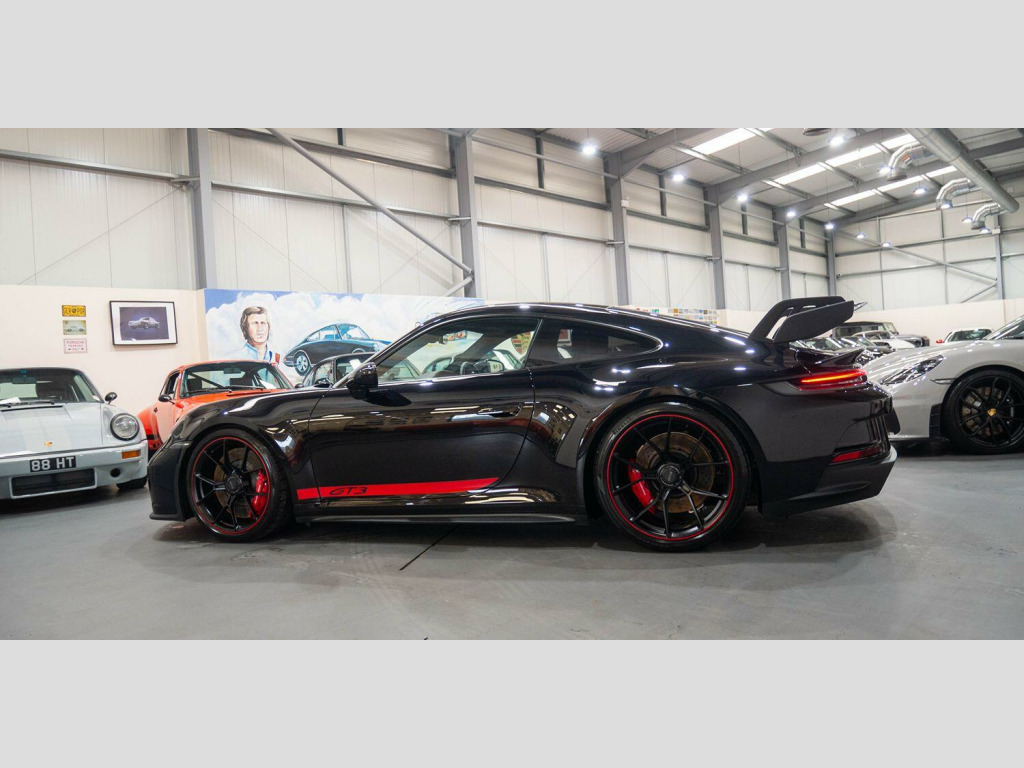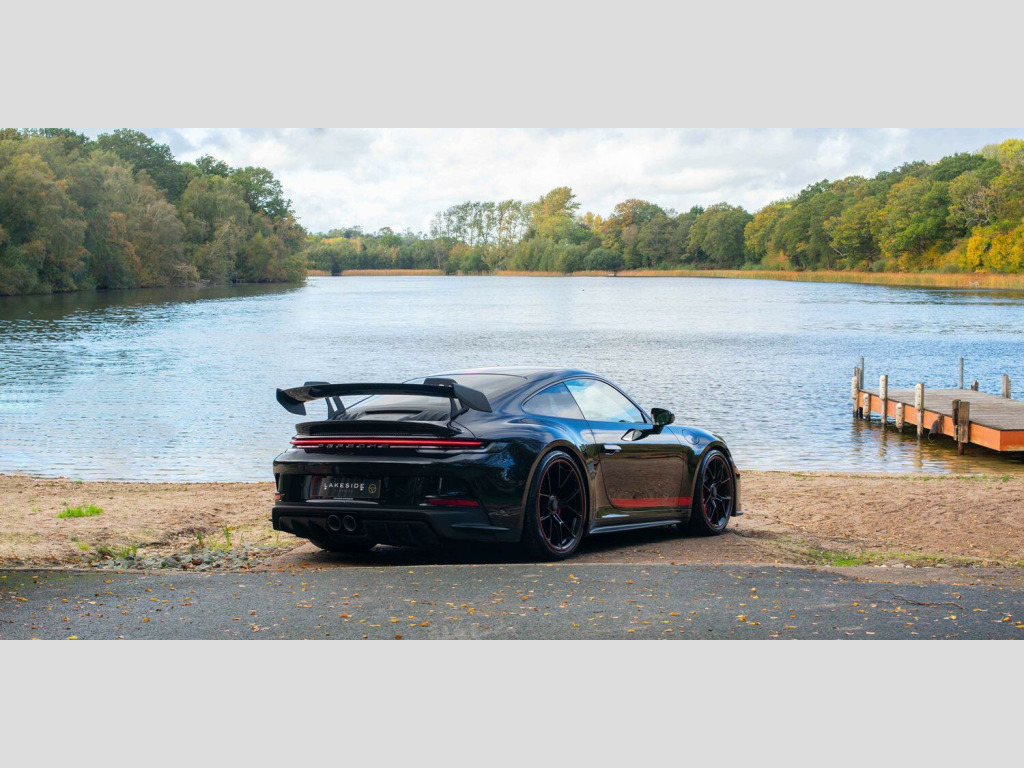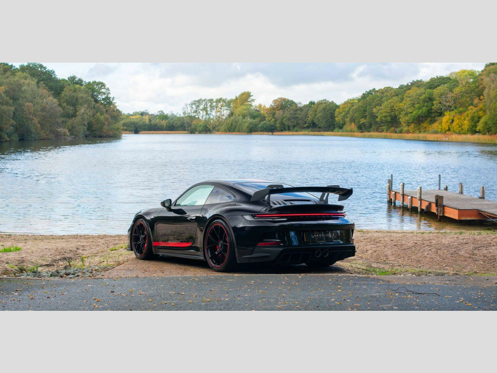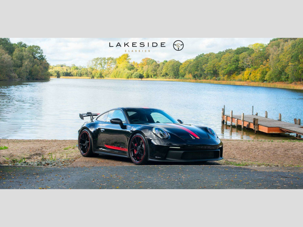 Here at Lakeside Classics we are pleased to offer this 992 GT3 presented in Jet Black Metallic with Interior with Extensive Leather / Race tex Items in Black with Contrasting Colour Guards Red. , Our 992 GT3 benefits from Full Body PPF Coverage. , Over and above a standard GT3 specification the original owner has opted for the following options:, - Porsche Doppelkupplung (PDK), - Front Axle Lift System, - Chrono Package Including Preparation for the Lap Trigger, - LED Main Headlights in Black incl. Porsche Dynamic Lighting System Plus (PDLS+), - Bose Surround Sound System, - Park Assist Rear Including Reversing Camera, - Carbon Interior Package (High Gloss), - Seat Heating, - Steering Wheel Rim and Gear Selector in Smooth-Finish Black Leather, - Steering Column Casing in Leather, - Dashboard and Door Trim Package in Leather, - Wheels Painted in Satin Black with Rim Border in Guards Red, - Exclusive Design Fuel Filler Cap, - Fire Extinguisher, - Storage Compartment Lid In Race Tex with Porsche Logo, - Mirror Bases Painted in Exterior Colour, - Rev Counter in Guards Red, - Side Model Logo Red, - Air Vents in Leather with Leather Slats, - Vehicle Key Painted with Leather Key Pouch, - Seat Belts in Guards Red, - Automatically Dimming Interior and Exterior Mirrors with Integrated Rain Sensor, - Storage Package, - Light Design Package, - Porsche Logo LED Courtesy Lights, - Chrono Stopwatch Dials in Guards Red, - Privacy Glass, , This car boasts a Full Porsche Service History as outlined below;, - 02/25, 7266 miles, Porsche Centre East London, , The car is complete with all books and manuals. , Please contact us today for more information. Personalised video available on request. Finance available. Viewing By Appointment Only. , Lakeside Approved Pre Owned Cars. , Every vehicle that bears the Lakeside Approved Status has been professionally prepared by our highly qualified Technicians to the highest standards. Thanks to extensive documented vehicle history and Lakeside Classics Warranty, we ensure more than just certified quality. We create trust. , Our Commitment:, , - 6 Month Lakeside Classics Warranty*, - 12 Months MOT, - Minimum 90 Point Mechanical Inspection , - 360 Degree Interior & Exterior Inspection , - Independent History and Mileage Checks, - All routine servicing and maintenance due will have been carried out as a minimum. - Full Valet and Final Quality Inspection. , *Warranty does not cover wear and tear items.