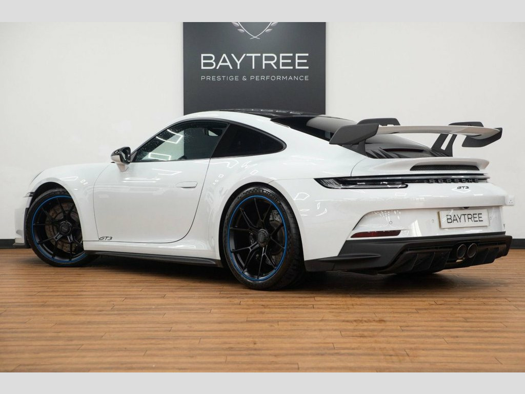 Baytree are delighted to offer for sale this exceptional May 2022 registered Porsche 911 4.0 992 GT3, elegantly presented in Carrera White, with a sleek Black Leather Interior, featuring a set of 20" Alloy Wheels. This vehicle has travelled just 17,629 miles. This Porsche boasts an impressive array of features, some of which include: Front Axle Lift System, BOSE Surround Sound System, Rear ParkAssist with Reversing Camera, Tinted LED Main Headlights with Matrix Beam including Porsche Dynamic Light System Plus - PDLS Plus, Lightweight Carbon Roof, Exclusive Design Tail Light, Full Bucket Seats, Interior Carbon Package, Wheels Painted in Satin Black with Rim Borders Painted in Shark Blue, plus much more. This particular example also benefits from Porsche Extended Warranty until May 2027. For further details or to schedule a viewing, don't hesitate to contact us. Carrara White, Privacy Glass, HomeLink, Sport Chrono Stopwatch Instrument Dial -, Porsche Logo LED Door Courtesy Lights, Light Design Package, Seats - Full Bucket, Automatically Dimming Mirrors with Integ, ParkAssist - Rear with Reversing Camera, Seat Belts - Shark Blue, BOSE Surround Sound System, Exclusive Design Tail Light, Chrono Package including Preparation for, Tinted LED Main Headlights with Matrix B, Rev Counter in White, Interior Package - Carbon, Race-Tex Sun Visors, Lightweight Carbon Roof, Front Axle Lift System, Steering Column Casing in Leather, Wheels Painted in Satin Black with Rim B, Brake Calipers - Painted in Black, 2 USB-C Ports in Centre Console Main Sto, 20in Front 21i