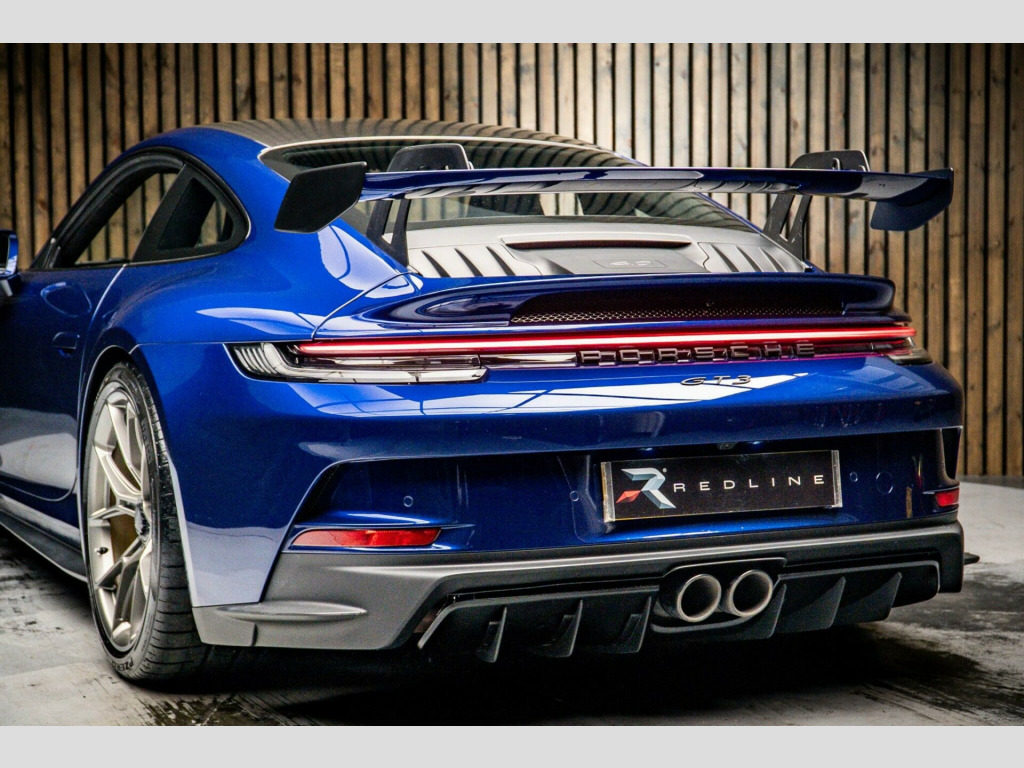 This 2022 Porsche 911 992 GT3 is a remarkable example of German engineering, boasting a powerful 4.0 litre petrol engine and meeting Euro 6 emission standards. This model comes equipped with essential modern conveniences, including seamless smartphone integration with Apple CarPlay and Android Auto, ensuring you stay connected on every journey. For your comfort, it features two zone automatic climate control, allowing both driver and passenger to set their preferred temperatures. The advanced LED main headlights with distinctive four point LED spotlights provide excellent visibility, complemented by automatic headlight activation and welcome home lighting for added convenience. Inside, the instrument cluster features a central analogue rev counter alongside two 7 inch TFT displays, offering clear and comprehensive information at a glance.Experience exhilarating performance with this Porsche 911 GT3, capable of accelerating from 0 to 62 miles per hour in just 3.9 seconds. This impressive acceleration highlights the vehicle's superior performance capabilities compared to other cars in its class. The combination of its potent engine, advanced lighting systems, and intuitive interior technology creates a driving experience that is both engaging and refined, making it a truly special offering for any discerning driver.. 2 USB-C Ports in Centre Console Main Storage Compartment Lid - 12V Socket in Passenger Footwell, 20in Front 21in Rear Alloy Wheels - 911 GT3 Forged - Silver, 3-Point Automatic Front Seat Belts with Buckle on Seat, Adjustable Suspension for Race Track Use, Automatic Headlight Activation including Welcome Home Lighting, Black Race-Tex Seat Centres - Steering Wheels Rim - PDK Gear Grip Area including Gaiter - Door Pulls - Door Panel Armrest - Centre Console Main Storage Compartment Lid Armrest, Brake Pad Wear Indicator, Central Wheel Bolts in Black and Wheel Hub Cover with GT3 Logo, Clothes Hooks on Seat Backrests, Cruise Control, Digital Radio, Door Sill Guards in Brushed Aluminium in Anthracite with GT3 Logo, Double Wishbone Front Suspension with Anti-Roll Bar, Electric Parking Brake, Electromechanical Power Steering with Variable Steering Ratio and Speed Sensitive Power Steering Assistance, Engine Immobiliser, Exterior Mirrors Upper and Lower Trim Painted in Exterior Colour - Mirror Base Painted in Satin Black, Exterior Mirrors on Door Waist Rails - Electrically Adjustable and Heatable - Aspherical on Drivers Side, Fixed Rear Wing with Swan Neck Connection and Wing Mounts in Aluminium which are Integral to the Bodyshell, Floor Mats, Front Apron in Exterior Colour - Black Lower Section with Integral Cooling Air Intakes with Anthracite-Coloured Grilles and Black Spoiler Lip, Full-Size Airbags for Driver and Front Passenger, GT-Specific PDK Gear Selector with Manual Gate and Grip Area including Gaiter in Black Race-Tex - Gate Surround with GT3 Logo in Yellow, Glove Compartment - Lockable and Storage Compartment in Each Door, Heated Rear Screen, Illuminated Vanity Mirrors in Sun Visors - Driver and Passenger Sides, Instrument Cluster with Central Analogue Rev Counter - Two 7in TFT Display, Intelligent Lightweight Construction in Aluminium-Steel-Composite Construction, Keyless Go, LED Auxiliary Lights Units in Front Apron with Position Lights - Direction Indicators and Side Indicators, LED Main Headlights - Daytime Running Lights with 4-Point LED Spotlights, LED Reading Lights - Orientation - Ignition Lock - Luggage Compartment - Footwell - Glove Compartment and Exit Courtesy Lighting, Lightweight Bonnet in Carbon-Fibre Reinforced Plastic in Exterior Colour with Two Air Outlets, Lightweight Glazing made of Compound Glass and Acoustic Film, Lightweight Rear Cover - Covered with Black Carpet, Lightweight Sport Exhaust System in Stainless Steel with Two Central Stainless Steel Tailpipes in Black, Luggage Compartment - Front, Multi-Link Rear Axle with Integrated Helper Springs - Anti-Roll Bar, Multifunction GT3 Sports Steering Wheel - PDK Shift Paddles in Dark Silver and Mode Switch, PASM - Porsche Active Suspension Management, PCM - Porsche Communication Management - Include Navigation, PTV Plus - Porsche Torque Vectoring Plus, PVTS - Porsche Vehicle Tracking System, Particle-Pollen Filter with Active Carbon Filter, Porsche Connect Online Navigation, Porsche Side Impact Protection - POSIP, Porsche Stability Management - PSM Including ABS with two Switchable Stages - SC OFF and SC Plus TC OFF, Porsche Track Precision App, Power Windows with One-Touch Operation and Door Seal Protection Function, Rear Apron with Additional Air Outlets Including Anthracite-Coloured Grilles - Black Lower Section, Rear Apron with GT3 Logo in Black, Rear Axle Steering with Sports Tuning, Rear Wing in Exterior Colour with Side Plates on Rear Wing - Wing Uprights in Black, Remote Central Locking, Retractable Door Handles, Rev Counter with Digital Display for Selected Gear and Vehicle Speed - Distinguishable Dial and Illuminated GT3 Logo, Roof Lining and A-B-C Pillar Trims in Race-Tex, Seamless Taillight Strip with Integrated Porsche Logo in Satin Black, Seat Bolsters - Headrests and Steering Wheel Airbag Module in Black Leather, Side Window Trim Strips and Side Skirts in Black, Six-Piston Closed Type Aluminium Monobloc Fixed Brake Calipers at Front and Four-Pi.