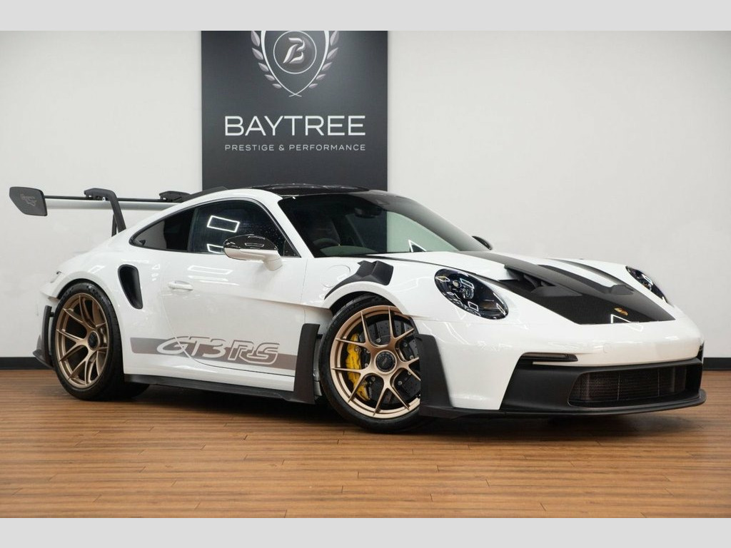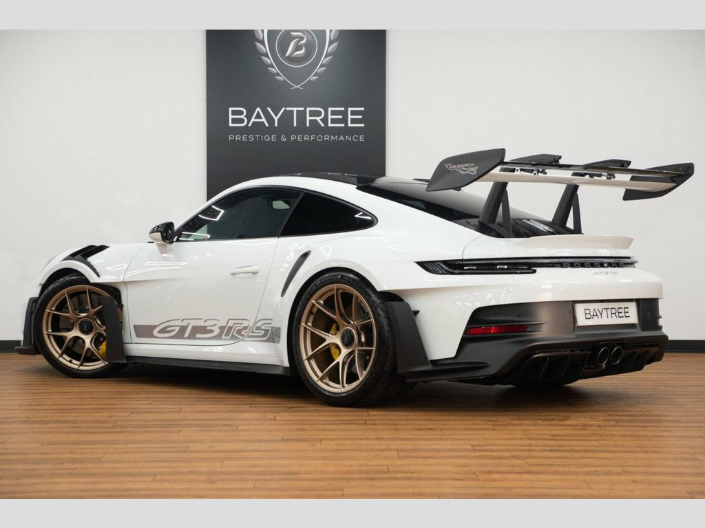 Baytree are delighted to offer for sale this exceptional March 2025 registered Porsche 911 4.0 992 GT3 RS, elegantly presented in White with a Full PPF by Topaz and a sleek Black Leather Interior, featuring a set of striking 20/21" GT3 RS Forged Magnesium Alloy Wheels. This vehicle has travelled 1,200 miles. This Porsche boasts an impressive array of features, some of which include: Weissach Package, BOSE Surround Sound System, Reversing Camera, Porsche Ceramic Composite Brakes, Front Axle Lifting System, Light Design Package, LED Main Headlights in Black including Porsche Dynamic Light System, Exclusive Design Taillights, Privacy Glass, plus much more. For further details or to schedule a viewing, don't hesitate to contact us. Privacy Glass, Chrono Stopwatch Instrument Dial - White, Light Design Package, Weissach Package, Reversing Camera, Side Logo Weissach RS on the rear Wing C, Accent Package Logos Silver, BOSE Surround Sound System, Smoking Package, Exclusive Design TailLights, LED Main Headlights in Black including P, Tachometer Dial white, Door Sill Guards - Carbon Matt - Illumin, Club Sports Package with Additional Road, 20in Front 21in Rear Alloy Wheels - GT3 , Lifting System - Front Axle, PCCB - Porsche Ceramic Composite Brakes, White, 20in Front 21in Rear Alloy Wheels - GT3 , 64 Litre Fuel Tank, 7-Speed Porsche Doppelkupplung - PDK, Airbags, Alarm System with Interior Surveillance, Apple CarPlay, Brake S