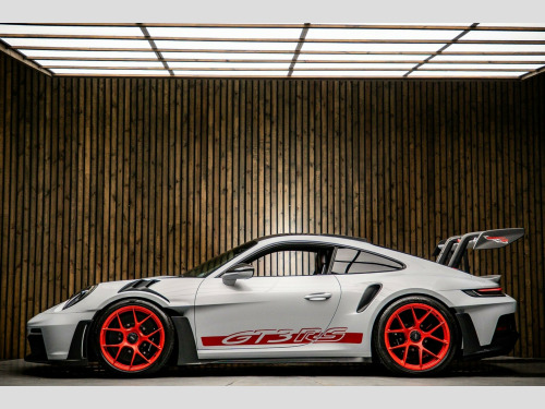 This 2024 Porsche 911 992 GT3 RS is a truly exceptional example, boasting an incredibly low mileage of just 1547 miles from its single owner. Finished in the striking 992 GT3 RS trim, this Euro 6 compliant model is powered by a potent 4.0 litre petrol engine. It comes equipped with advanced LED Main Headlights featuring integrated 4 point daytime running lights, ensuring excellent visibility. Inside, you'll find the comfort of Two Zone Automatic Climate Control and seamless integration with your smartphone thanks to Apple CarPlay.The performance of this Porsche 911 is truly remarkable, with a blistering 0 to 62 miles per hour acceleration time of just 3.2 seconds, setting it apart from many other sports cars. This rapid acceleration demonstrates the engineering prowess and dedication to performance that Porsche is renowned for. Combined with its pristine provenance and desirable features, this 992 GT3 RS represents a unique opportunity for any discerning driver.. 20in Front 21in Rear Alloy Wheels - GT3 RS Forged Aluminium, 64 Litre Fuel Tank, 7-Speed Porsche Doppelkupplung - PDK, Airbags, Alarm System with Interior Surveillance, Apple CarPlay, Brake System - Brake Calipers in Red, Carbon Interior Package - Satin Finish, Chrono Package including Chrono Button on Steering Wheel and Lap Trigger Preparation, Cruise Control, Digital Radio, Door Sill Guards - Carbon - Satin Finish, Emergency Call Systems eCall and bCall, Equipment GT3, Exclusive Design Fuel Filler Cap, Exterior Mirror Lower Trim Painted in Exterior Colour Including Mirror Base in Black, Exterior Mirrors on Door Waist Rails - Electrically Adjustable and Heatable - Aspherical on Drivers Side, Floor Mats, GT-Specific Gear Selector with Grip Area Including Gaiter in Black Race-Tex, GT-Sports Steering Wheel in Race-Tex Black, Interior Lighting, LED Main Headlights with Integrated 4-Point Daytime Running Lights, Leather - Microfibre Interior, Leather Door Panel and Central Armrests, Lightweight Carbon Roof, Lightweight Stainless Steel Sports Exhaust System with Two Central Tailpipes in Black, Lightweight and Noise Insulated Glass, Lithium-Ion lightweight Starter Battery Track LiFePO4 - 40Ah, Model Designation in Satin Black on Rear Apron, Navigation High, No Rear Seats, Non-Smoking Package, PASM Sport Suspension, PTV Plus - Porsche Torque Vectoring Plus, PVTS Plus - Porsche Vehicle Tracking System Plus, ParkAssist, Particle-Pollen Filter with Active Carbon Filter, Pedals and Footrest in Stainless Steel, Pedestrian Safety, Power Steering Plus, Rear Axle Steering with Sports Setup, Rear Diffuser in Louvered Design, Rear-Wheel Drive, Roof Lining and A-B-C Pillar Trims in Race-Tex Black, Seat Belt Pretensioners, Seat Belt Warning System for Driver and Front Passenger, Seat Belts, Seats - Full Bucket, Side Logo GT3 RS in Contrasting Colour, Side Window Trims in Plain Black, Six-Cylinder Horizontally Opposed and Naturally Aspirated Engine - 4.0-Litre Displacement, Sound Package Plus, Standard Suspension, Steering Wheel - Manual Height and Fore-Aft Adjustment, Sun Visors for Driver and Front Passenger, TPM Valves in Silver, Taillight Strip with PORSCHE Lettering, Two-Zone Automatic Climate Control, Tyre Pressure Monitoring System - TPM with Race Track Mode, Tyre Sealing Compound and Electric Air Compressor, USB-C Ports, Voice Control System, Warning Triangle, Wheels Painted in Silver, PCCB - Porsche Ceramic Composite Brakes with Brake Calipers Painted in Black - High-Gloss, Wheels Painted in Pyro Red, Steering Column Casing in Leather, Lifting System - Front Axle, Belt Outlet Trims in Race-Tex, 20in Front 21in Rear Alloy Wheels - GT3 RS Forged Magnesium - Lightweight, Race-Tex Sun Visors, Club Sports Package with Additional Road Legal 1kg Fire Extinguisher, Storage Compartment Lid in Race-Tex with Porsche Logo, Tinted LED Main Headlights with Matrix Beam including Porsche Dynamic Light System Plus - PDLS Plus, Rev counter in Guards Red, Exclusive Design TailLights, BOSE Surround Sound System, Accent Package logos, Air vents in leather with painted slats, Bespoke Door Sill Guards in Matt Carbon Illuminated, Seat Belts - Guards Red, Reversing Camera, Weissach Package, Light Design Package, Traffic Sign Recognition, ‘PORSCHE’ Logo LED Door Courtesy Lights, Aluminium Pedals, Privacy Glass, Chrono Stopwatch Instrument Dial - Guards Red.