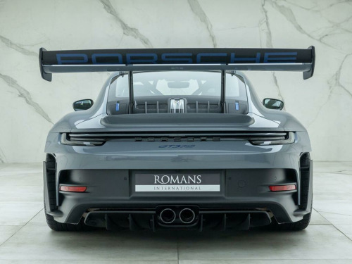 Presented in Special Colour ''Arctic Grey'' Paint with Black Leather & Race-Tex - All-Important Weissach-Package Example (£26,892 Option) - Desirably Equipped with Porsche Ceramic Composite Brakes (£7,473) & Front Axle Lift System (£2,546) - Porsche Manufacturer’s Warranty until December 2026 - Paint Protection Film (PPF) Applied to Front End - UK SuppliedOptional Extras:20/21-Inch GT3 RS Forged Magnesium Lightweight Wheels in Indigo BlueArctic Grey - Special Colour PaintWeissach PackagePorsche Ceramic Composite Brakes (PCCB)Full Bucket SeatsFront Axle Lift SystemClubsport Package (Including: Rear Roll Cage + Six-Point Racing Harness + Lightweight Motorsport Hand-Held Fire Extinguisher)Accent Package Logos in Indigo BlueBOSE Surround Sound SystemLED Main Headlights in Black including Porsche Dynamic Light System (PDLS)Rear ParkAssist including Reversing CameraInterior Weissach Package with Extensive Leather in Leather & Race-TexBelt Outlet Trims in Race-TexSilver Grey Seat BeltsRev Counter in WhiteChrono Stopwatch Instrument Dial in WhitePaint Protection Film (PPF) Applied to Front EndStandard Features:Cruise ControlFull Bucket SeatsLightweight and Noise Insulated GlassMatt Carbon Interior PackagePorsche Active Suspension Management (PASM) Sport SuspensionPorsche Torque Vectoring Plus (PTV Plus)Power Steering PlusRace-Tex Multifunction GT-sports Steering Wheel in BlackRear-Axle SteeringSports Exhaust System in BlackTwo-Zone Automatic Climate Control. 20/21-Inch GT3 RS Forged Magnesium Lightweight Wheels in Indigo Blue, Arctic Grey - Special Colour Paint, Weissach Package, Porsche Ceramic Composite Brakes (PCCB), Full Bucket Seats, Front Axle Lift System, Clubsport Package (Including: Rear Roll Cage + Six-Point Racing Harness + Lightweight Motorsport Hand-Held Fire Extinguisher), Accent Package Logos in Indigo Blue, BOSE Surround Sound System, LED Main Headlights in Black including Porsche Dynamic Light System (PDLS), Rear ParkAssist including Reversing Camera, Interior Weissach Package with Extensive Leather in Leather & Race-Tex, Belt Outlet Trims in Race-Tex, Silver Grey Seat Belts, Rev Counter in White, Chrono Stopwatch Instrument Dial in White, Paint Protection Film (PPF) Applied to Front End.