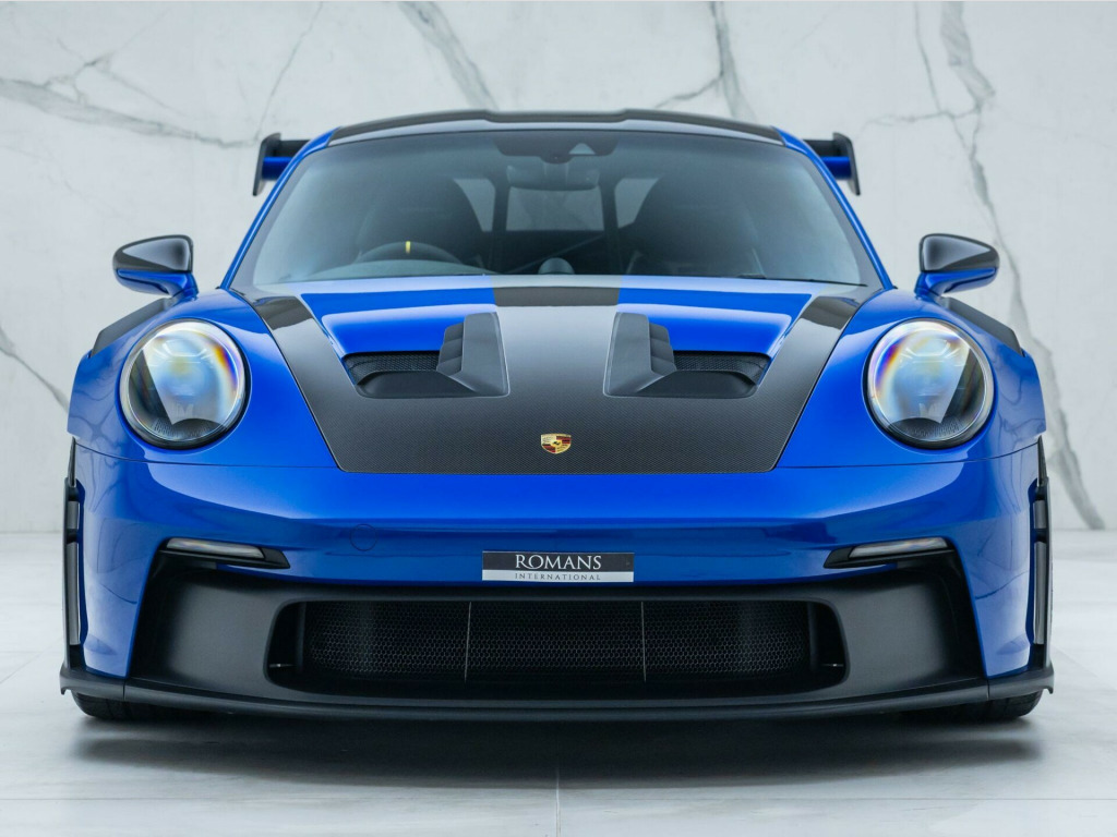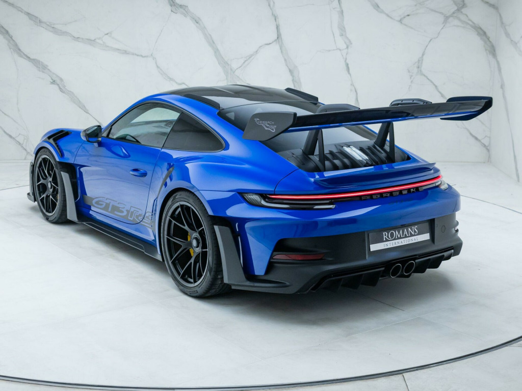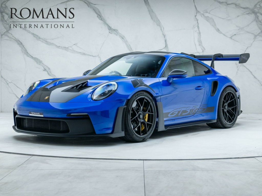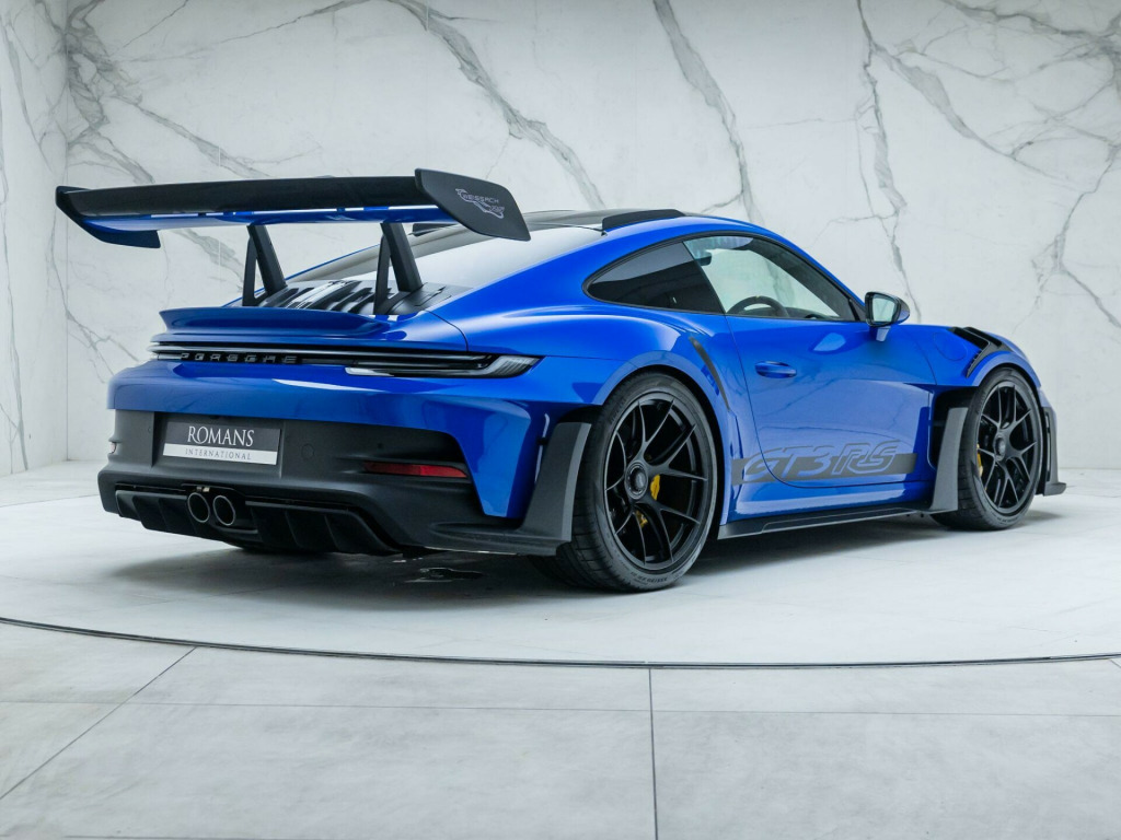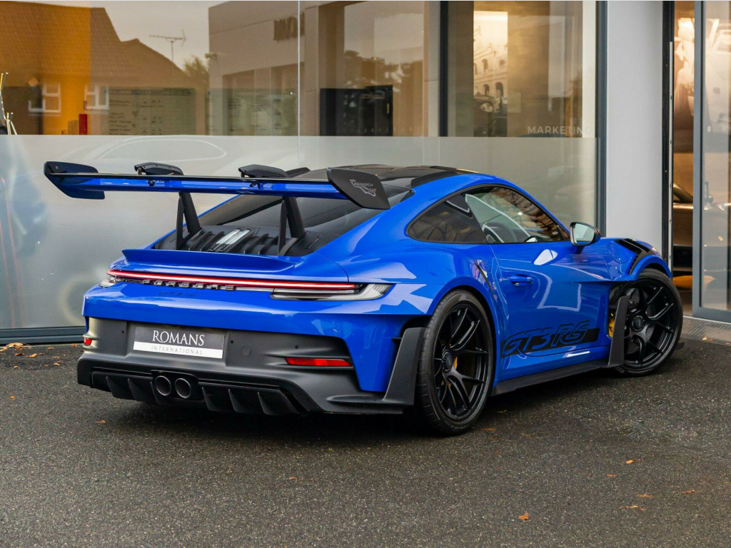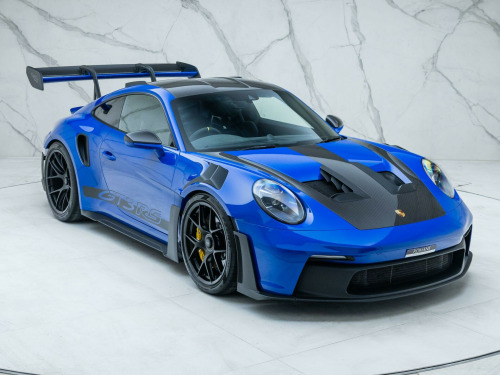 Finished in PTS Nogaro Blue Paint (£12,564) with Black Leather & Race-Tex - All-Important Weissach-Package Example - Desirably Equipped with Porsche Ceramic Composite Brakes & Front Axle Lift System - Porsche Manufacturer’s Warranty until May 2028 - Paint Protection Film (PPF) Applied to Whole Car - UK SuppliedOptional Extras:20/21-Inch GT3 RS Forged Magnesium Lightweight Wheels in Satin BlackPTS Nogaro Blue PaintWeissach PackageRoll Cage in Carbon FibrePorsche Ceramic Composite Brakes (PCCB)Tinted LED Main Headlights with Matrix Beam including Porsche Dynamic Light System Plus (PDLS Plus)Clubsport Package (Including: Rear Roll Cage + Six-Point Racing Harness + Lightweight Motorsport Hand-Held Fire Extinguisher)BOSE Surround Sound SystemFront Axle Lift SystemReversing CameraSix-Point Racing Harness Seat Belt for Passenger SeatTraffic Sign RecognitionLight Design PackageExclusive Design TaillightsInterior Weissach Package with Extensive Leather in Leather & Race-Tex in Black/GT SilverIlluminated Door Sill Guards in Matt Carbon'BORN IN FLACHT' Logo LED Door Courtesy LightsSide Logo 'Weissach RS' on the Rear Wing Coloured GreyPrivacy GlassPaint Protection Film (PPF) Applied to Whole CarStandard Features:Cruise ControlFull Bucket SeatsLightweight and Noise Insulated GlassMatt Carbon Interior PackagePorsche Active Suspension Management (PASM) Sports SuspensionPorsche Torque Vectoring Plus (PTV Plus)Power Steering PlusRace-Tex Multifunction GT-sports Steering Wheel in BlackRear-Axle SteeringSports Exhaust System in BlackTwo-Zone Automatic Climate Control. 20/21-Inch GT3 RS Forged Magnesium Lightweight Wheels in Satin Black, PTS Nogaro Blue Paint, Weissach Package, Roll Cage in Carbon Fibre, Porsche Ceramic Composite Brakes (PCCB), Tinted LED Main Headlights with Matrix Beam including Porsche Dynamic Light System Plus (PDLS Plus), Clubsport Package (Including: Rear Roll Cage + Six-Point Racing Harness + Lightweight Motorsport Hand-Held Fire Extinguisher), BOSE Surround Sound System, Front Axle Lift System, Reversing Camera, Six-Point Racing Harness Seat Belt for Passenger Seat, Traffic Sign Recognition, Light Design Package, Exclusive Design Taillights, Interior Weissach Package with Extensive Leather in Leather & Race-Tex in Black/GT Silver, Illuminated Door Sill Guards in Matt Carbon, 'BORN IN FLACHT' Logo LED Door Courtesy Lights, Side Logo 'Weissach RS' on the Rear Wing Coloured Grey, Privacy Glass, Paint Protection Film (PPF) Applied to Whole Car.