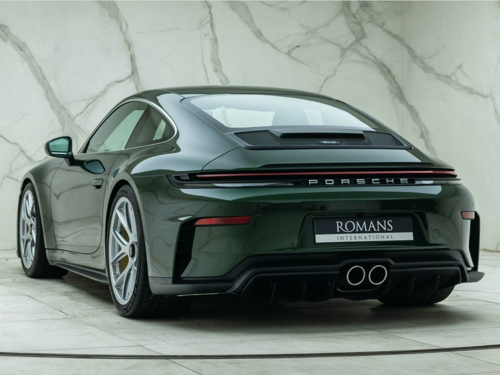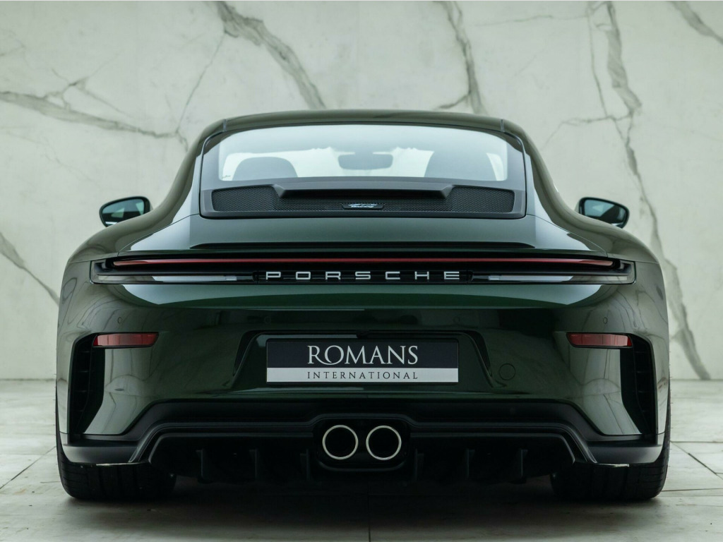 Finished in Oak Green Neo Metallic Paint (£3,235) with Black Leather & Race-Tex - Delivery Mileage Example with Rear Seats - Desirably Equipped with Lightweight Exterior Package in Black (£29,223) & Porsche Ceramic Composite Brakes (PCCB) (£9,087) - Porsche Manufacturer's Warranty until September 2028 - UK SuppliedOptional Extras:20/21-Inch 911 GT3 Forged Magnesium Lightweight WheelsOak Green Neo Metallic PaintLightweight Package (Including: Carbon Fibre Reinforced Plastic Roof + Lightweight Door Panels + Shortened GT-Specific Gear Lever + Lightweight Sport Bucket Seats (Foldable) + Magnesium Lightweight Wheels)Porsche Ceramic Composite Brakes (PCCB)HD-Matrix LED Main HeadlightsBOSE Surround Sound SystemRear SeatsChrono PackageHeated Front SeatsRear ParkAssistISOFIX Fastening SystemPassenger Footwell Storage NetRace-Tex Roof LiningRacing Yellow Seat BeltsAirblades on Front Apron Painted in Exterior ColourStandard Features:2-Zone Automatic Climate Control6-Speed GT Sports TransmissionCruise ControlGT Sports Steering Wheel in Black Smooth-Finish LeatherPASM Sport SuspensionPorsche Torque Vectoring (PTV)Power Steering PlusRear-Axle Steering with Sport SetupTyre Pressure Monitoring System (TPM) with Race Track Mode. 20/21-Inch 911 GT3 Forged Magnesium Lightweight Wheels, Oak Green Neo Metallic Paint, Lightweight Package, Porsche Ceramic Composite Brakes (PCCB), HD-Matrix LED Main Headlights, BOSE Surround Sound System, Rear Seats, Chrono Package, Heated Front Seats, Rear ParkAssist, ISOFIX Fastening System, Passenger Footwell Storage Net, Race-Tex Roof Lining, Racing Yellow Seat Belts, Airblades on Front Apron Painted in Exterior Colour.