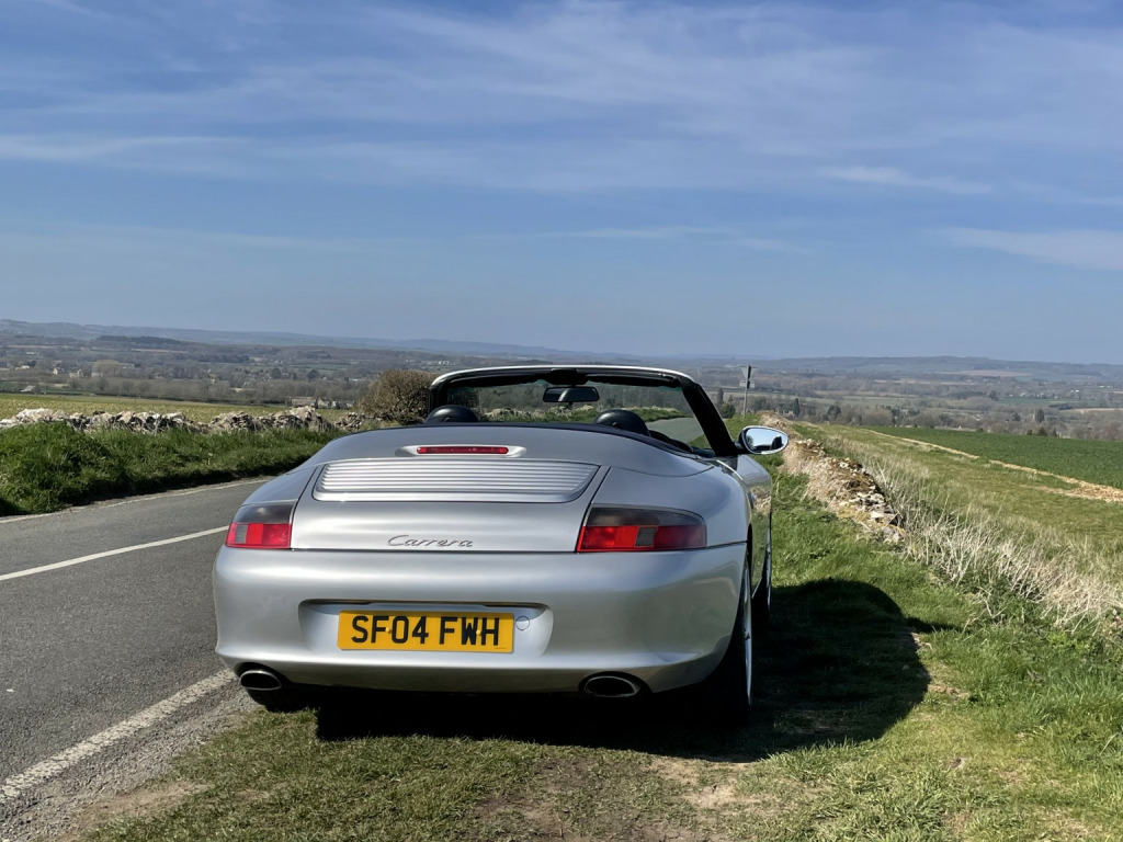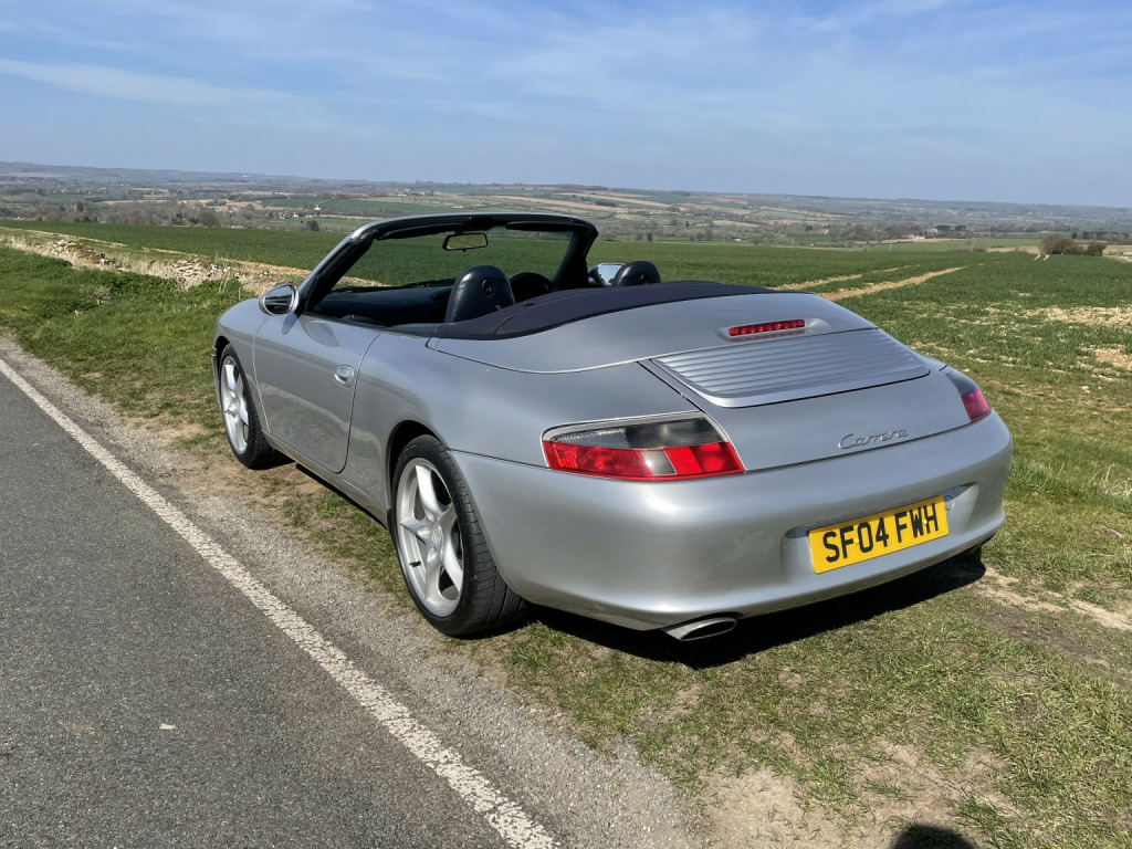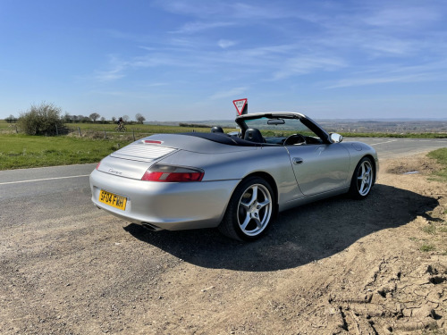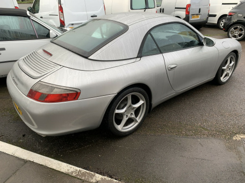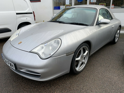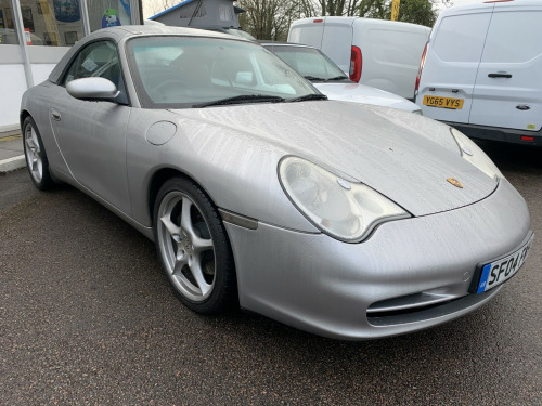 We are pleased to offer this Porsche 996 Carrera 2 convertible which has clearly led a charmed life and is in excellent condition throughout. Finished in Arctic silver with contrasting Metropole blue hood and blue leather interior. The vehicle is totally standard with no modifications and there is an extensive history file which includes all work carried out throughout its life along with a service book that has 6 entries in it. The all important IMS bearing has recently been replaced, along with a major service, no expense spared in preparing this vehicle for its new owner. Points of note that have been replaced include 4 new Michelin Pilot sport tyres plus 4 wheel laser alignment, Bosch alternator, spark plugs, brake fluid change, rear main oil seal, air oil separator and new gearbox mounting to name a few. There is a full documented invoice for all work carried out by a highly respected independent Porsche specialist. The factory hard top is in excellent order with functioning rear window demist and there is a hard top stand with dust cover included. The paintwork is in excellent order having recently been subject to a full 3 stage machine polish and the interior is also in excellent condition throughout. There are two Porsche remote keys, a full vehicle document wallet in addition to the history file and It is of course HPI clear. We consider this excellent example to be a rose among many thorns on the market and welcome any inspection. There has been no expense spared preparing this car for its next owner to enjoy and it is of course a solid investment for the future. To discuss this vehicle further and find out any more information you require please telephone us in the first instance.