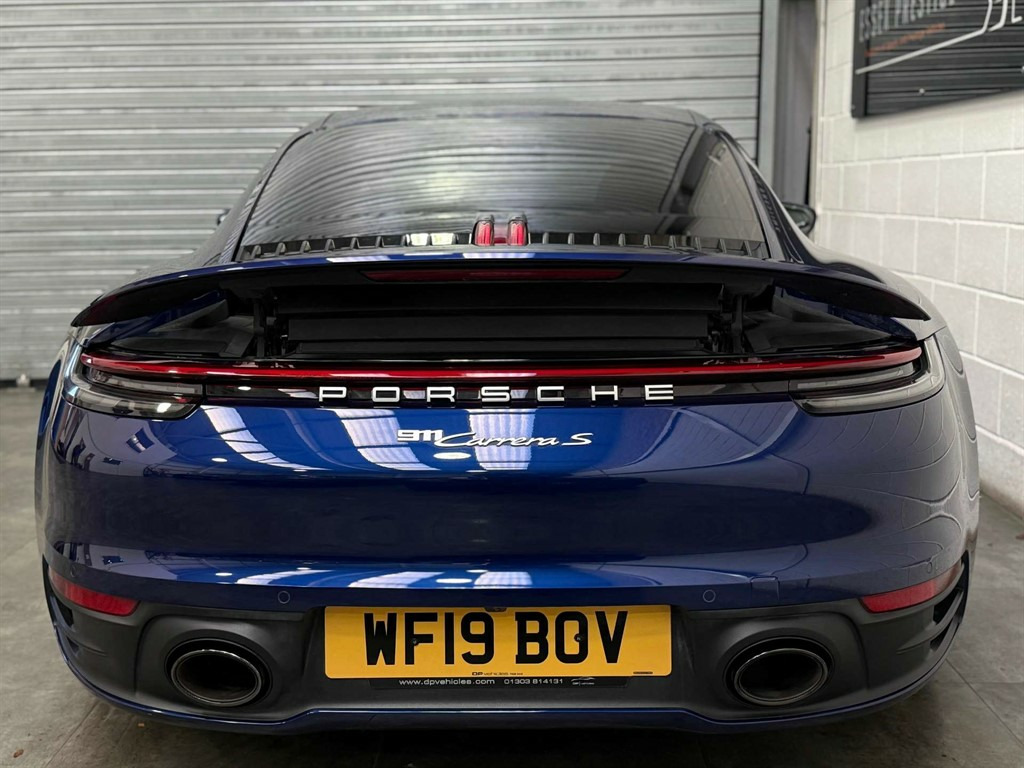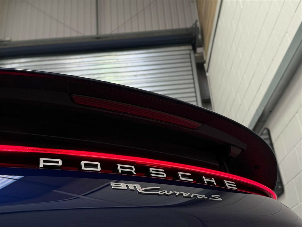 Full Service History, Sat Nav, Sports Exhaust, Rear View Camera, Bose Sound System, Sports Chrono, Two-Zone Automatic Climate Control,Windscreen with Grey Top-Tint,Windscreen Washer System with Aero Wiper Blades and Washer Jets,Warn and Brake Assist,Tyre Sealing Compound and Electric Air Compressor,Tyre Pressure Monitoring - TPM,Trim Strips in Black,Three-Dimensional LED Taillights and Integral Third Brake Light,Taillight Strip Including Integrated Parking Lights and Driving Lights,Storage Compartment in Each Door,Steering Wheel - Multi-Function,Stationary Management with HOLD Function,Sports Seats with Electric Backrest Adjustment and Manual Fore-Aft and Height Adjustment,Sound Package Plus,Side Skirt Trim in Black,Side Air Intakes at the Front with Active Cooling Air Flaps and Air Blades,Seats - Split-Folding Rear,Seats - Heated Front,Electric Parking Brake,Instrument Cluster with Central Analogue Rev Counter - Two 7in TFT Display,ISOFIX Child Seat Mounting Points on Front Passenger Seat,Heated Rear Screen,Green Tinted Thermally Insulated Glass,Full-Size Airbags for Driver and Front Passenger,Four-Tract Exhaust System with Twin Dual-Tube Tailpipes in Stainless Steel,Floor Mats,Exterior Mirrors on Door Waist Rails - Electrically Adjustable and Heatable - Aspherical on Drivers Side,Engine Immobiliser,Engine Compartment Cover Grille with Vertical Slats in Black High-Gloss,Electromechanical Power Steering with Variable Steering Ratio and Steering Pulse Generator,Electromechanical Power Brake,Integrated 4G-LTE Compatible SIM,Door Sill Guards - Model Designation Logo,Digital Display for Selected Gear in Rev Counter,DAB Digital Radio,Cruise Control with Speed Limiter,Connect Plus,Clothes Hooks on Seat Backrests and on B-Pillars,Brake Calipers with Red Finish,Automatic Headlight Activation including Welcome Home Lighting,Auto-Deployed Rear Spoiler,20in Front 21in Rear Alloy Wheels - Carrera S,12-Volt Socket in Passenger Footwell,PCM - Porsche Communication Management - Including Online Navigation Module and Connect Plus,SPORT Button to Activate Dynamic Driving Setting for Engine and Transmission,Roof Lining and A-B-C Pillars in Fabric,Retractable Door Handles,Power Windows with One-Touch Operation and Door Seal Protection Function,Porsche WET Mode,Porsche Torque Vectoring Plus - PTV Plus with Electronically Locking Rear Differential and Fully Variable Torque Distribution,Porsche Stability Management - PSM with ABS with Advance Brake Functions,Porsche Side Impact Protection - POSIP,Particle-Pollen Filter with Active Carbon Filter,Park Assist - Front and Rear,PORSCHE Lettering Integrated in Taillight Strip,10.9in Centre Display,PASM - Porsche Active Suspension Management,One Cupholder - Passenger Side - One Cupholder in Centre Console,Music Streaming and WiFi,Multi-Link Suspension with Anti-Roll Bar at Rear,Model Designation on Rear Trim with Highly Polished Chrome-Plated Finish,McPherson-Strut Suspension with Anti-Roll Bar at Front,Luggage Compartment - Front,LED Main Headlights - Daytime Running Lights with 4-Point LED Spotlights,LED Auxiliary Lights Units in Front Apron with Position Lights - Direction Indicators and Side Indicators,Keyless Go,Interior Trim Package in Diamar Dark Silver,BOSE Surround Sound System,ParkAssist - Front and Rear with Reversing Camera,Privacy Glass,Sports Exhaust System,Porsche Crest on Head Restraints,Sport Chrono Package including Mode Switch,Leather - Black