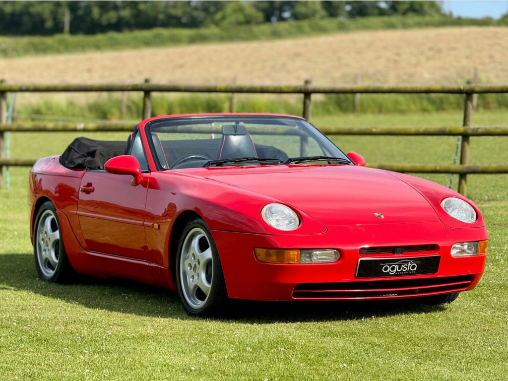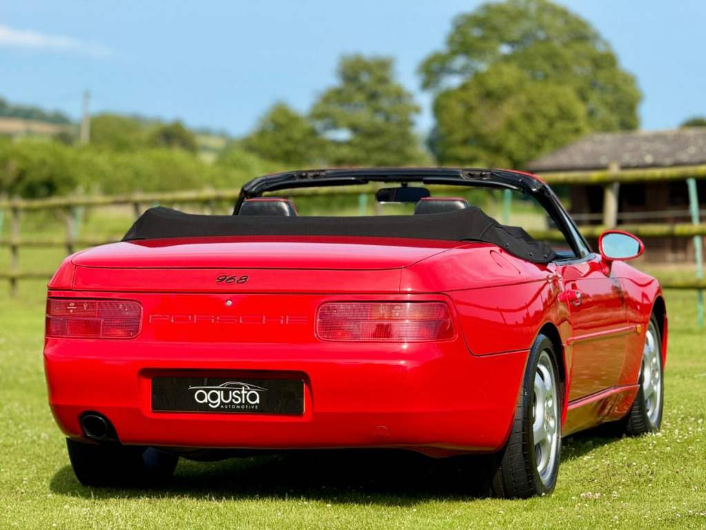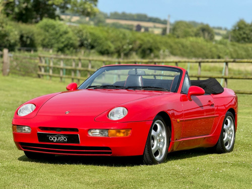 Here at Agusta we are delighted to have this rare and beautiful 1993 Porsche 968 3.0 Cabriolet 6 Speed Manual. , Finished in the the desirable Gaurds Red with red piped Black leather interior. Covering 106000 miles from new with a fabulous service history record including the important Clutch & Belts replacement in the last couple of thousand miles. , A now rare to find model that gives you exclusivity in the classic Porsche world with all the practicality you need with 4 seats, Electric pop, Part electric seats, Electric windows & mirrors, Alloy wheels, Wind deflector, Touneo cover, Porsche over carpets. , Launched in the model year 1992, the 968 was the beginning of the end of the development of four-cylin-der transaxle models at Porsche. For this successor to the 944 S2, most of the bodyshell parts were adopted from the predecessor. Yet, the front end of the 968 in particular was much more modern - and partly anticipated the front-end design of a later 911 model (the type 993). With the 968, a six-speed manual transmission and a Tiptronic transmission were available for the first time. Whats more, the VarioCam variable intake camshaft adjustment was used for the first time in this model. , , , , , , , , , , , ,