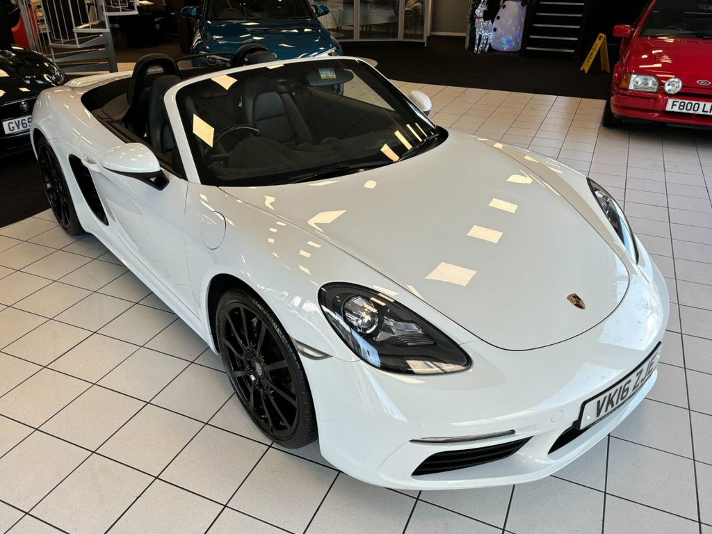 *AWAITING WHEEL REFURB* This Porsche 718 Boxster is an extremely desirable-looking example, and one that is bound to catch your eye. Reflecting that of a well-loved example, displayed in excellent condition throughout and further offers a superb drive. This 718 Boxster is an absolute credit to its two previous owners, who have taken great care of it, ensuring everything is in perfect working order, coming with a FULL Porsche and Porsche Specialist service history recorded across the following miles: (done as per multi-function display) 20,609 + 39,699 + 52,679 + 58,844 (drive belt replaced too) + 68,846, and has also just been through a service with us at its current mileage. Among its impressive service history, this 718 Boxster comes with an incredible spec, including over £7000 worth of factory-fitted extras. Features include: Sport Chrono Package with Dynamic Transmission Mounts, Partial Leather with Leather Interior - Black, Leather Interior Package - with Leather Interior, Seat Heating, GT Sports Steering Wheel, 20in Alloy Wheels - Carrera Classic, Navigation Module for Porsche Communication Management - PCM, Air Conditioning with Integrated Active Carbon Filter, Electric Parking Brake, Porsche Vehicle Tracking System Plus, Sound Package Plus and more. It comes complete with two keys, an 82-point health check, a 6-month warranty (extendable up to 3 years) and HPI clear certificate. As these are used cars, please ensure that a vehicle has a specific feature that is Sport Chrono Package with Dynamic Transm, Partial Leather with Leather Interior - , Leather Interior Package - with Leather , Model Designation 718, Seat Heating, Porsche Crest on Head Restraints, GT Sports Steering Wheel, Park Assist - Rear, White, Navigation Module for Porsche Communicat, Digital Radio, 20in Alloy Wheels - Carrera Classic, 12-Volt Socket in Passenger Footwell, 18in Alloy Wheels - Boxster, Air Conditioning with Integrated Active , Alarm System, Anti-Theft Wheel Bolts, Ascending Centre Console with One Uncove, Automatic Deploying Rear Wing, Automatic Headlight Activation including, Bi-Xenon Main Headlights with Integrated, Clothes Hooks on Seat Backrests, Convertible Top Col