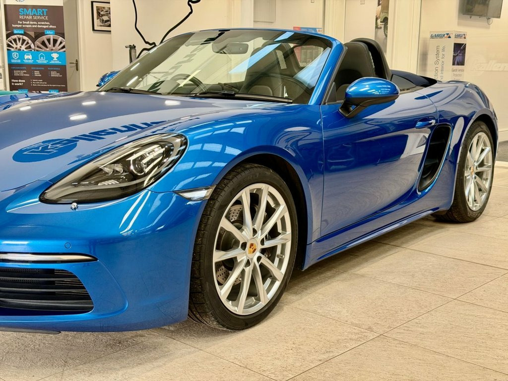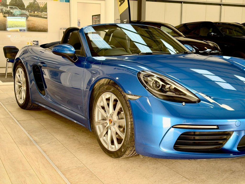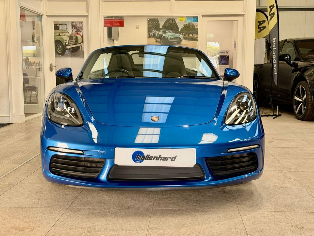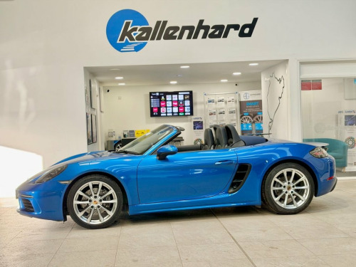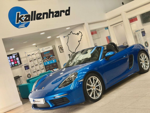 Introducing a stunning Sapphire Blue Porsche 718 Boxster 2.0T Convertible, presented in exceptional condition and supported by a complete Porsche service history. Its deep metallic finish highlights the car's sleek proportions, while the 19" Boxster S wheels add a distinctive, athletic stance. This beautifully specified example includes heated seats for comfort on cooler days, a wind deflector for relaxed open-top driving, front and rear park distance control for confident manoeuvring, and USB ports for seamless connectivity. Bi-Xenon lighting with dynamic cornering technology enhances visibility, and Sport Chrono Plus brings an added level of precision to every journey. Inside, 14-way adjustable seats offer superb support, and Porsche Active Suspension Management delivers an engaging balance of control and refinement. With 300 ps from the turbocharged 2.0-litre engine and the smooth PDK transmission, this 718 Boxster combines agility, luxury and unmistakable Porsche character in every mile. Service History 27/02/2025 @ 11597 miles Porsche Hull 12/01/2023 @ 10344 miles Porsche Hull 23/09/2020 @ 9120 miles Porsche Hull At Kallenhard Engineering we specialise in Performance, Prestige, and 4×4s. Because preparation is at the heart of everything we do, all our cars are prepared mechanically and cosmetically to the highest standards. Starting with an independent AA inspection, any work highlighted (including due services) will be completed before you pick up yo Bi-Xenon Headlights including Porsche Dy, Sapphire Blue, Park Assist - Front and Rear, PASM - Porsche Active Suspension Managem, Seat Heating, 19in Alloy Wheels - Boxster S, 12-Volt Socket in Passenger Footwell, 18in Alloy Wheels - Boxster, Adjustable Fan with Air Recirculation an, Air Conditioning with Integrated Active , Anti-Theft System including Radar Passen, Anti-Theft Wheel Bolts, Automatic Headlight Activation including, Automatically Extending Rear Wing, Bi-Xenon Headlights with Integrated LED , Brake Calipers - Black, Clothes Hooks on Seat Backrests, Connect Plus, Convertible Top Colour - Black, Digital Displays for Vehicle Speed - Cho, Digital Radio, Door Sill Guards - Model Desig