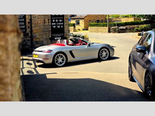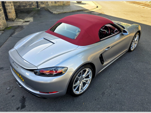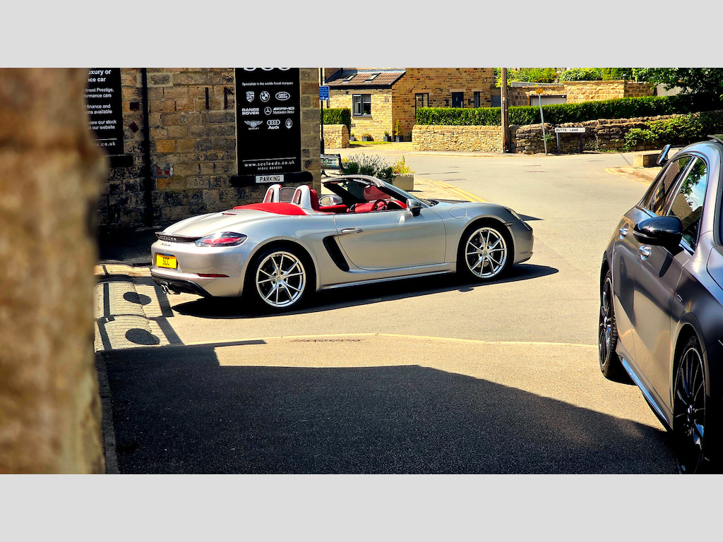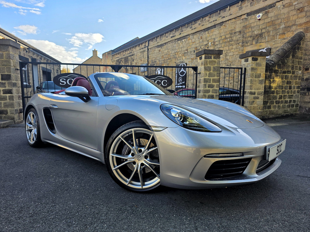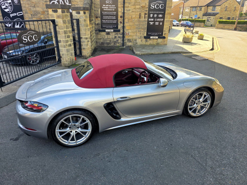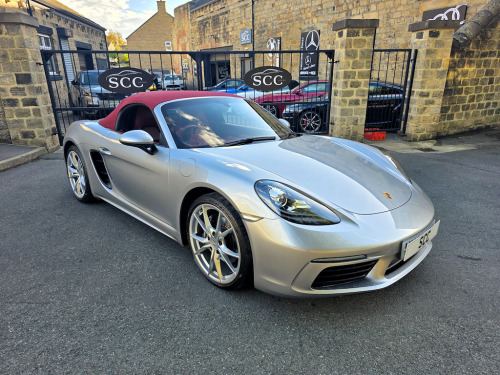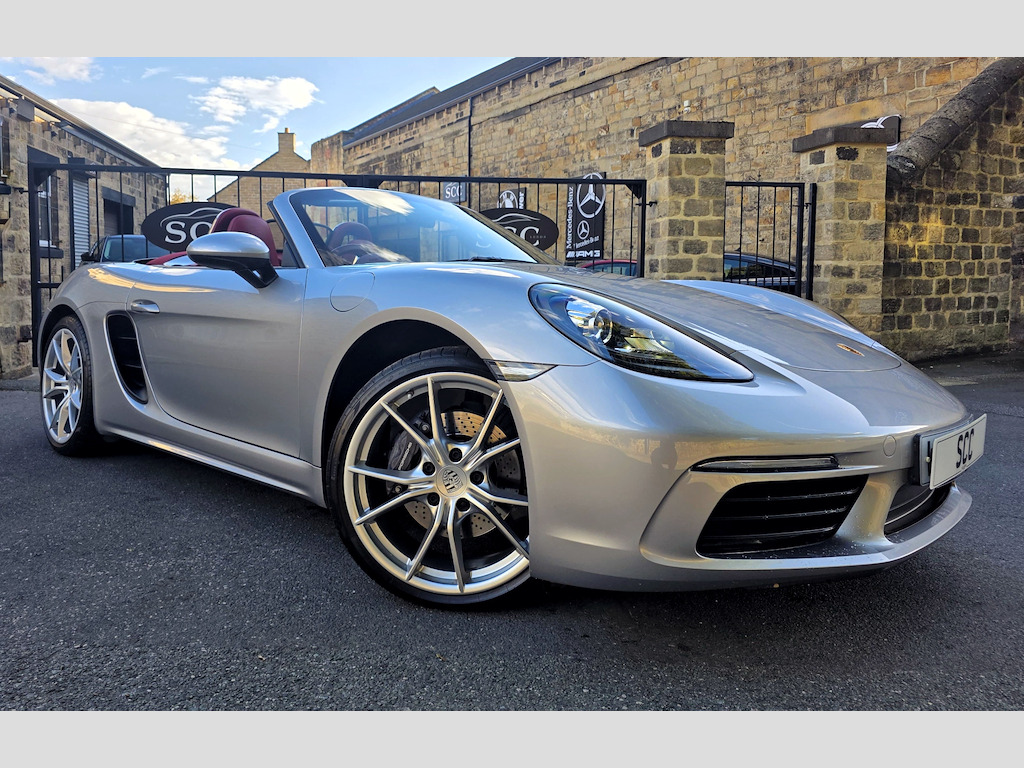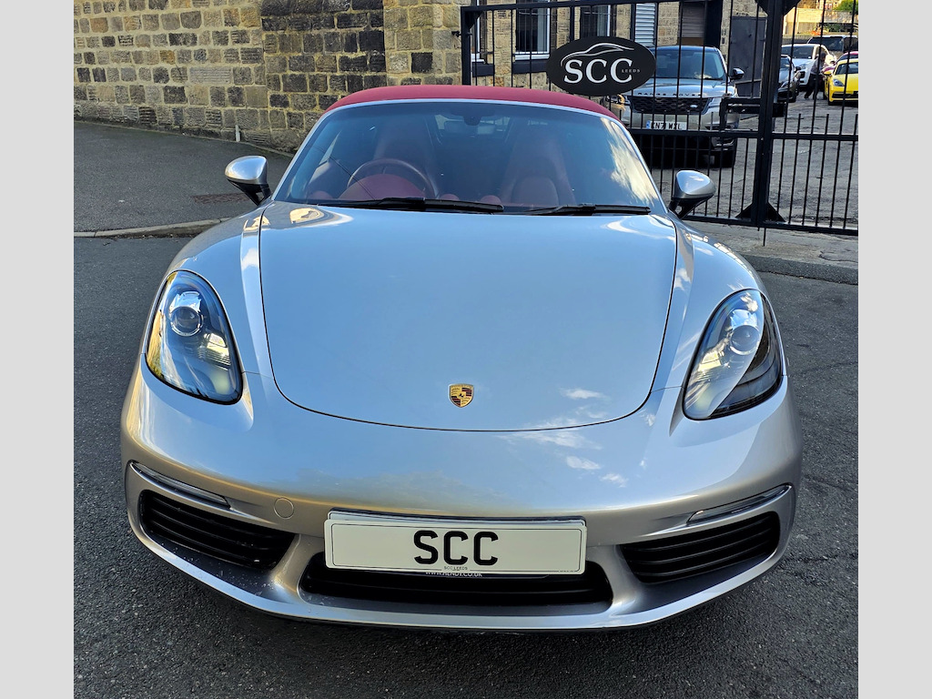 ****STUNNING 2 OWNER BESPOKE BOXSTER - OPTIONS FITTED:- GT SILVER METALLIC, 20 INCH CARRERA SPORT ALLOYS, PDK AUTO, SPORTS TAILPIPES, FULL BORDEAUX RED LEATHER INTERIOR, CRESTED HEAD RESTRAINTS, ROLL OVER HOOPS IN BODY COLOUR, SEAT HEATING, HEATED MULTIFUNCTIONAL STEERING WHEEL*** Introducing the stunning 2019 Porsche 718 Boxster, a remarkable blend of luxury and performance in a sleek silver convertible. With only 19,690 miles on the clock, this vehicle promises an exhilarating driving experience, powered by a 2.0L engine that delivers a thrilling 296 BHP. Step into a world of sophistication with the exquisite leather with leather interior in Bordeaux Red, providing both comfort and style for you and your passengers. The Porsche crest on head restraints adds a touch of elegance, ensuring that every detail is meticulously crafted for your enjoyment. Enhance your driving experience with the heated multifunction steering wheel, perfect for those cooler days, allowing you to maintain control and comfort seamlessly. The 20in Alloy Wheels - Carrera Sport not only elevate the aesthetic appeal of this car but also contribute to its dynamic performance, ensuring a smooth ride at all times. In addition, the sports tailpipes in black accentuate the sporty character of the 718 Boxster, making it as visually striking as it is enjoyable to drive. Located in Guiseley, West Yorkshire, SCC Leeds invites you to experience this exceptional vehicle for yourself. Don’t miss out on the opportunity to own this luxurious sports car. Call us today at 01943884551 to arrange a test drive and discover the thrill of driving a Porsche! 12-Volt Sockets in Passenger Footwell and Centre Console Storage Compartment,ABS - Anti-lock Brake System,Adjustable Fan with Air Recirculation and Defroster Functions,Air Conditioning with Integrated Active Carbon Filter,Alarm System with Ultrasonic Interior Surveillance,Anti-Theft Wheel Bolts,Automatic Headlight Activation including Welcome Home Lighting,Automatically Extending Rear Spoiler,Bi-Xenon Headlights with Integrated LED Daytime Running Lights,Brake Calipers - Black,Clothes Hooks on Seat Backrests,Coasting Function,Connect Plus,Convertible Top Colour - Black,Digital Displays for Vehicle Speed - Chosen Gear - Odometer - Trip Odometer and Clock,Digital Radio,Door Sill Guards - Model Designation Logo,Electrically Adjustable Heated Exterior Mirrors on Door Waist Rails - Aspherical on Drivers Side,Electrically Controlled Parking Brake,Electromechanical Direct Steering with Variable Steering Ratio and Steering Pulse Generator,Elevated Centre Console with an Uncovered Storage Compartment and a Closed Storage Compartment,Engine Immobiliser with in-Key Transponder - Central Locking with Remote Control,Fixed Roll-Over Protection System,Floor Mats,Full Size Airbags for Driver and Front Passenger,Fully Automatic Fabric Hood,Green Tinted Heat-Insulating Glass,Heated Rear Screen,Hood Lining in Black Fabric,Instrument Cluster with Central Rev Counter and High Resolution 4.6inch Colour Display,Instrument Dials and Rev Counter in Black,Integrated 4G-LTE Compatible SIM,Intelligent Lightweight in Aluminium-Steel-Composite Construction,LED Reading Lights Orientation Ignition Lock - Additionally Luggage Compartment and Glove Compartment Lighting,LED Tail Lights with Integrated Four-Point Brake Lights and Reversing Lights,Lightweight Spring-Strut Axle Front and Rear,Luggage Compartments at Front and Rear,Net Wind Deflector,PCM - Porsche Communication Management - Include Navigation,PORSCHE Logo on Accent Strip and Model Designation on Rear Apron in Silver Colour - High Gloss,Porsche Side Impact Protection - POSIP,Porsche Stability Management - PSM with ABS with Advance Brake Functions,Power Windows with One-Touch Operation and Door Seal Protection Function,SPORT Button to Activate Dynamic Driving Setting for Engine and Transmission,Separate Auxiliary Lights in the Front End with LED Indicators and Position Lights,Smooth-Finish Leather on Steering Wheel Rim - Gear Lever and Door Handles,Sound Package Plus,Sports Seats with Electric Backrest Adjustment and Manual Fore-Aft and Height Adjustment,Sports Steering Wheel - Diameter 375mm with Manual Fore-Aft and Height Adjustment,Storage Compartment in Each Door,Twin-Tract Sports Exhaust System with Central Tailpipe in Stainless Steel,Two Individual Cup Holders - Integrated into Dashboard Trim Strip,Tyre Pressure Monitoring - TPM,Tyre Sealing Compound and Electric Air Compressor,Windscreen Washer System with Two Wiper Speeds and Washer Jets,Windscreen with Top-Tint,GT Silver,Convertible Top Colour - Red,Seat Heating,20in Alloy Wheels - Carrera Sport,Heated Multifunction Steering Wheel,Roll-Over Bars Painted in Exterior Colour,Sports Tailpipes - Black,Porsche Crest on Head Restraints,Leather with Leather Interior - Bordeaux Red