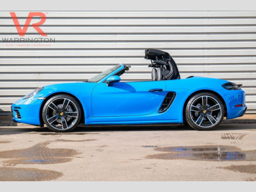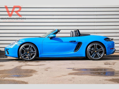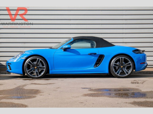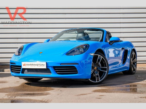 Here at VR EPS Warrington, we are pleased to offer this stunning VAT Qualifying 2022 - 72 plate - Porsche 718 Boxster 2.0T Convertible 2dr PETROL PDK finished in Shark Blue with Black Interior. This vehicle has manufacturers warranty until 26/10/2025 and has had a fully cleared Porsche health check on 09/09/2025. First registered in October 2022, this vehicle comes with... Bluetooth Phone and Media Connectivity | Navigation System | SD Card and SIM Compatibility | Front and Rear Parking Sensors | Heated Seats | BOSE Sound System with Sound Enhancement Options | Sport Mode | CD Player | Automatic Headlights | Electronic Foldable Mirrors | Automatic Stop/Start | Traction Control | Retractable Rear Spoiler | USB Compatibility | 20" Diamond Cut Alloys | Full-Colour Porsche Crest in Wheel Centres | Factory extras worth £12,340 20in Alloy Wheels - Carrera Sport £2,268 718 Logo Painted - High Gloss Black £105 Door Handles Painted in Black - High-Gloss £84 Electrically Folding Exterior Mirrors £210 Exterior Package Painted £918 Rear Side Air Intake Grilles Painted £329 Rear Wing Painted in Black - High-Gloss £245 Sports Tailpipes - Black £380 Wheels Painted in High Gloss Black £842 GT Sports Steering Wheel £194 Bi-Xenon Main Headlights including Porsche Dynamic Light System - PDLS £1,002 BOSE Surround Sound System £834 Leather with Leather Interior - Black £2,261 PASM - Porsche Active Suspens Leather with Leather Interior - Black, Bi-Xenon Main Headlights including Porsc, 20in Alloy Wheels - Carrera Sport, Exterior Package Painted, Door Handles Painted in Black - High-Glo, Wheels Painted in High Gloss Black, Sports Tailpipes - Black, Rear Side Air Intake Grilles Painted, GT Sports Steering Wheel, BOSE Surround Sound System, PASM - Porsche Active Suspension Managem, Leather - Black, Rear Wing Painted in Black - High-Gloss, Electrically Folding Exterior Mirrors, 718 Logo Painted - High Gloss Black, Shark Blue, 12-Volt Sockets in Passenger Footwell an, 18in Alloy Wheels - Boxster, 718 Logo on Gear lever, Adjustable Fan with Air Recirculation an, Air Conditioning with Integrated Acti