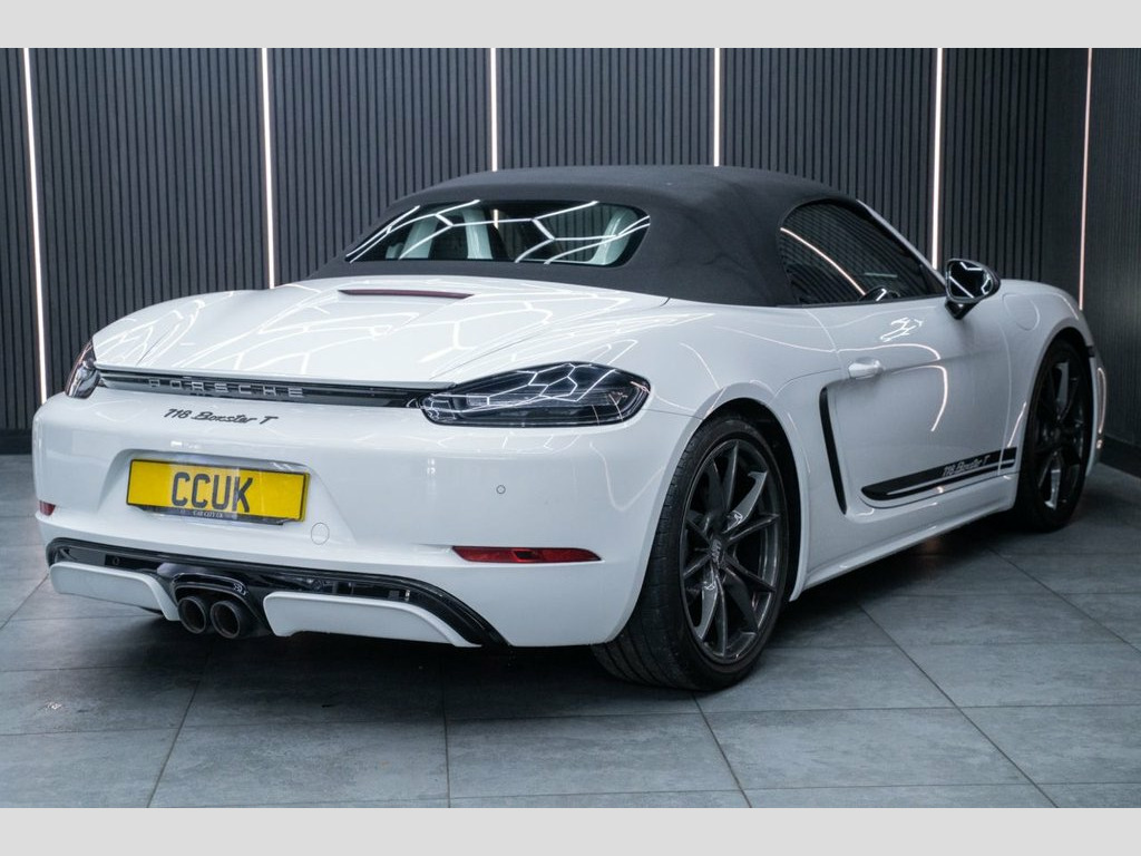 For Sale: Porsche 718 Boxster 2.0T Convertible (PY69CKX) £46,383 Just 15,312 miles 300 PS | Petrol | PDK Auto | Euro 6 (s/s) Desirable Specification Includes: # Satellite Navigation – Seamless guidance on every drive # Sports Exhaust System – Enhanced sound for a true Porsche experience # Sports Chrono Package – Precision performance at your fingertips # Adjustable Rear Spoiler – Style and aerodynamics combined # Heated Seats – Comfort even with the roof down # Front & Rear Park Assist – Easy manoeuvring and parking confidence The Porsche 718 Boxster is the perfect balance of performance, precision, and open-top driving pleasure. Powered by a 300 PS turbocharged engine paired with the PDK dual-clutch transmission, it delivers an exhilarating drive with lightning-fast gear changes and superb handling. This example stands out with the Sports Chrono Package, sports exhaust, and adjustable spoiler, making it an enthusiast's dream. With just 15,312 miles, it offers nearly-new quality and unmistakable Porsche character. 64 Litre Fuel Tank, Cruise Control, Seat Heating, Roll-Over Bars Painted in Exterior Colou, Tinted Taillights, Park Assist - Front and Rear, LED Headlights including Porsche Dynamic, Interior Package 718 T, SportDesign Package Painted in Black - H, 12-Volt Sockets in Passenger Footwell an, 20in Alloy Wheels - Carrera S, 718 Boxster T Stripes in Agate Grey, ABS - Anti-lock Brake System, Adjustable Fan with Air Recirculation an, Air Conditioning with Integrated Active , Alarm System with Ultrasonic Interior Su, Automatic Headlight Activation including, Automatically Extending Rear Spoiler, Bi-Xenon Headlights with Integrated LED , Brake Calipers - Black, Clothes Hooks on Seat Backrests, Coasti