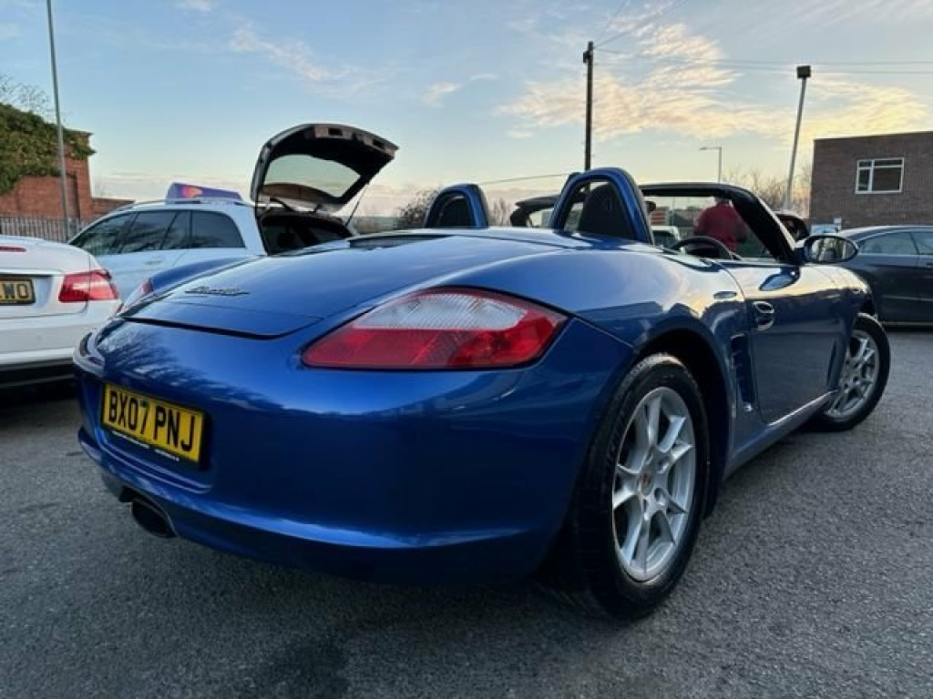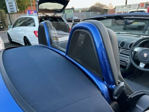 This has to be without question the best 2007 07-Reg Porsche Boxster 2.7 Manual on the market today!!!!presented in unmarked metallic Estoril blue with full black leather sports trim, it has covered 106,000 miles from new with the best service history you will find! it comes with a fantastic specification with extras including heated seats,factory painted centre tunnel and rear roll over bars to match body colour,full black leather trim, auto lights and wipers, Xenon headlamps,digital climate control,cd player, 18" carrera alloy wheels and fully colour coded exterior, go and look at the rest and then come and buy the best!! fully ULEZ Compliant! Brake pad wear sensors front and rear, Electric engine and trunk lid release, Multi function display, On board computer, Outside temperature gauge, Variable PAS, Alarm, Locking wheel bolts, Remote control central locking, Transponder engine immobiliser, Porsche stability management (PSM), 3 point automatic seatbelts, ABS+ABD, ASR, Black brake calipers, Driver and passenger airbags, Front seatbelt pretensioners + load limi, Head airbags, Motor Slip Regulation (MSR) - Engine Dra, Passenger airbag deactivate switch, Side (thorax) airbags, 2 speed front wipers + intermittent wipe, Aspherical driver's exterior mirror, Automatically extending rear spoiler, Body coloured bumpers, Body coloured door