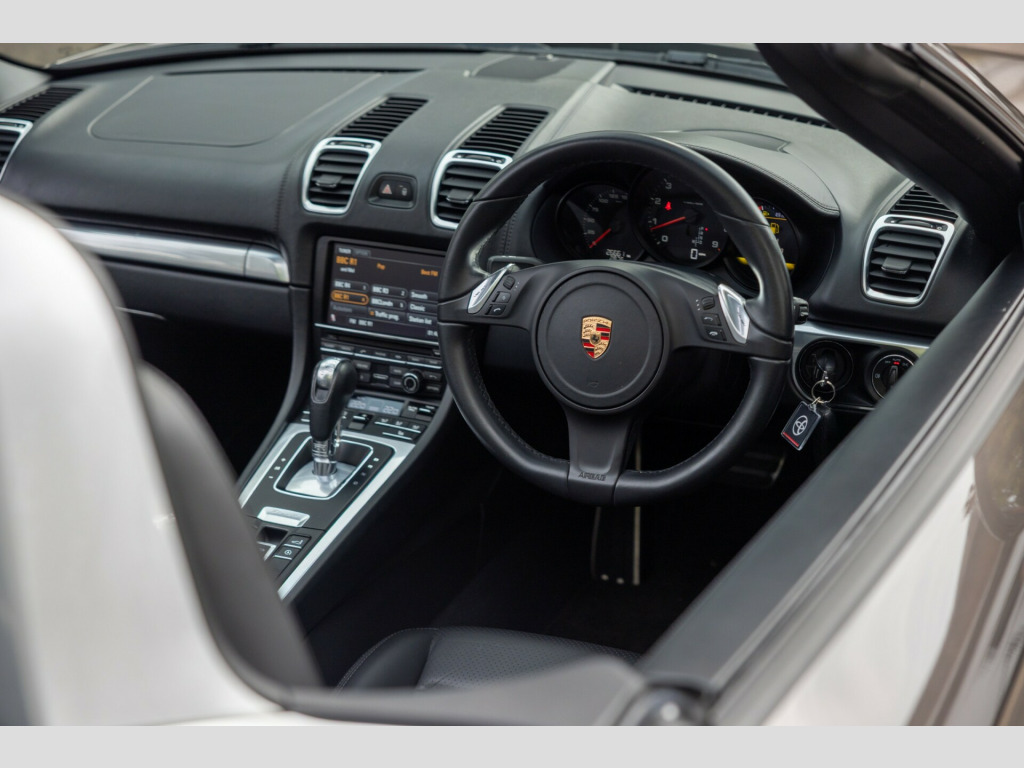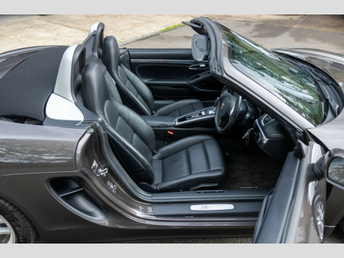 911BOX Porsche specialists are proud to offer this stunning Porsche Boxster 981 Finished in Anthracite brown with black roof and black full leather interior, Only 27,000 Miles from new with x2 former keepers. This great example boasts a huge Spec as follows, Sat Nav PCM, PDK, 19'' Boxster S wheels, PASM, Bose Sound System, Park assist front and rear, Bluetooth Phone prep, Dual Zone climate controls, Multi Function steering wheel, Aluminium roll over bar, Heated front seats Wind deflector and Top tint windscreen. Just undergone a full service by ourselves and comes with a x6 month warranty. in alloy wheels - boxster, auto-deployed rear spoiler, brake calipers with black anodised finish, convertible top colour - black, door mirrors - electrically adjustable and heated, electric windows - lifts with one touch operation, fully electrically operated hood, green tinted heat-insulating glass, tyre sealing compound and electric air compressor, windscreen washer system with two wiper speeds and heated washer jets, windscreen with grey top-tint, 7in colour display, cdr audio system, universal audio interface - aux, abd - automatic brake differential, abs - anti-lock brake system, asr - anti slip regulation, airbag - driver, airbag - head, airbag - passenger, airbag - thorax in seat side bolsters, brake pad wear monitoring on each brake caliper, central locking with remote control, electric parking brake, enhanced porsche stability management - psm, hill-start assist, porsche side impact protection - posip, automatic air conditioning, cupholders, electric luggage compartment locking front and rear, extended head restraints integrated into the front seats, floor mats, footwell illumination, glove compartment - lockable, orientation lighting and reading light in cabin, seats - sports, sports steering wheel with manual fore-aft and height adjustment, steering wheel - rim - gear lever and door handles covered in leather in interior colour, daytime running lights - led, driving light assistant including automatic coming home lights, tailights - led, gear indicator in rev counter, on-board computer, power assisted steering with variable steering ratio, sport button on the centre console