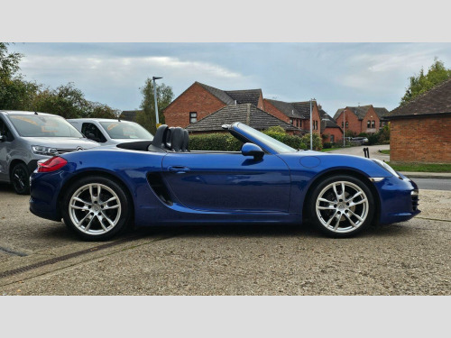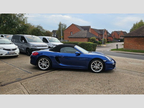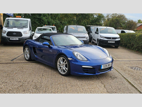 View by appointment, this lovely eye catching Boxster 2.7 981 isnt stored on our site. Just the 2 private owners from new with a full stamped service history, predominantly Porsche Main Agent and then Independent Specialist. Low mileage and £ 6000 worth of factory options including Porsche PDK Transmission with auto Start / Stop, 19 inch Boxster S Wheels, Park Assist - Front and Rear, Sport Design Steering Wheel, Heated Front Seats, Electrically Folding Exterior Mirrors, Wind Deflector, Top Tint Windscreen. S25BOX registration can be purchased by negotiation. Spare Key, HPi clear, Part Exchange considered. You can buy your next Car or Van from us with confidence by reading our numerous independently verified Judgeservice customer reviews on our website. We dont charge any admin fees on our screen prices. We can offer you finance options ( subject to status ) and the age / mileage profile of the vehicle. As an RAC Approved Dealer our vehicles are fully prepared to a high standard for you and come with the RAC Buysure peace of mind package: An RAC 82 point Approved Vehicle Check, a 6 month RAC Warranty ( which you can extend ), at least 6 months MOT, Hpi check including an HPi clear Certificate, 12 months RAC Roadside Assistance ( can be upgraded to Home Start, Breakdown and Recovery ) In addition they are Fully Valeted, New Mats are fitted and even some Fuel ! Cam Belts can be changed in accordance with the manufacturers age and mileage guide ( if applicable for an additional cost) We are conveniently located in the pretty Hertfordshire Village of Shillington, less than 10 minutes from Junction 10 of the A1 ( M) - Baldock Services or 10 minutes from Junction 10 of the M1 - Luton Airport. Test Drives ( please bring your driving licence), Part Exchange considered. Family owned business with over 35 years experience of sourcing and supplying pre loved Cars and Vans in Hertfordshire, Bedfordshire and the surrounding areas. Please give us a call to make an appointment to view this Car as it isnt kept on our site. £ 27490 and part exchange considered