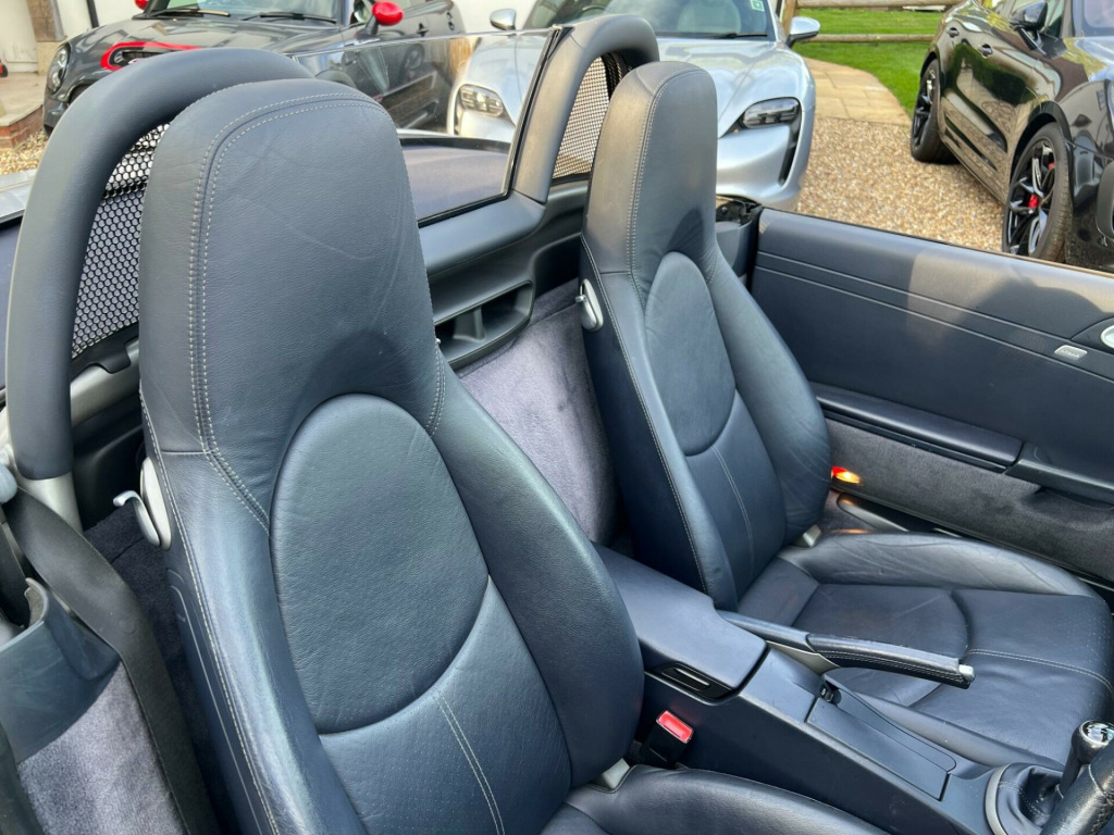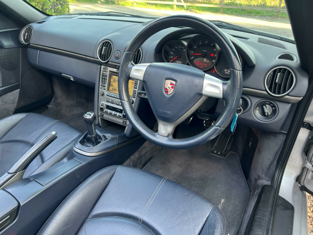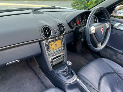 A Lovely Very Low Mileage Example Previously Sold By Ourselves With Only Three Owners From New And A Full Service History To Include A New Clutch & Flywheel Just Fitted. Particular Features Include Satellite Navigation/PCM, 18''Boxster S Alloy Wheels, Bose Sound System, Climate Control etc.... Adjustable Steering Column/Wheel, Air Bag Driver, Air Bag Passenger, Air Bag Side, Air-Conditioning, Alarm, Anti-Lock Brakes, Central Door Locking, Cup Holder, Electric Windows (Front), Head Restraints, Immobiliser, Mirrors External, Power-Assisted Steering, Seat Height Adjustment, Spare Wheel, Tinted Glass (All Round), Upholstery Cloth, Upholstery Velour/Leather, POWER HOOD, Porsche Communication Management (PCM), SATELLITE NAVIGATION, Telephone Module for PCM, Automatic Climate Control, Alloy Wheels - 18in Boxster S Design, 6 CD Autochanger, Bose Sound System, On Board Computer, Three Spoke Sports Steering Wheel in Leather, Porsche Stability Management, Stainless Steel Door Entry Guards, Rollover Protection, Front Fog Lamps, Clear Indicator Lenses, Front Centre Armrest, Wind Deflector. Full service history