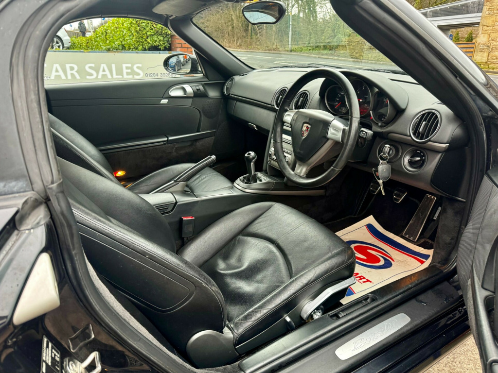 PORSCHE BOXSTER - 2.7 MANUAL - HEATED SEATS - 19'' ALLOYS - BLACK2008 (58) 2.7 Petrol 5-Speed Manual Convertible Black Great Service HistoryA superb Porsche Boxster finished in Black, offering classic mid-engine balance, sharp handling and proper open-top driving enjoyment. This is the one for someone who wants a true driver's car with timeless looks, a fantastic spec list and that unmistakable Porsche feel every time you turn the key.With desirable factory options including 19'' Carrera Classic wheels, heated seats, climate control and ParkAssist, it's a great all-round roadster that can be enjoyed daily or kept as a weekend toy.Key Features:- 2.7L Petrol Flat-Six Engine- 5-Speed Manual Gearbox- Convertible Roof- Metallic Black Paintwork- 19-inch Carrera Classic Alloy Wheels- Sound Package Plus- ParkAssist- Climate Control- Heated Front Seats- Wind Deflector with Storage Box- Electric Windows & Mirrors- Multi-Function Display- Porsche Driving Experience - Mid-Engine BalanceDriving & Ownership:- Full Service History - MOT Valid Until 01/2026- £430 Annual Road Tax- Engaging manual gearbox- Strong, smooth flat-six power delivery- Excellent handling and feedback- Iconic Porsche roadster stylingPeace of Mind Included:- Fully Serviced & Ready To Go- Multi-Point Inspection Completed- RAC Warranty Available- 12 Months RAC Breakdown Assistance- Part-Exchange Welcome- Finance Options Available- Nationwide Delivery AvailableCall Now to Arrange a Viewing or Test DriveV5 Present - HPI Clear - Drives Exceptionally WellCondition commensurate with age and mileage - a very smart Boxster with great specification and real driver appeal.www.regalcar.co.uk justable steering column/wheel, air-conditioning, cup holder, electric windows (front), seat height adjustment, tinted glass (all round), upholstery cloth, upholstery velour/leather, air bag driver, air bag passenger, air bag side, alarm, anti-lock brakes, central door locking, head restraints, immobiliser, power-assisted steering, mirrors external, spare wheel